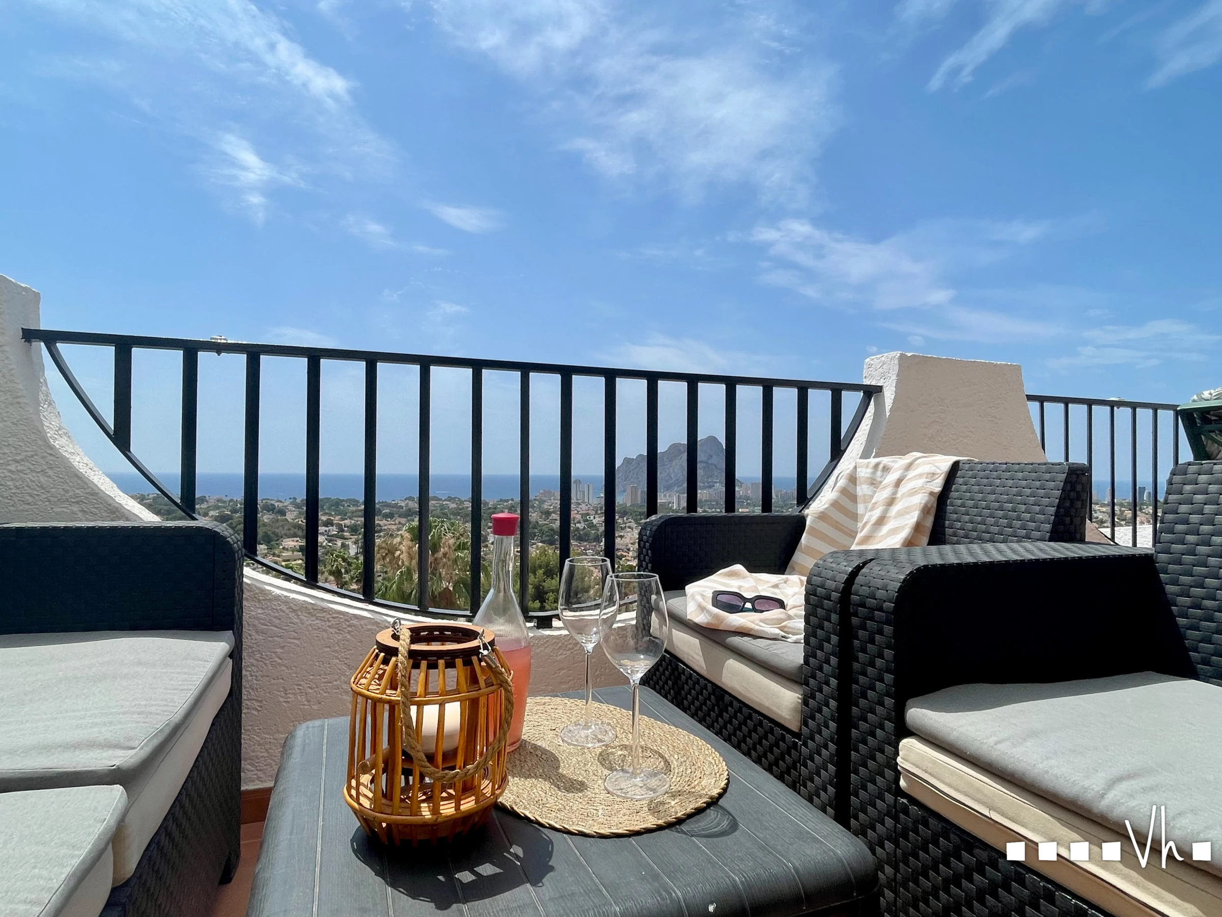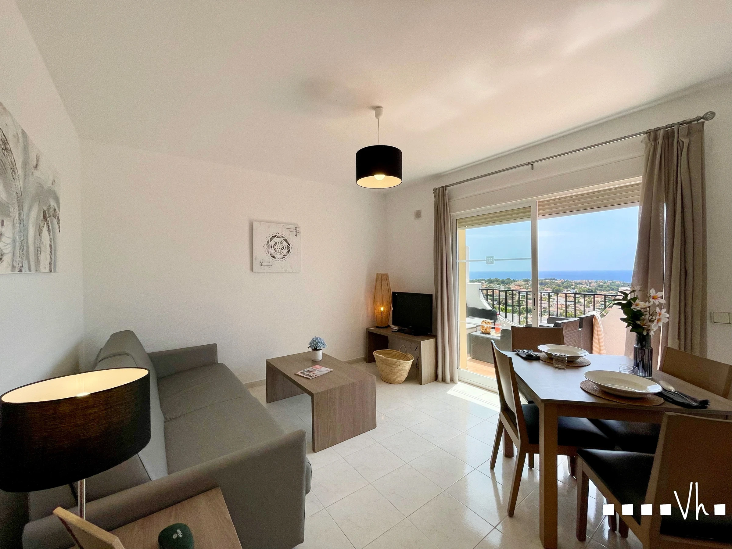 Abantos, perfekt für zwei Personen mit der Option, zwei weitere Personen auf dem Schlafsofa im Wohnzimmer zu beherbergen. Es wurde mit viel Geschmack und Liebe zum Detail eingerichtet und befindet sich auf dem Hügel des Imperial Park, einer exklusiven Wohnanlage in Calpe mit atemberaubenden Blicken auf das Meer und den Peñón de Ifach.