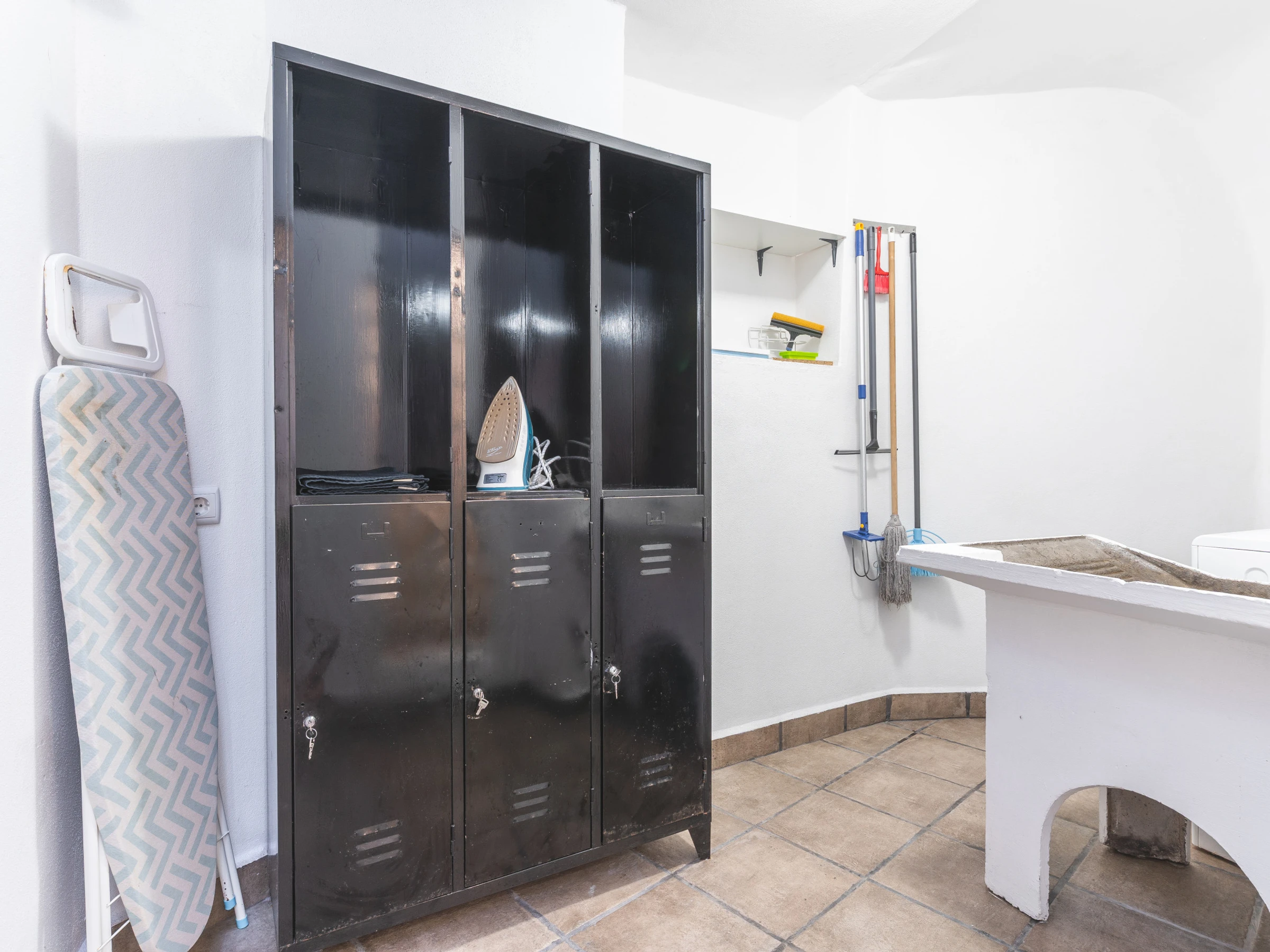 Gäste haben Zugang zu einer privaten überdachten Garage mit einem Parkplatz. Eine Waschmaschine und ein Trockner stehen zur Verfügung, sowie ein Föhn für zusätzlichen Komfort. Der Wohnbereich umfasst einen Smart-TV mit Box und Klimaanlage, was eine angenehme Umgebung zum Entspannen nach einem Tag der Erkundung der Insel schafft. Ein Babybett und ein Hochstuhl sind auf Anfrage verfügbar, wodurch das Haus für Familien mit kleinen Kindern geeignet ist.