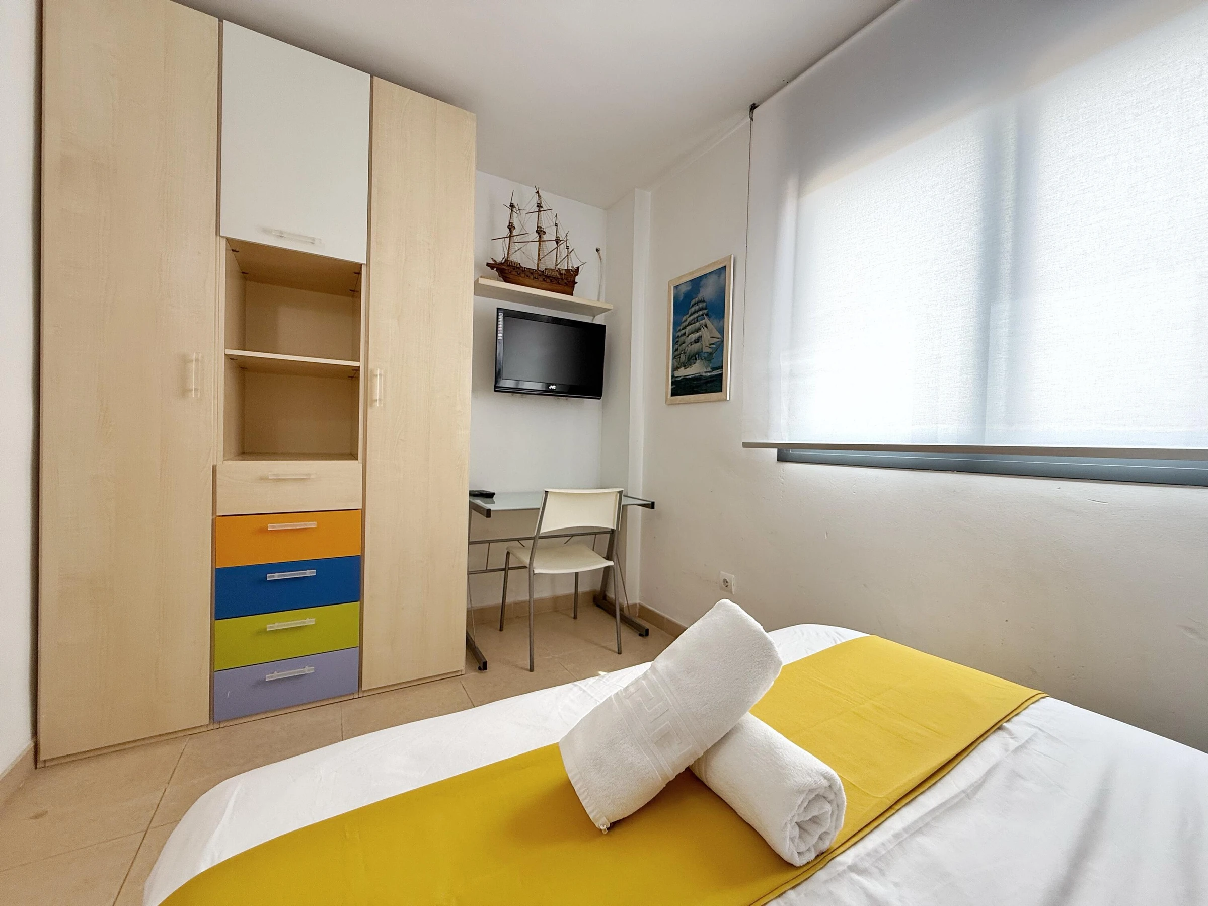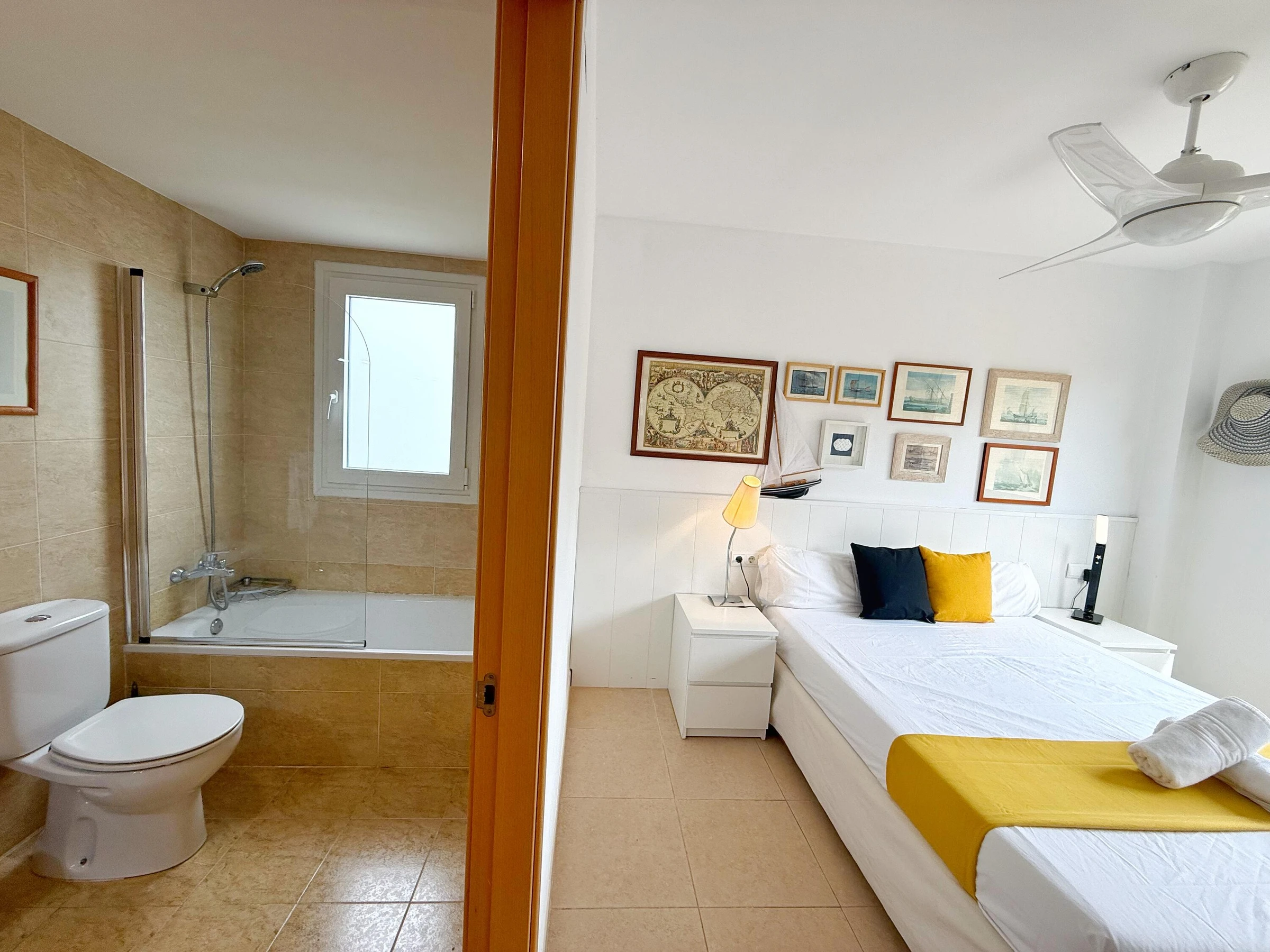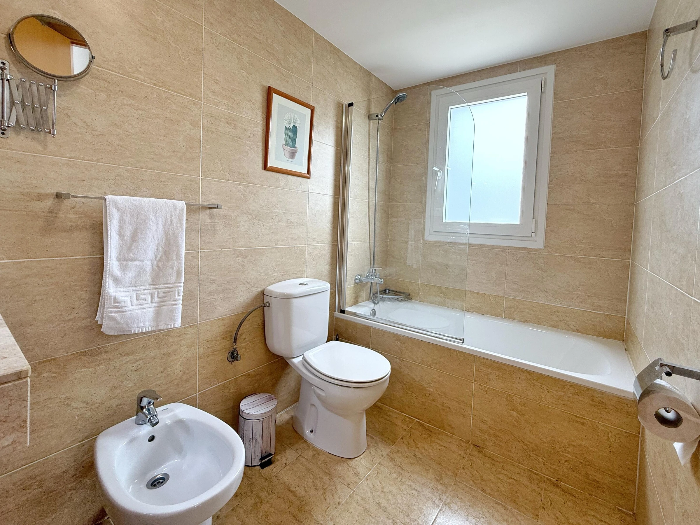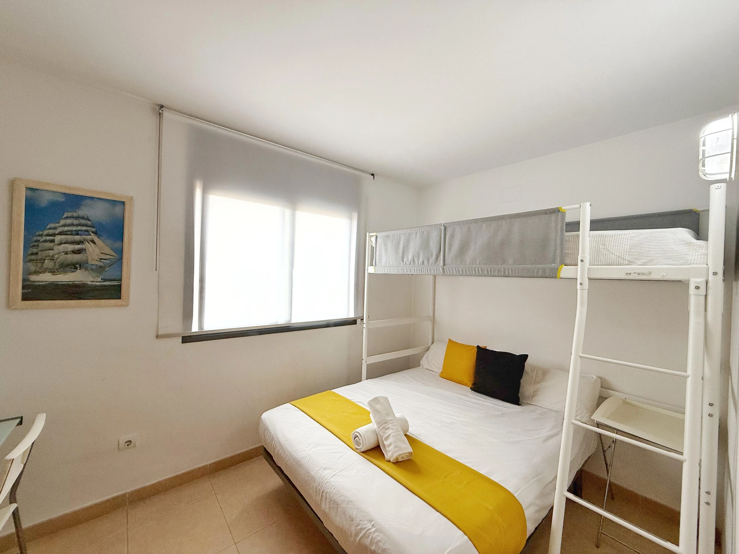 Ideal für einen Urlaub an der Costa Dorada, in außergewöhnlicher Lage, nur 100 Meter vom Strand entfernt, wo Sie alle Dienstleistungen und Einrichtungen dieses Strandes mit Wasseraktivitäten, einem Sportbereich und einem Spielplatz für die Kleinen nutzen können. Das Apartment Mar Cambrils bietet Platz für 5 Personen und verfügt über ein Badezimmer mit Dusche und ein weiteres mit Badewanne, 1 Schlafzimmer mit Doppelbett und ein Schlafzimmer mit Doppel- und Einzelbett. Sie finden Bettwäsche, Handtücher, einen Flachbildfernseher, eine voll ausgestattete Küche mit Waschmaschine und eine private Terrasse von mehr als 30 Metern! Das Apartment verfügt über kostenloses WLAN und 1 Parkplatz. Die Wohnanlage hat einen schönen Gemeinschaftsbereich mit Swimmingpool. Sie wohnen in der Nähe der beliebtesten Sehenswürdigkeiten der Costa Daurada, im Herzen des touristischen Freizeitgebiets. Port Aventura ist nur 10 Autominuten entfernt! WICHTIGE INFORMATIONEN! - Check-in und Schlüsselübergabe finden von 16:00 bis 20:00 Uhr in der Agentur in der VIA AURELIA 2 IN SALOU statt. - Kaution von 300 € per Kreditkarte (nicht inbegriffen) - Kurtaxe von 1,10 € pro Person und Nacht (nicht inbegriffen) - Abfahrtszeit: 10 Uhr