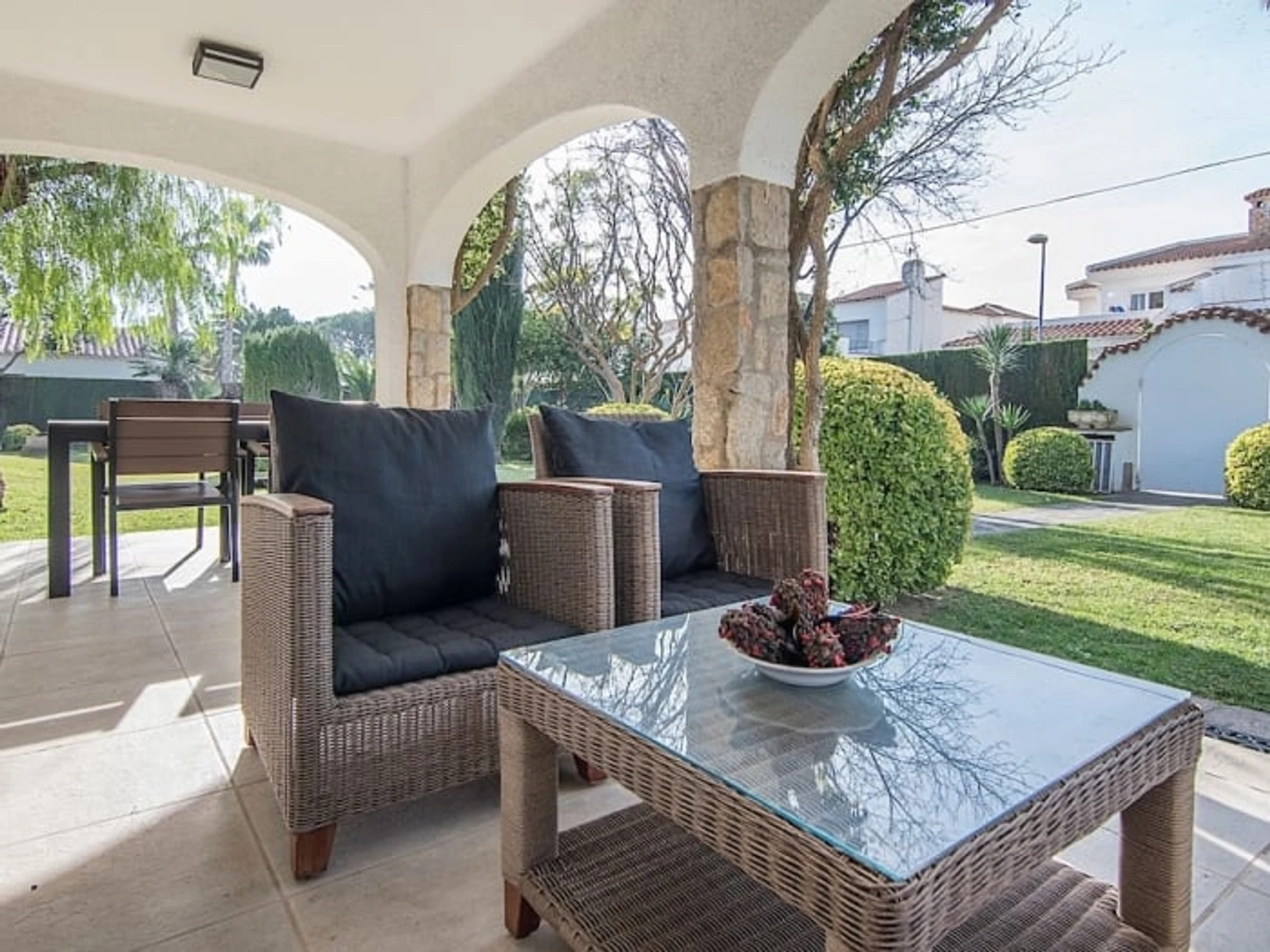 Der Garten, eine Oase üppigen mediterranen Grüns mit Naturrasen, rundet dieses idyllische Küstenambiente perfekt ab. Der Strand ist nur eine Gehminute entfernt. Ein Radweg verläuft direkt am Strand entlang und lädt dazu ein, die Umgebung zu erkunden. Nutzen Sie diese einmalige Gelegenheit und verbringen Sie Ihren Aufenthalt in diesem idyllischen Anwesen! Wichtig: Gruppen von jungen Erwachsenen unter 27 Jahren werden nicht akzeptiert. Bitte senden Sie keine Anfrage, wenn Sie diese Voraussetzung nicht erfüllen. Der Eigentümer behält sich das Recht vor, die Buchung für Gäste, die dieser Bedingung nicht nachkommen, zu stornieren.