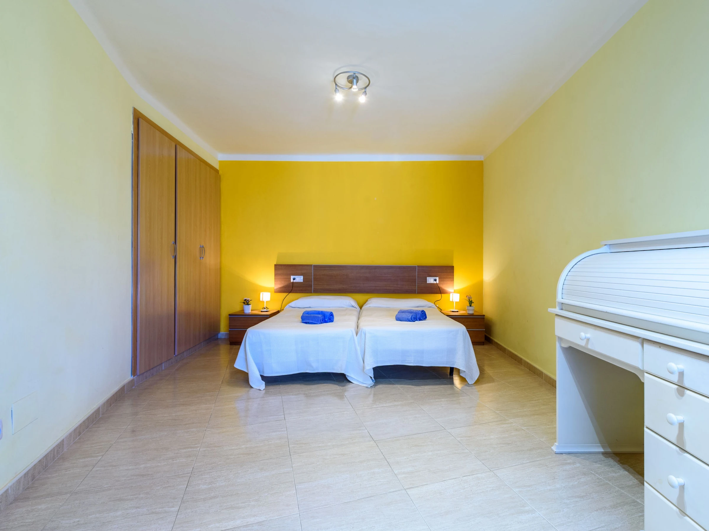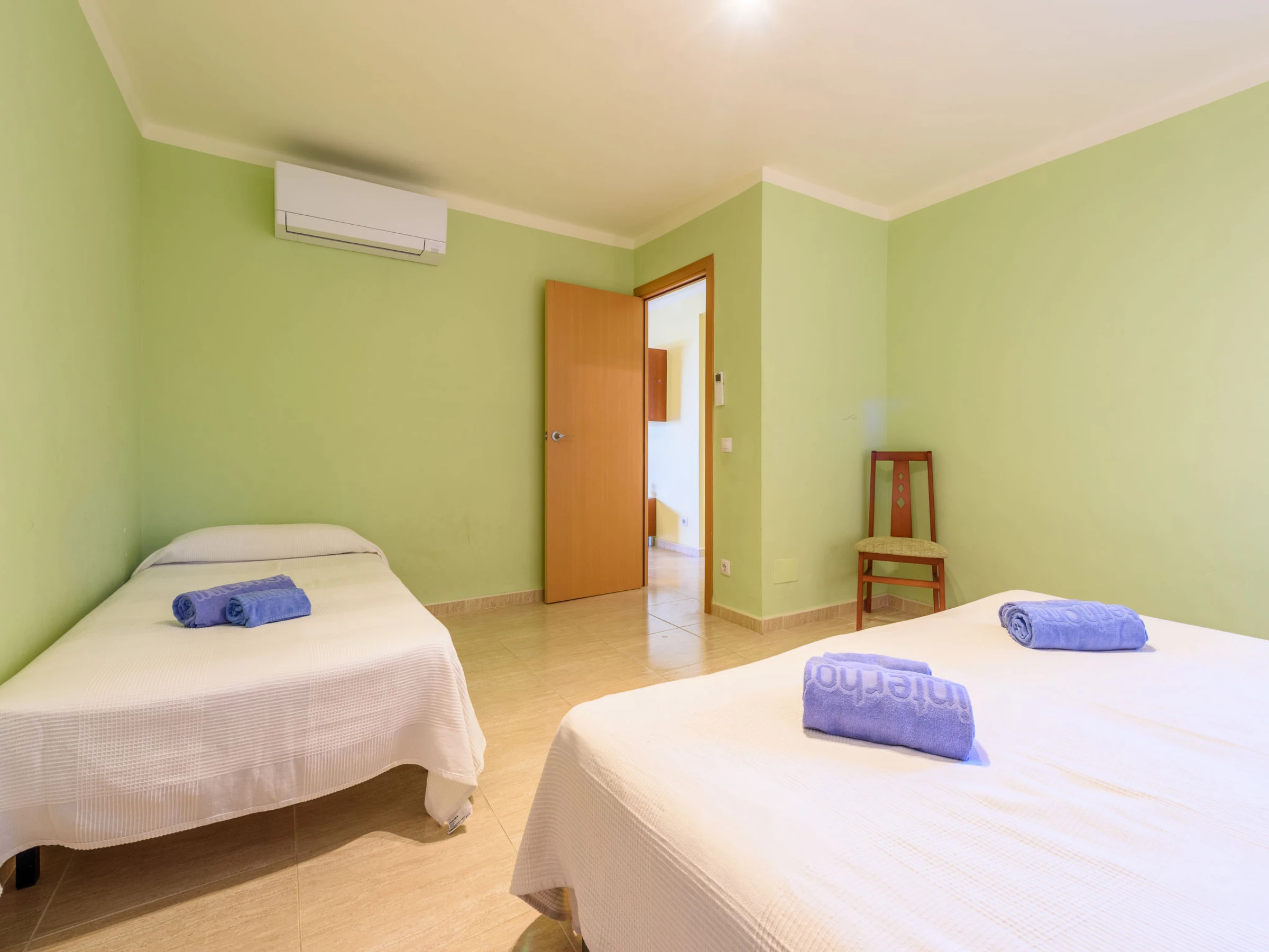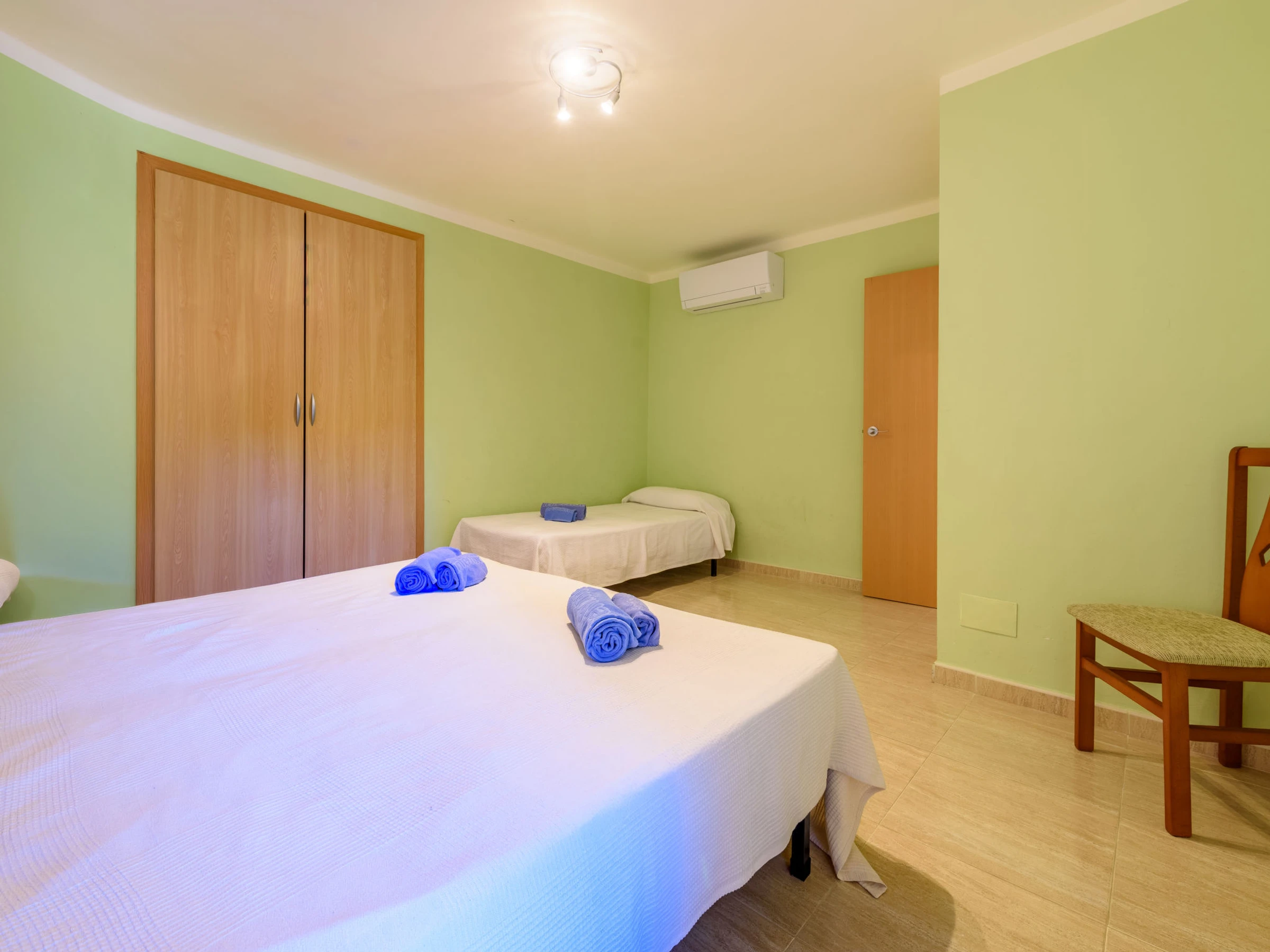 "Manacor A", 4-Zimmer-Wohnung 72 m2. Komfortabel eingerichtet: Wohn-/Esszimmer mit Digital-TV, Klimaanlage und Warmluftheizung. Ausgang zur Terrasse. 1 Zimmer mit 1 Bett (90 cm, Länge 190 cm), 1 franz. Bett (150 cm, Länge 190 cm), Klimaanlage und Warmluftheizung. 1 Zimmer mit 2 Betten (90 cm, Länge 190 cm), Klimaanlage und Warmluftheizung. 1 Zimmer mit 1 x 2 Etagenbetten (90 cm, Länge 190 cm), Klimaanlage und Warmluftheizung. Küche (Backofen, Geschirrspüler, 3 Glaskeramikplatten, Toaster, Wasserkocher, Mikrowelle, elektrische Kaffeemaschine). 2 Duschen/WC, sep. WC. Terrasse. Terrassenmöbel. Fernsicht auf das Meer und den Garten. Zur Verfügung: Waschmaschine, Bügeleisen, Haartrockner. Bitte beachten: Nichtraucher-Unterkunft. [hidden] // Reg. Nr.: ESFCTU00004303100049419800000000000000[hidden]-943