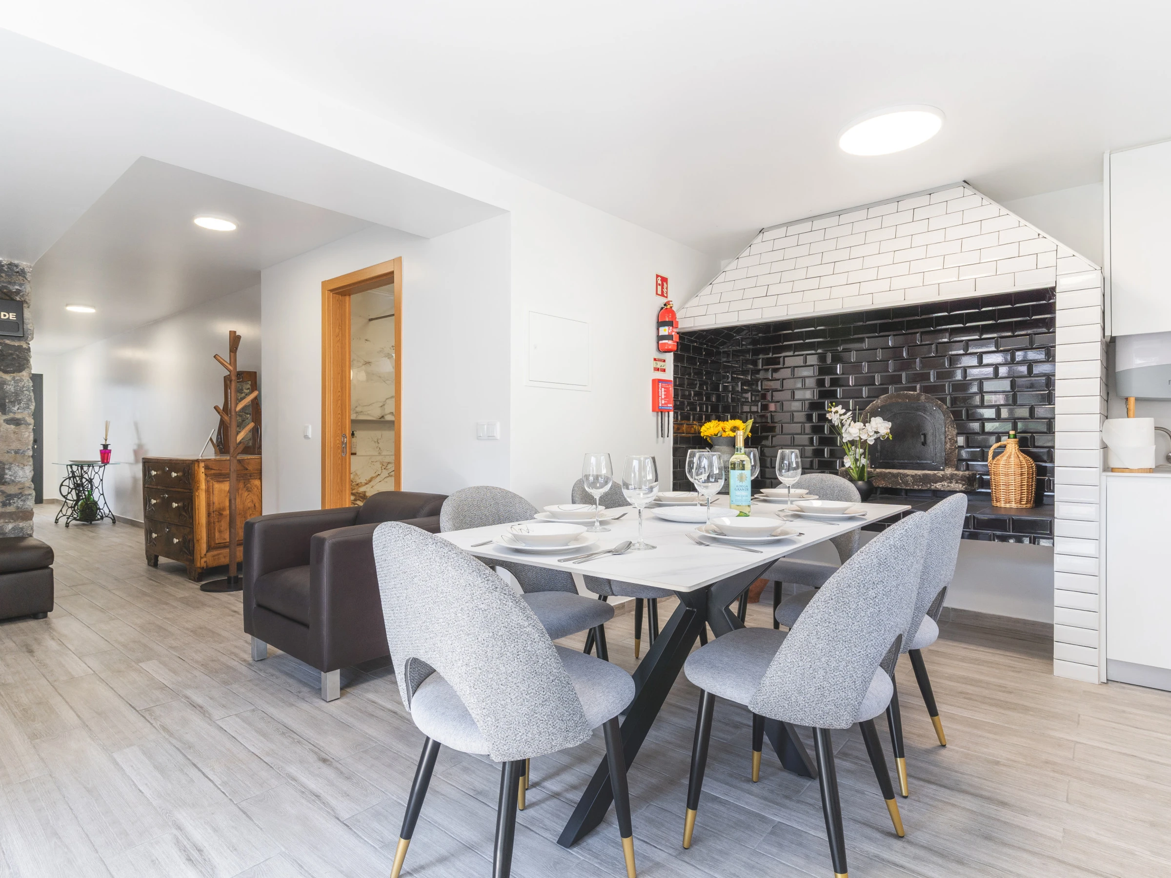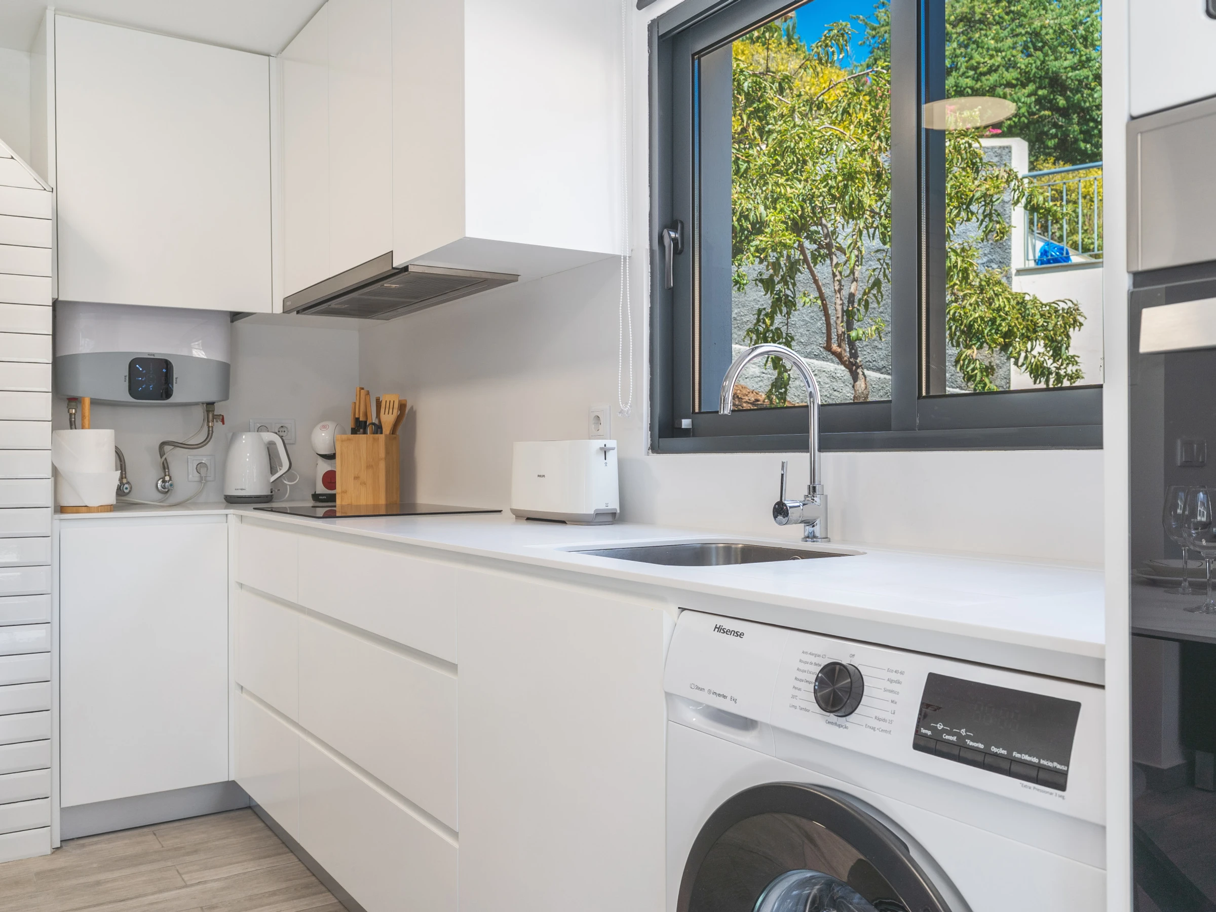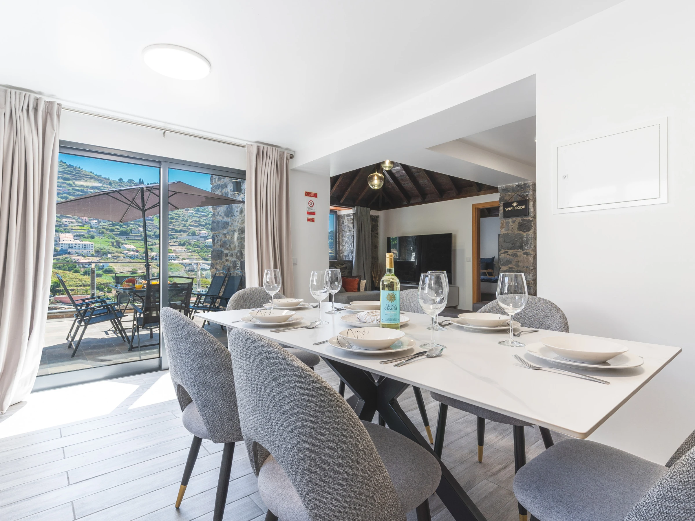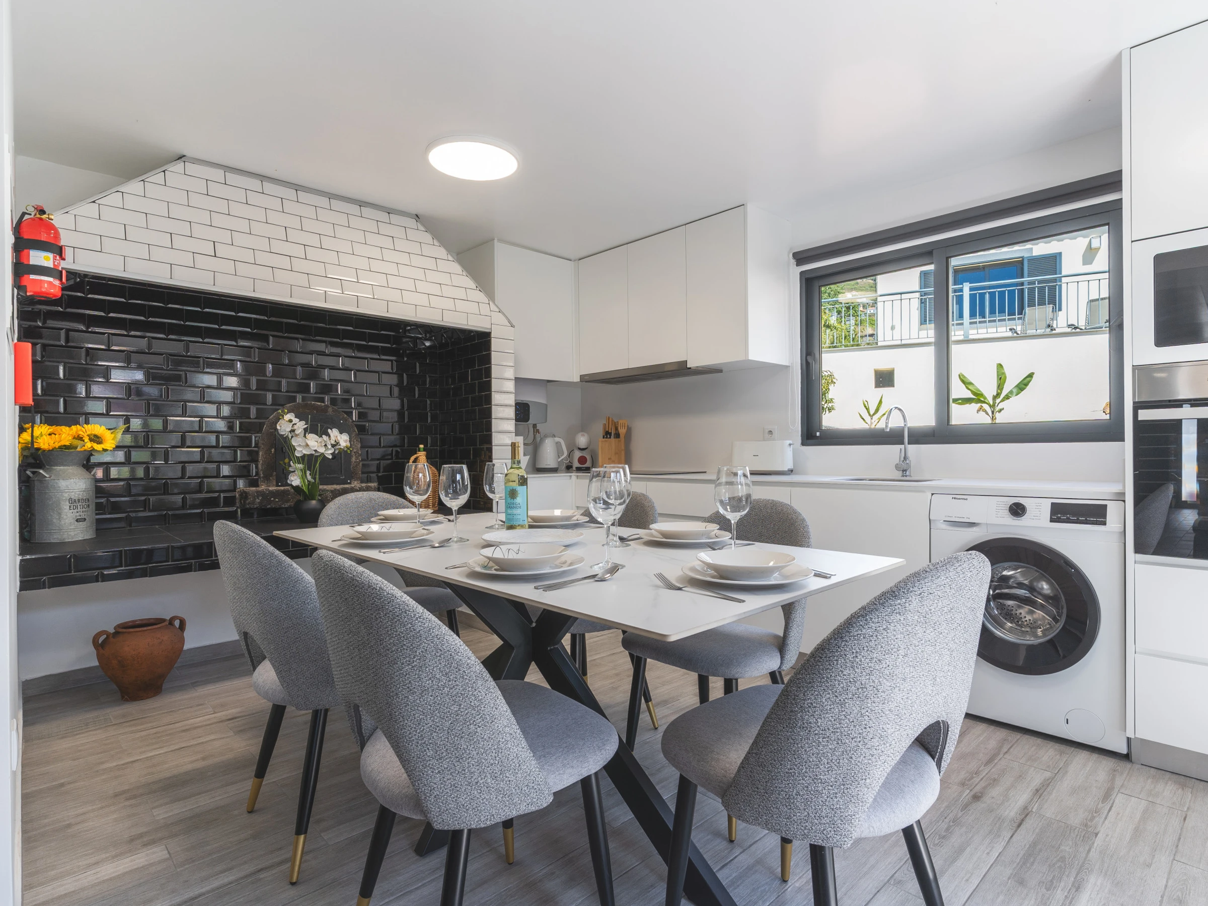 Die Küche ist vollständig mit den wichtigsten Geräten ausgestattet, darunter Kühlschrank, Gefrierschrank, Ofen, Mikrowelle, Herd, Besteck und Geschirr, sodass Gäste problemlos Mahlzeiten zubereiten könnenEine Waschmaschine und ein Haartrockner stehen ebenfalls zur Verfügung, ebenso wie ein Smart-TV mit Box für Unterhaltung. Familien mit Kindern werden das bereitgestellte Babybett und den Hochstuhl zu schätzen wissen. Die Gäste können sich im Whirlpool entspannen und den atemberaubenden Blick auf die umliegende Landschaft genießen.