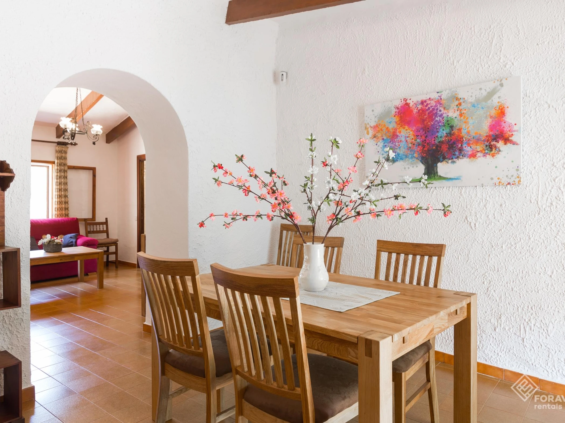 Die Finca liegt in einer sehr ruhigen ländlichen Gegend am Ortsrand von Campanet. Die rustikale und sehr gepflegte Unterkunft ist geräumig und hell und bietet alles, was Sie für einen Traumurlaub benötigen. Was das Äußere betrifft, verfügt es über eine möblierte Terrasse und einen perfekten Pool, um das herrliche Klima der Insel zu genießen und die Serra de Tramuntana zu betrachten, die zum Weltkulturerbe gehört.
