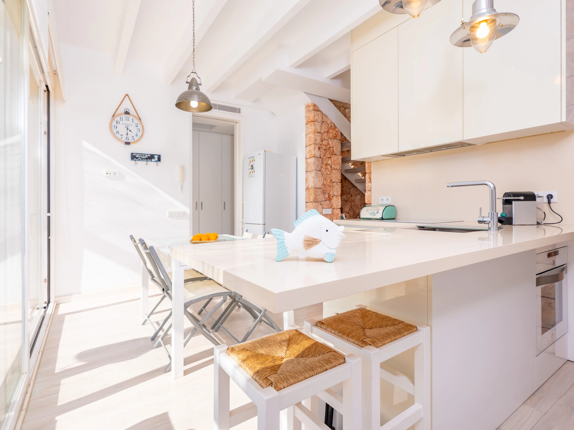 Dieses küche, ist ausgestattet in mikrowelle, gefrierschrank, spülmaschine, kaffeemaschine und toaster.