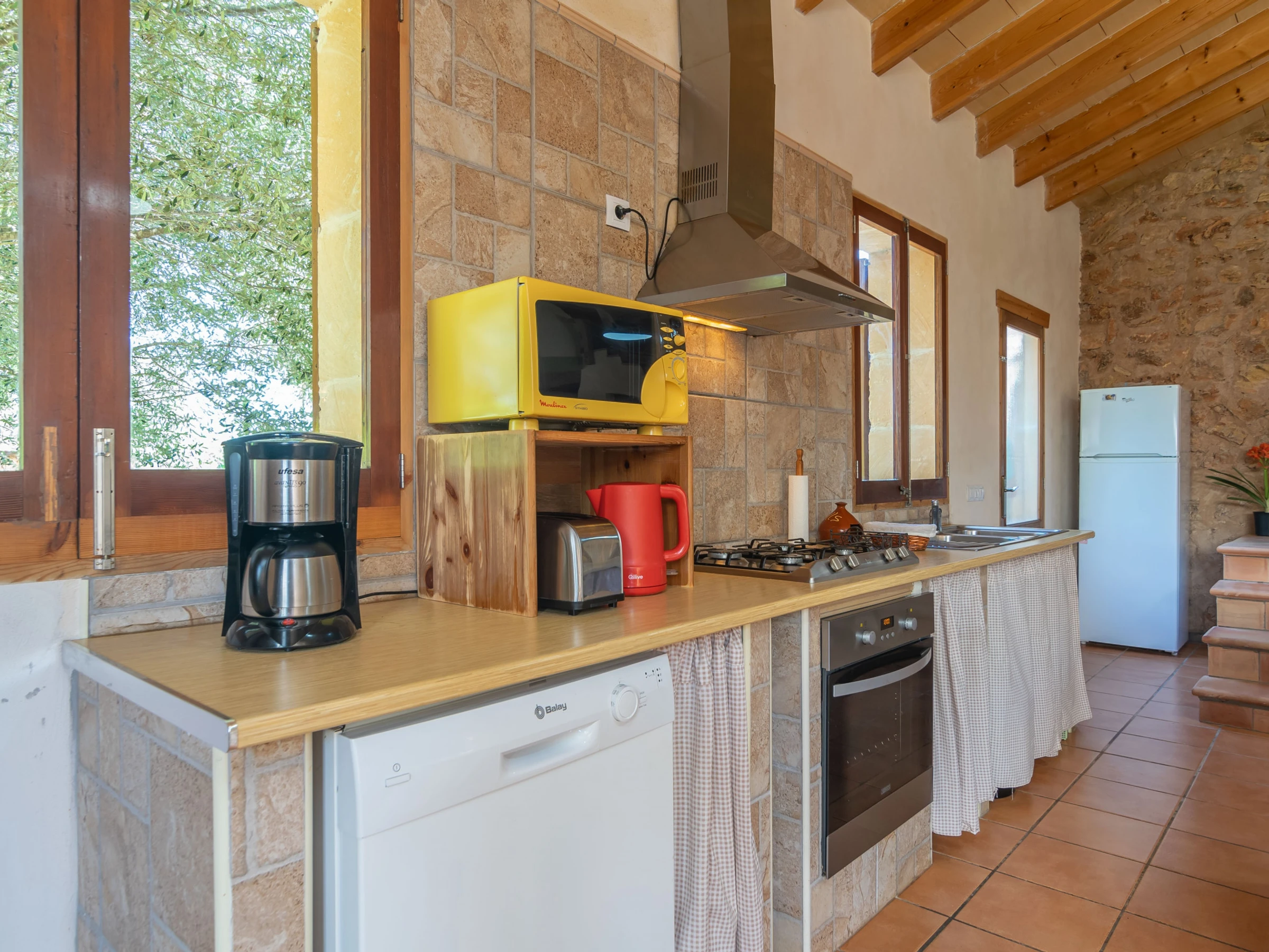 Dieses küche, ist ausgestattet in mikrowelle, backofen, gefrierschrank, spülmaschine, kaffeemaschine und toaster.