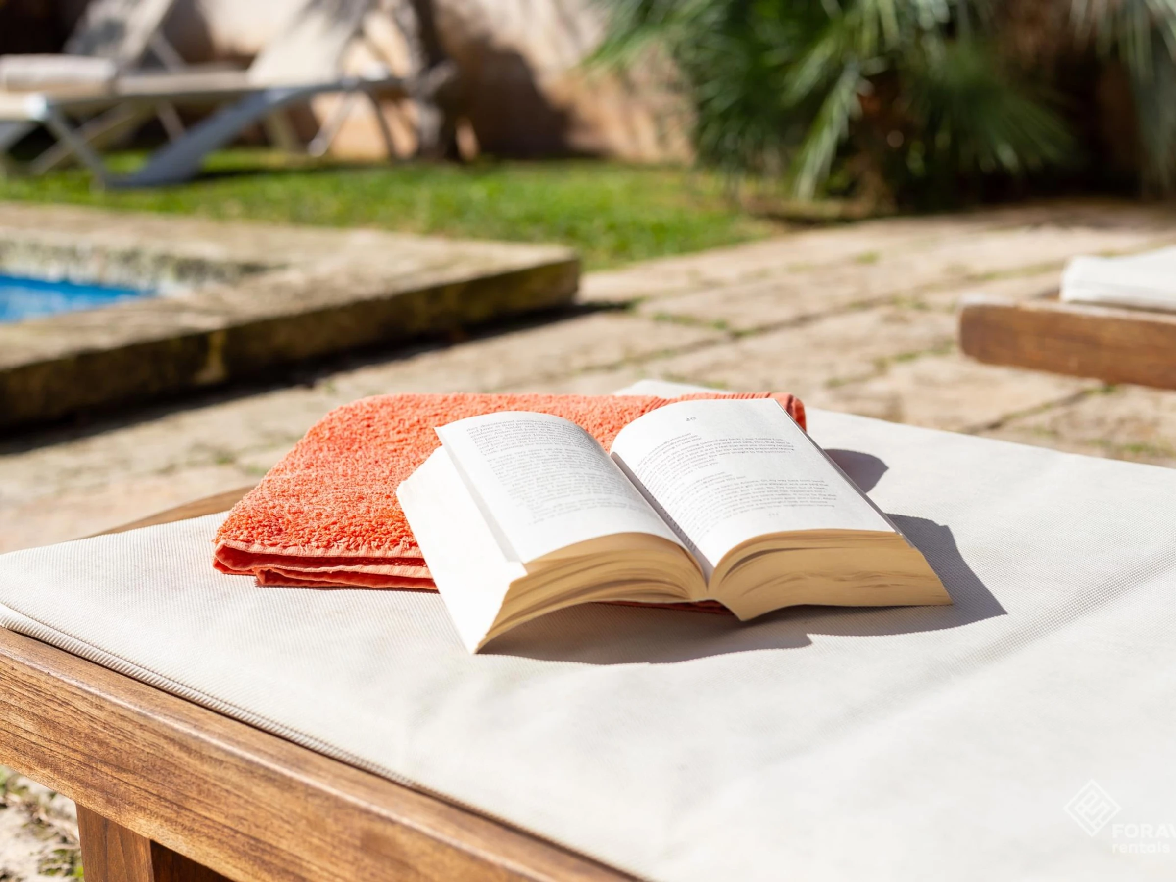 Der große Garten besteht aus zwei Bereichen. An der Vorderseite befindet sich eine natürliche Quelle mit Fischen und an der Rückseite gibt es das Schwimmbad und das Barbecue. Dieses wunderschöne Ferienhaus ist umweltfreundlich, weil es ein bioklimatisches Haus mit Solarheizung und Warmwasser auch aus Sonnenenergie ist.