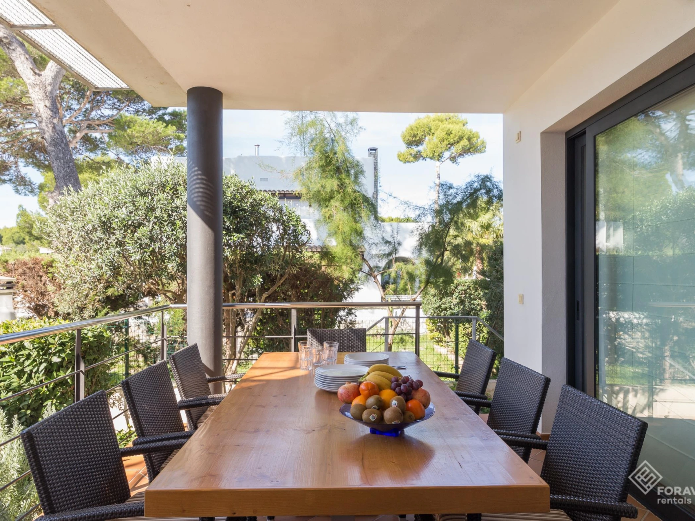 Dieses fantastische Ferienhaus für 8 Personen verfügt über einen Garten von 400 m² mit einheimischen Pflanzen des mediterranen Waldes, Salzwasser-Schwimmbad und Außendusche, Barbecue, WiFi, Satellitenfernsehen, Heizung und Klimaanlage.