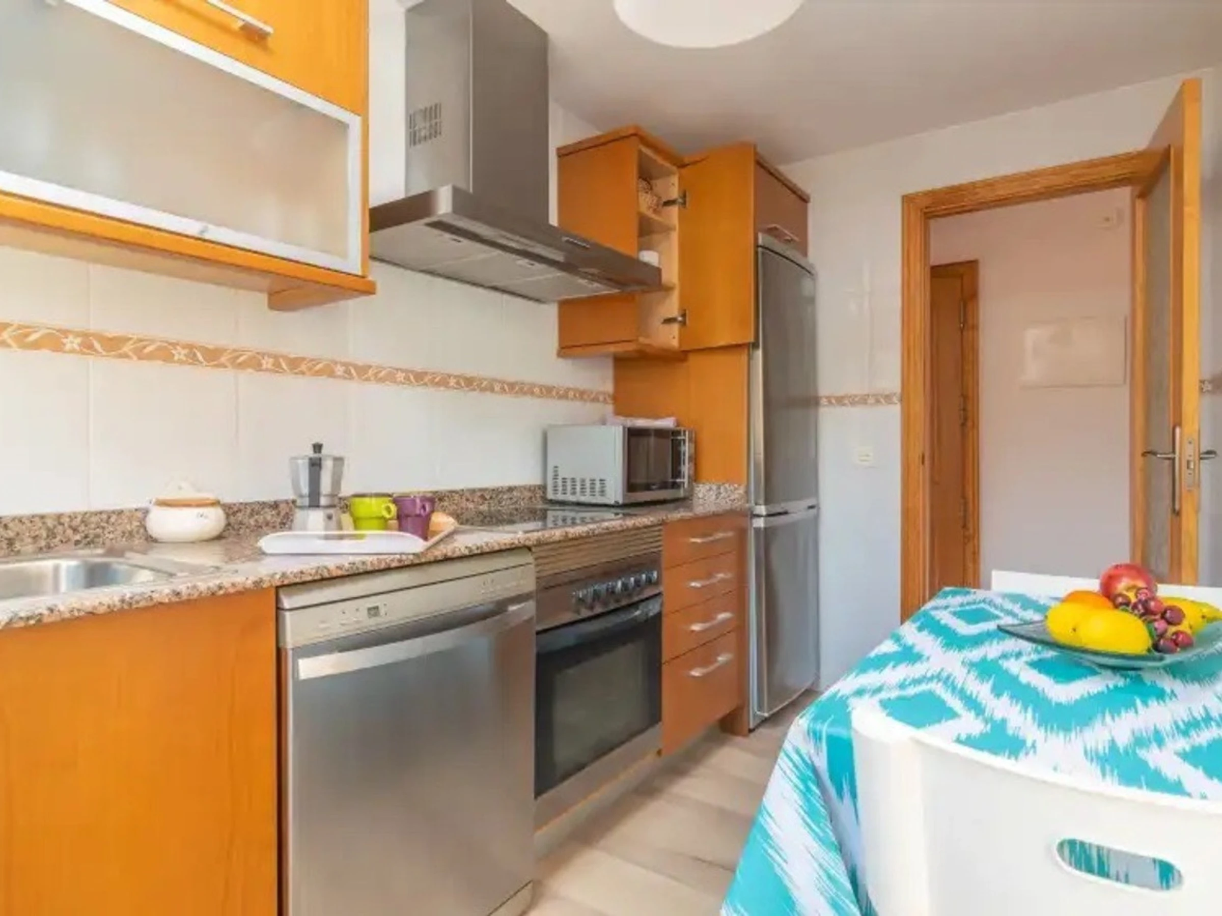 Die Wohnung verfügt über zwei Doppelschlafzimmer, ausgestattet mit Klimaanlage, um maximalen Komfort das ganze Jahr über zu gewährleisten. Sie befindet sich im ersten Stock (ohne Aufzug) und verfügt über einen angenehmen Balkon. Außerdem gibt es ein komplettes Badezimmer mit Badewanne und Dusche sowie ein gemütliches Wohnzimmer mit Fernseher, ideal zum Ausruhen nach einem Strandtag.