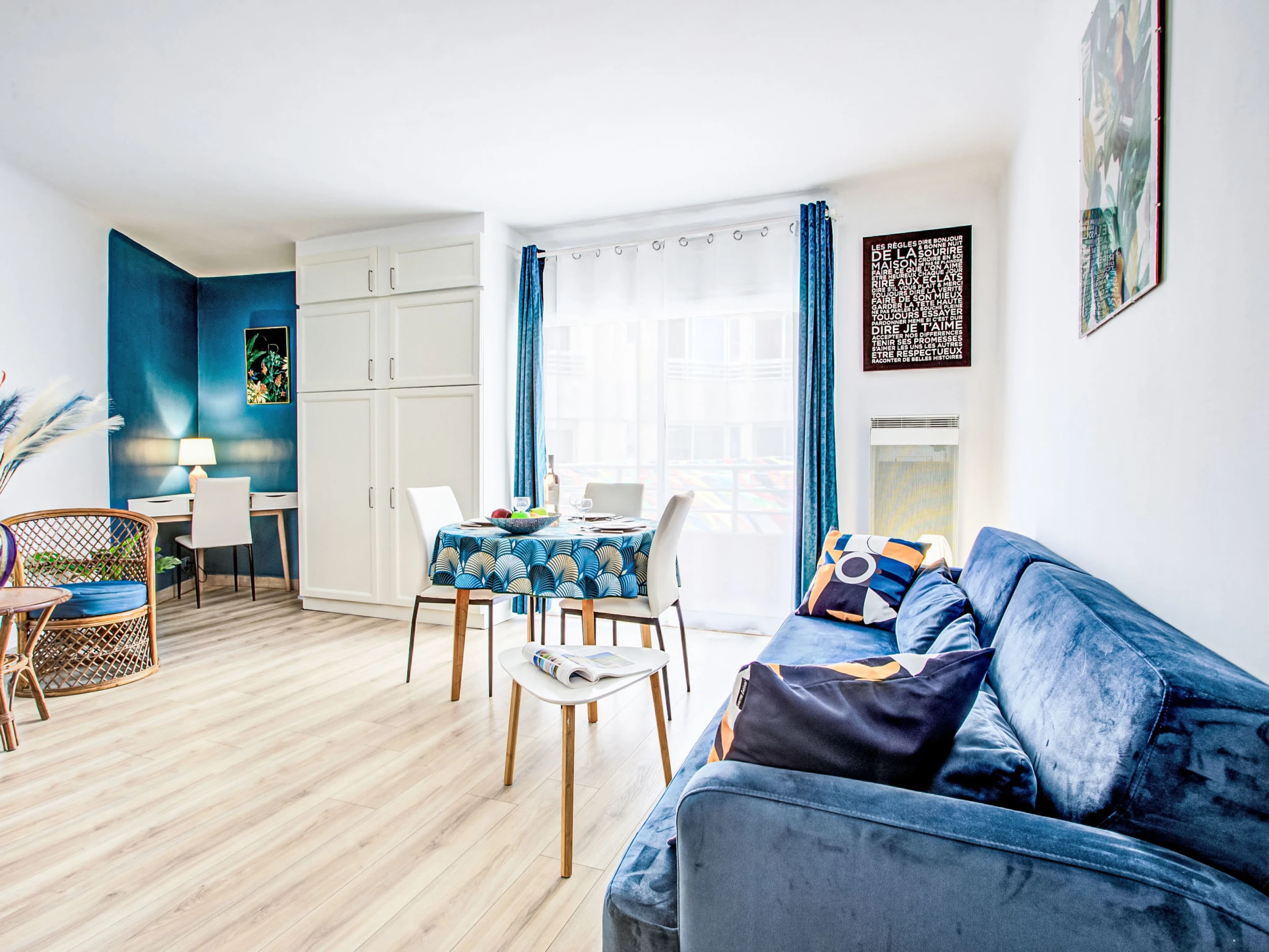 1-Zimmer-Wohnung 35 m2 im 1. Stock, Nordwestlage. Vollständig renoviert: Wohn-/Schlafzimmer mit 1 Wandschrankbett (140 cm, Länge 190 cm), Esstisch und TV (Flachbildschirm). Ausgang zum Balkon. Kochnische (Geschirrspüler, 4 Glaskeramikplatten, Toaster, Wasserkocher, Mikrowelle, Tiefkühler, elektrische Kaffeemaschine, Kapseln für die Kaffeemaschine (Krups) extra). Dusche, Bidet, sep. WC. E-Heizung. Kleiner Balkon 6 m2. Balkonmöbel. Zur Verfügung: Waschmaschine, Kinderhochstuhl, Babybett (extra). Internet (WLAN, extra). Parkplatz in 220 m. Bitte beachten: Nichtraucher-Unterkunft. Rauchmelder. Parkplatz nur 01.07 bis 31.08 (öffentlicher Parkplatz mit Abonnement). Inserat einer Privatperson nach Artikel 155, IV, CGI.