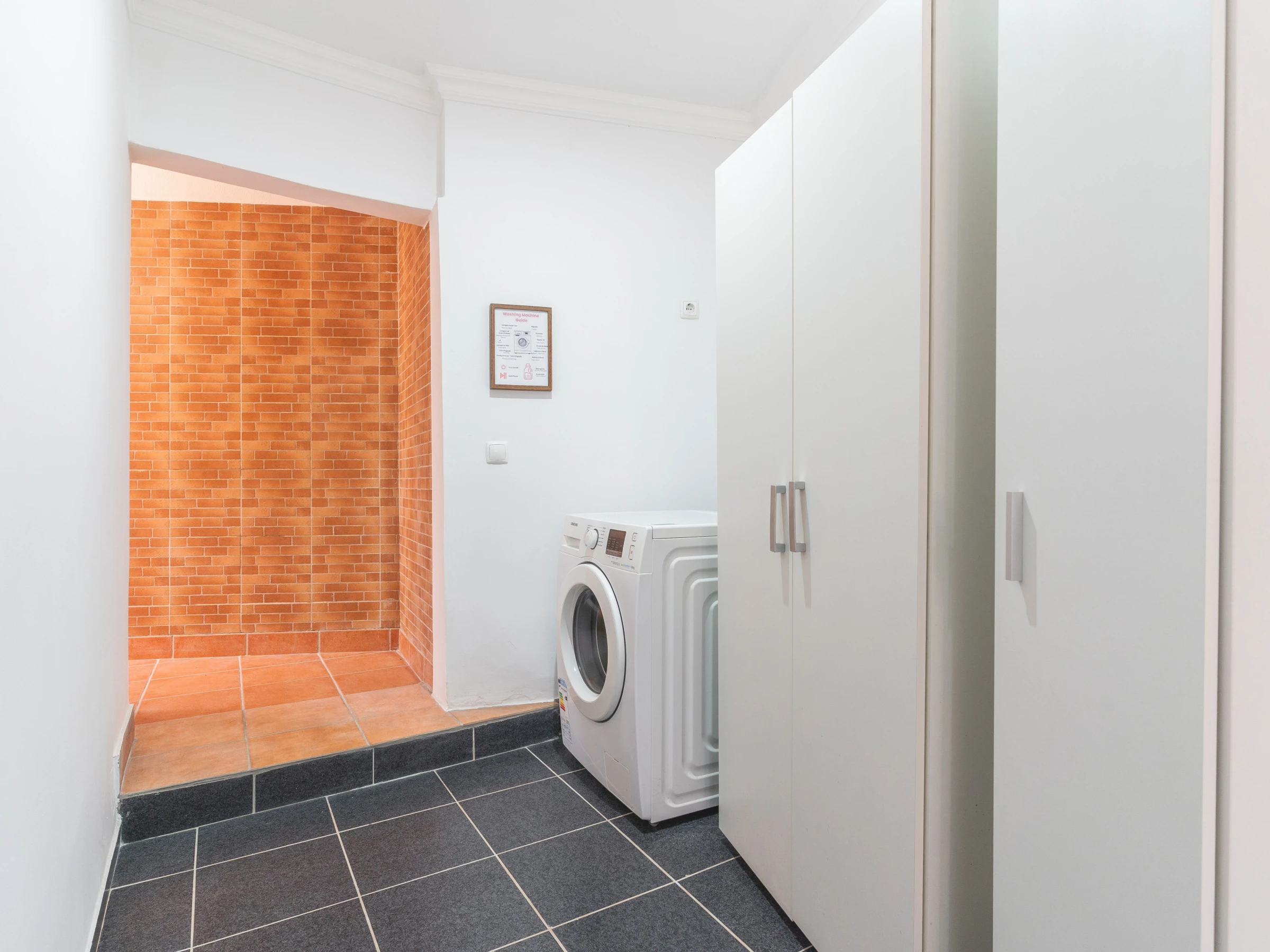 Die Küche ist mit allen Essentials zum Kochen ausgestattet, einschließlich Kühlschrank, Gefrierschrank, Backofen, Herd, Mikrowelle und Küchenutensilien. Für längere Aufenthalte steht auch eine Waschmaschine zur Verfügung. Der Wohnbereich verfügt über einen Smart-TV mit einer Box. Das Haus verfügt zudem über einen Grillbereich. Bitte beachten Sie, dass Holzkohle und Holz für den Grill nicht bereitgestellt werden und von den Gästen selbst mitgebracht werden müssen. Es gibt kein Warmwasser am Küchenhahn.
