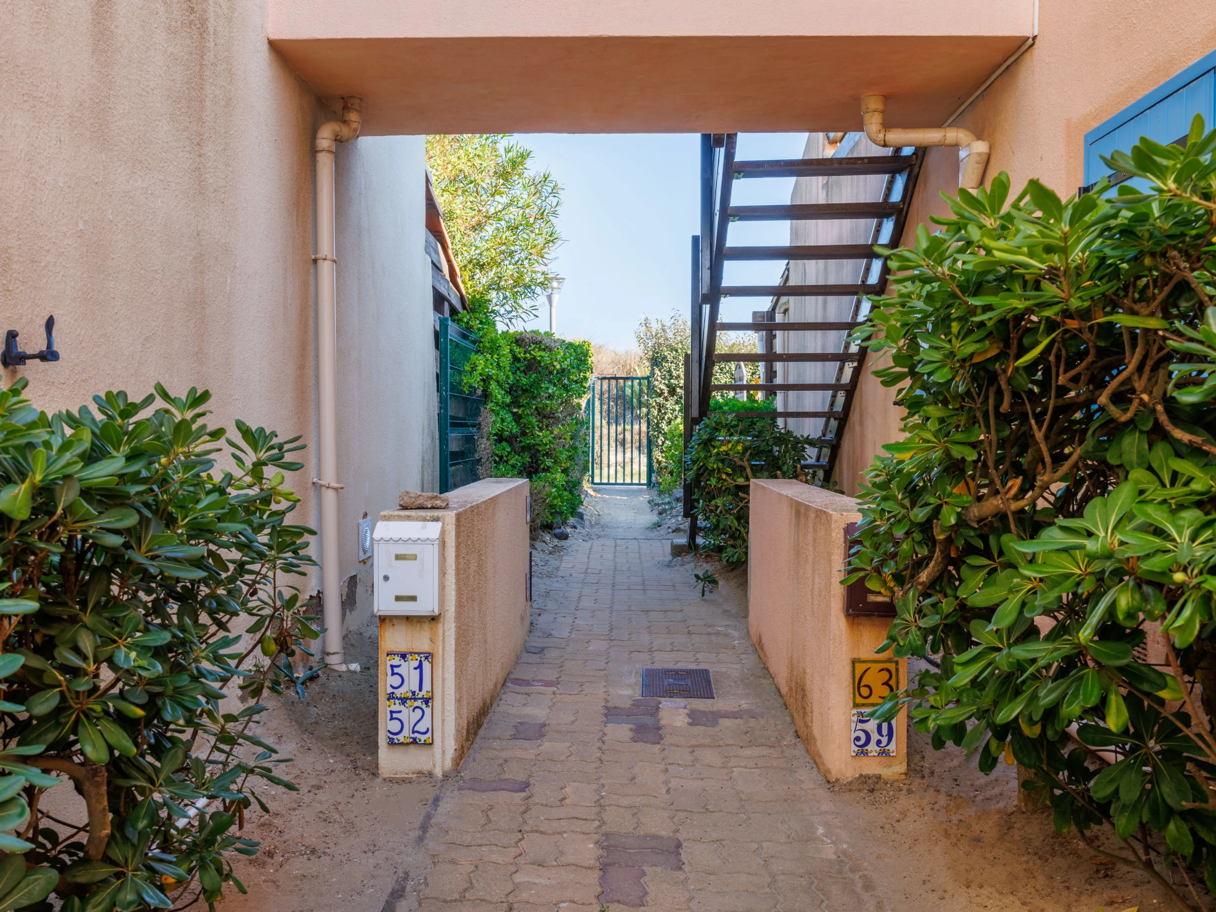 Residenz "Port La Roquille", auf 2 Stockwerken. Im Ortsteil La Roquille, 80 m vom Meer, 80 m vom Strand, direkter Zugang zum Strand. Einkaufsgeschäft, Lebensmittelgeschäft, Restaurant, Café 200 m, Bushaltestelle "Roquille" 400 m, Sandstrand "La Roquille" 180 m, Park "Lano" 550 m, FKK - Strand 3 km. Golfplatz (27 Loch) 3 km, Tennis 1 km, Tennishalle 1 km, Minigolf 4 km, Reitstall 4 km. Nahe gelegene Sehenswürdigkeiten: Iles des Loisirs 4 km, Jet ski 300 m, Mango's Beach 200 m. Bekannte Seen in der Umgebung sind gut erreichbar: Lac du Salagou 55 km.