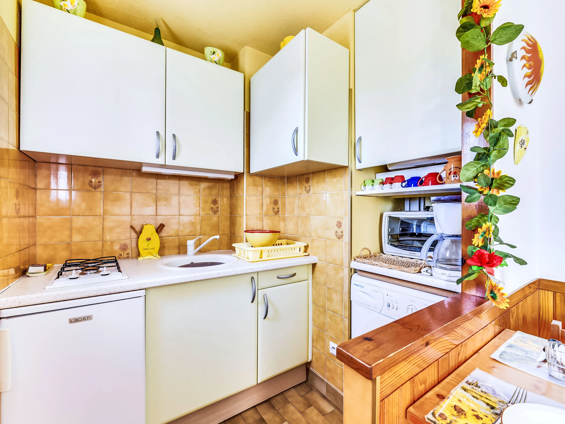 2-Zimmer-Wohnung 25 m2 im 2. Stock, Südlage. Wohn-/Esszimmer mit 1 Doppeldiwanbett (140 cm, Länge 200 cm), TV (Flachbildschirm), Radio. 1 Zimmer mit 1 franz. Bett (140 cm, Länge 190 cm). Kochnische (2 Kochplatten, Mini-Backofen, Toaster, Wasserkocher, Mikrowelle, elektrische Kaffeemaschine). Bad, sep. WC. Heizung, E-Heizung. Loggia. Zur Verfügung: Waschmaschine. Internet (Wireless LAN, extra). Parkplatz Nr. 23. Bitte beachten: Rauchmelder. [hidden]
