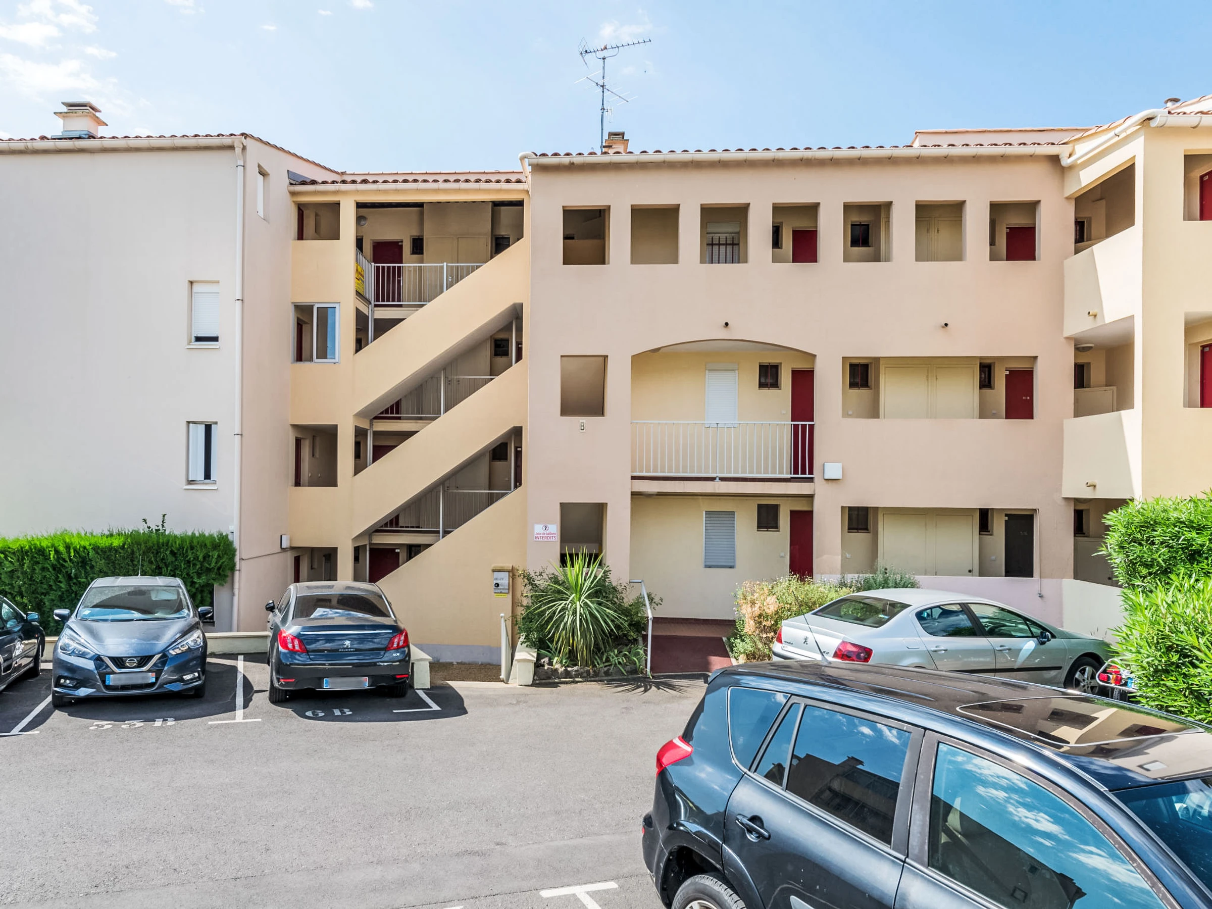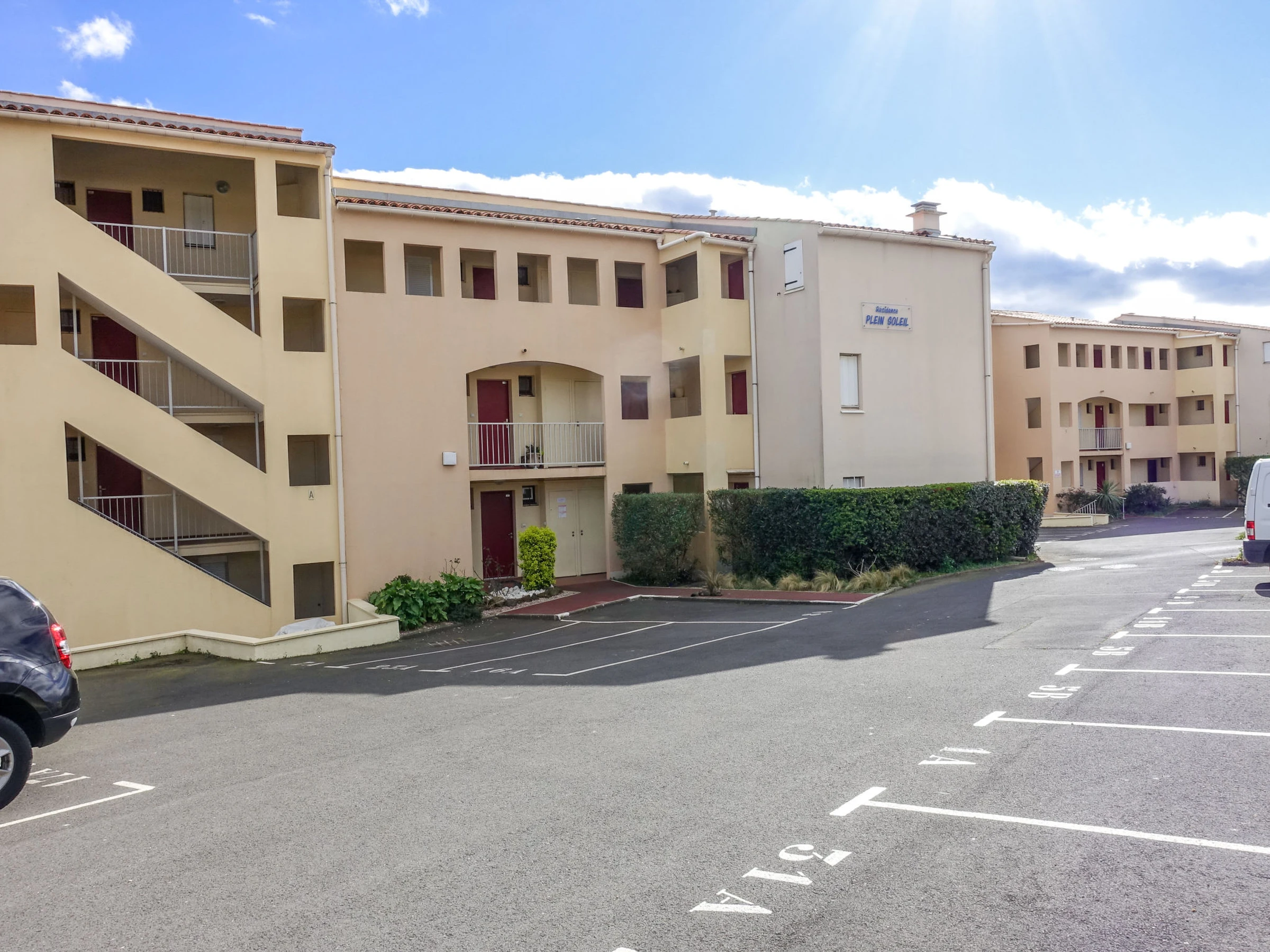 Residenz "Plein Soleil", auf 3 Stockwerken. Im Ortsteil Mont Saint Martin, 1 km vom Zentrum, 1.9 km vom Meer, 1.9 km vom Strand. Einkaufsgeschäft 800 m, Lebensmittelgeschäft 500 m, Supermarkt 3 km, Bäckerei 500 m, Bushaltestelle "Mont Saint Martin" 200 m, Sandstrand "Rochelongue" 1.2 km, Freibad 3 km. Sporthafen 400 m, Golfplatz (27 Loch) 800 m, Tennis 2 km, Reitstall 2.3 km. Nahe gelegene Sehenswürdigkeiten: Casino 850 m, Grande Roue 1 km, Aqualand 1.1 km, Musée de l'Ephèbe 2.2 km, Ile des Loisirs 1.5 km. Bitte beachten: Fahrzeug empfohlen.