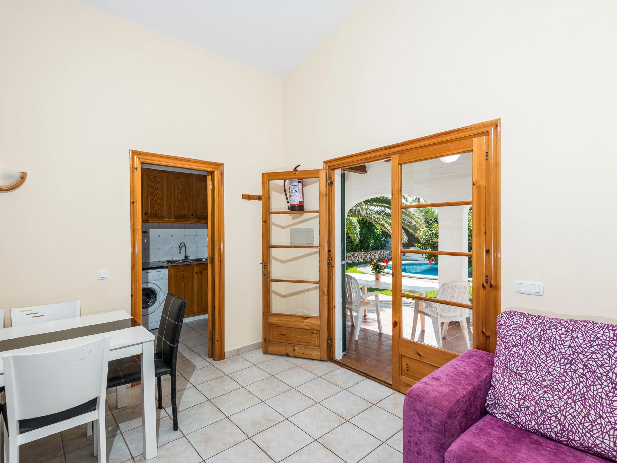 Das Wohnzimmer verfügt über einen Fernseher mit digitalen Kanälen, kostenloses WIFI für Kunden und bietet Zugang zu einer angenehmen Veranda mit Gartenmöbeln, um angenehme Sommerabende zu genießen. Der Außenbereich beherbergt einen eingebauten Grill mit Blick auf den Pool und einen schönen gepflegten Garten.
