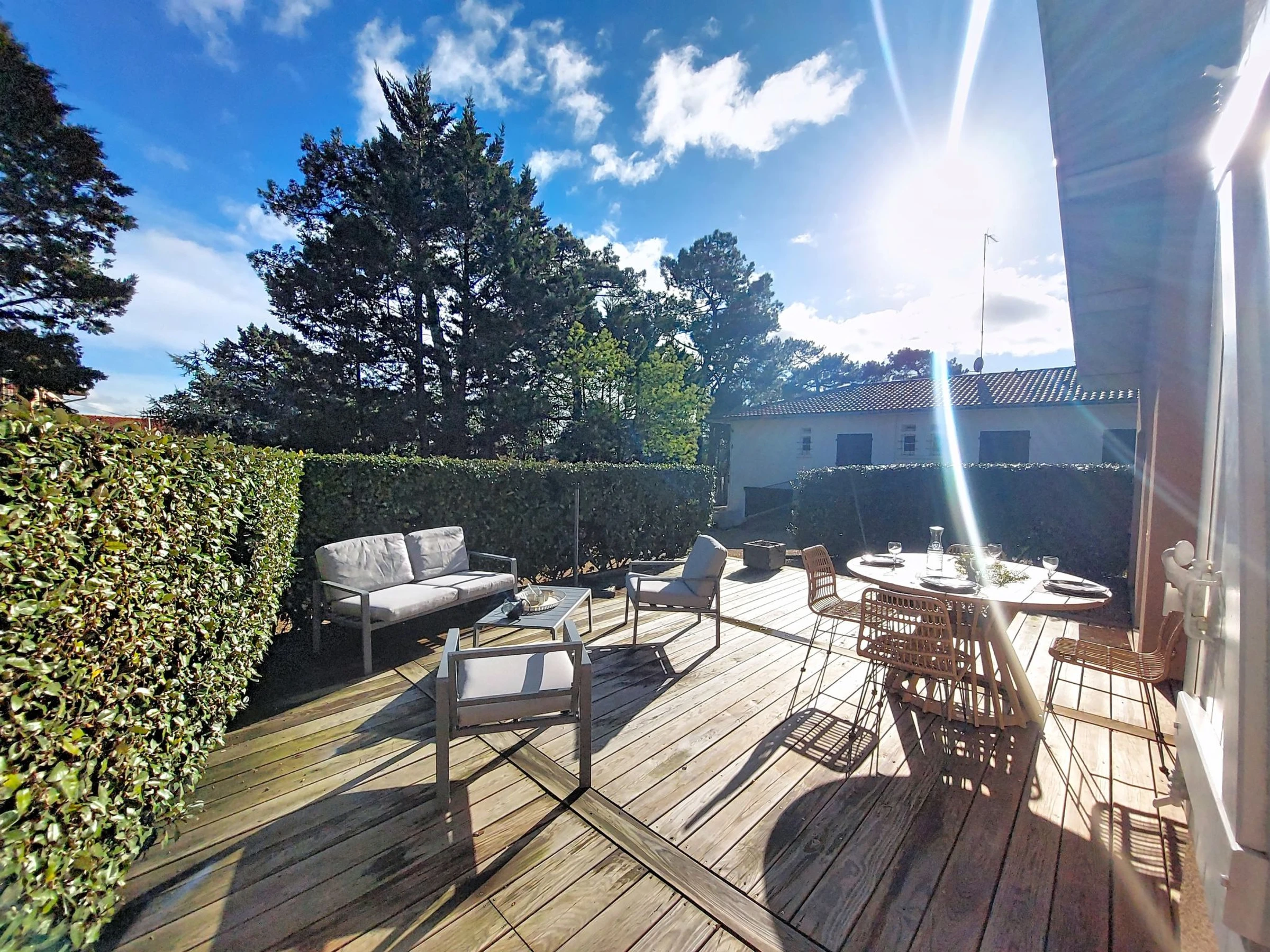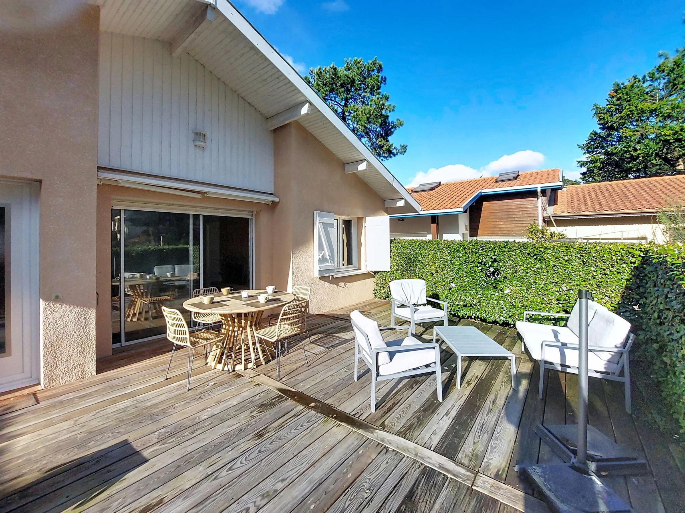 3-Zimmer-Haus 80 m2. Komfortabel und schön eingerichtet: Wohn-/Esszimmer. Ausgang zur Terrasse. 1 Zimmer mit 1 franz. Bett (140 cm, Länge 190 cm). 1 Zimmer mit 1 franz. Bett (140 cm, Länge 190 cm). Küche (Backofen, Geschirrspüler, 4 Glaskeramikplatten, Toaster, Wasserkocher, Mikrowelle, elektrische Kaffeemaschine). Ausgang zur Terrasse. Dusche, sep. WC. E-Heizung. Terrasse 20 m2, Ostlage und Westlage Terrasse 10 m2, Nordlage und Westlage. Terrassenmöbel. Zur Verfügung: Waschmaschine, Bügeleisen, Haartrockner. Internet (WLAN, gratis). Parkplatz. Bitte beachten: Nichtraucher-Haus. Rauchmelder. Inserat einer Privatperson nach Artikel 155, IV, CGI. [hidden]