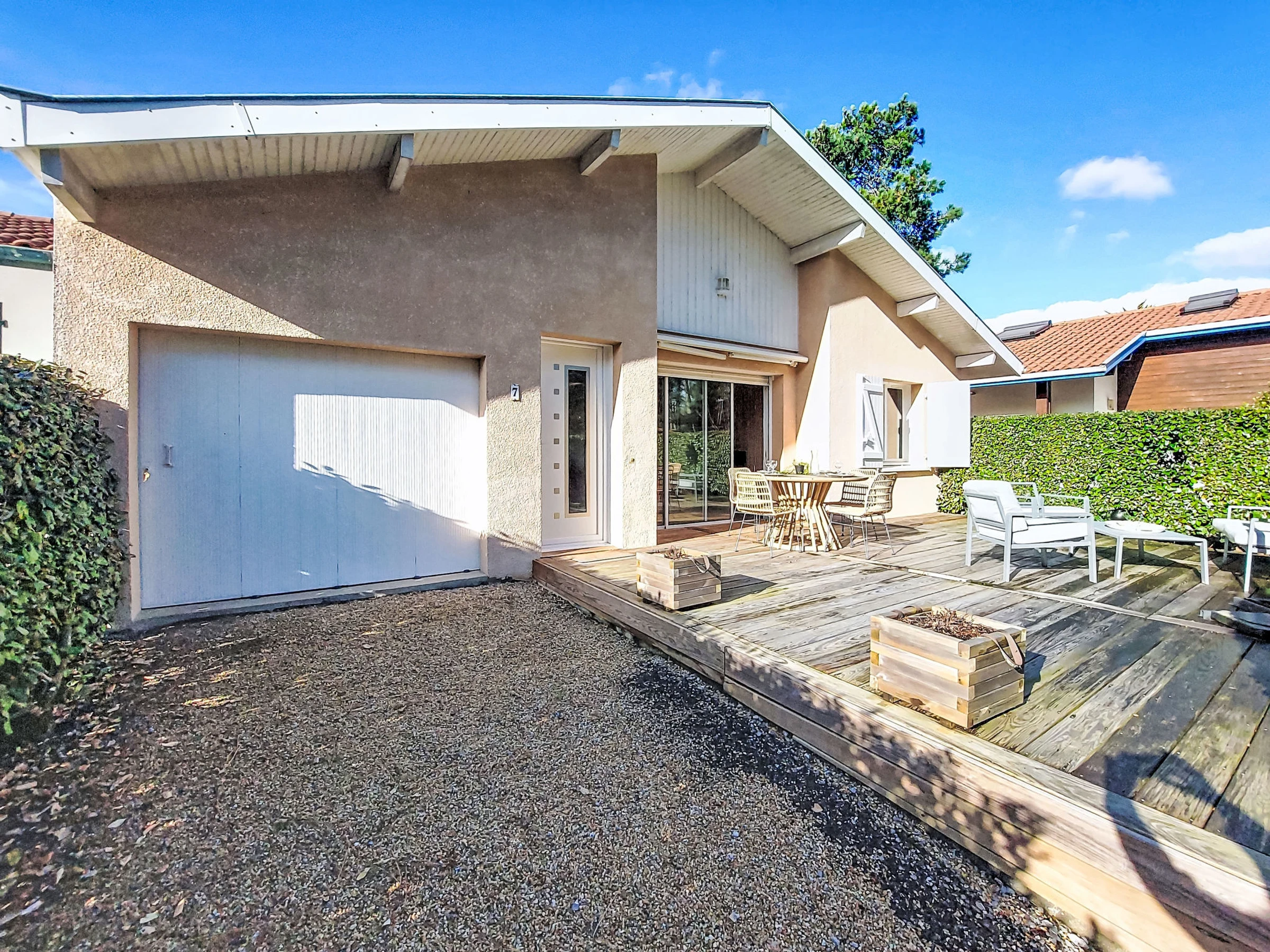 Capbreton 2 km von Hossegor: Haus "Bretons". Im Ort, 1 km vom Zentrum von Capbreton, 900 m vom Meer, in einer Sackgasse. Einkaufsgeschäft 1 km, Lebensmittelgeschäft 1 km, Supermarkt 1.5 km, Restaurant 1 km, Bäckerei 800 m, Fußgängerzone 1 km, Bushaltestelle 2 km, Sandstrand "la savance" 900 m. Sporthafen 500 m, Golfplatz (18 Loch) 4 km. Jugendgruppen nur auf Anfrage.