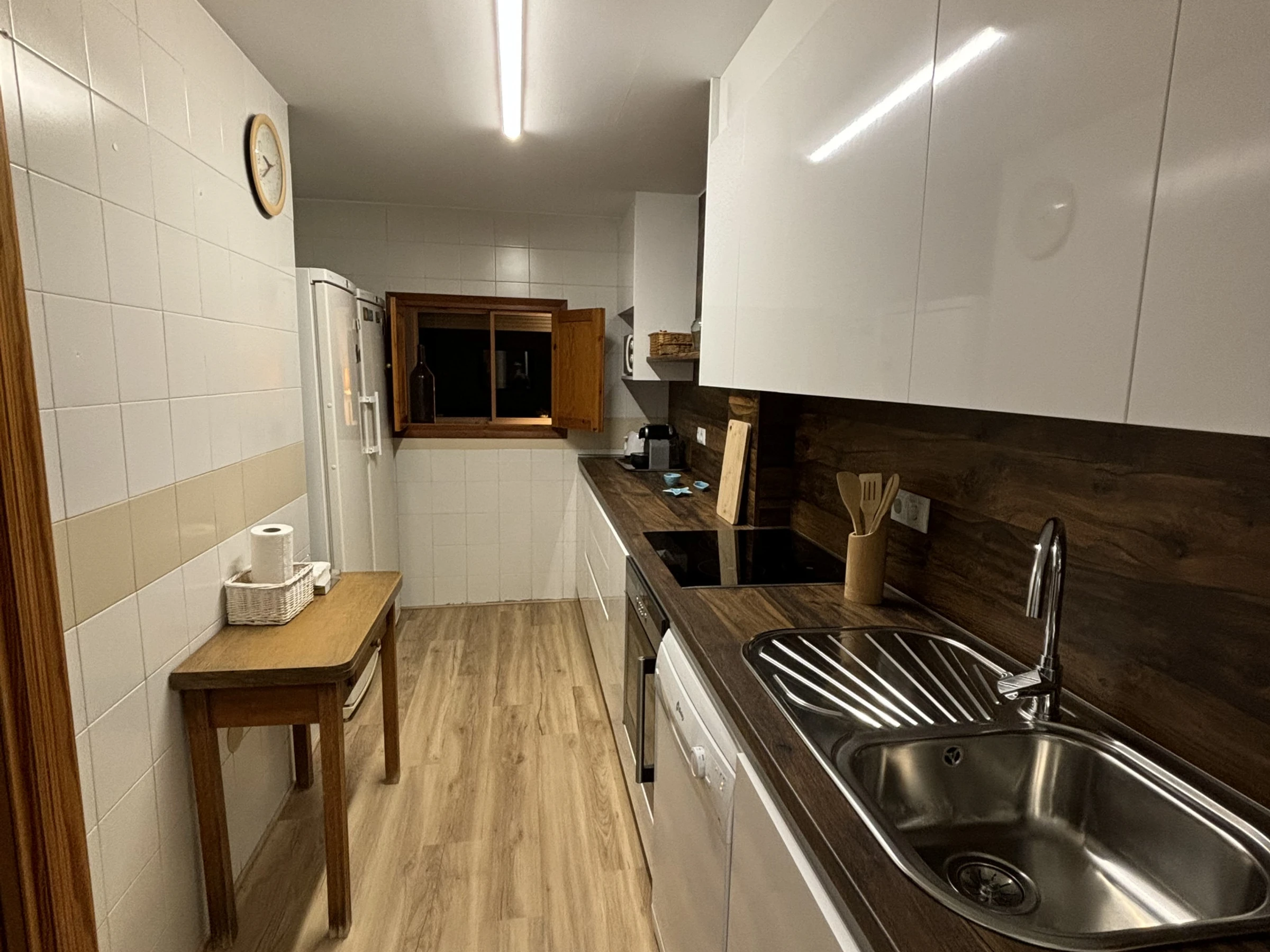 Dieses separate küche, mit induktions-kochfeld, ist ausgestattet in kühlschrank, mikrowelle, backofen, gefrierschrank, spülmaschine, geschirr/besteck, kochutensilien, kaffeemaschine, friteuse und toaster.