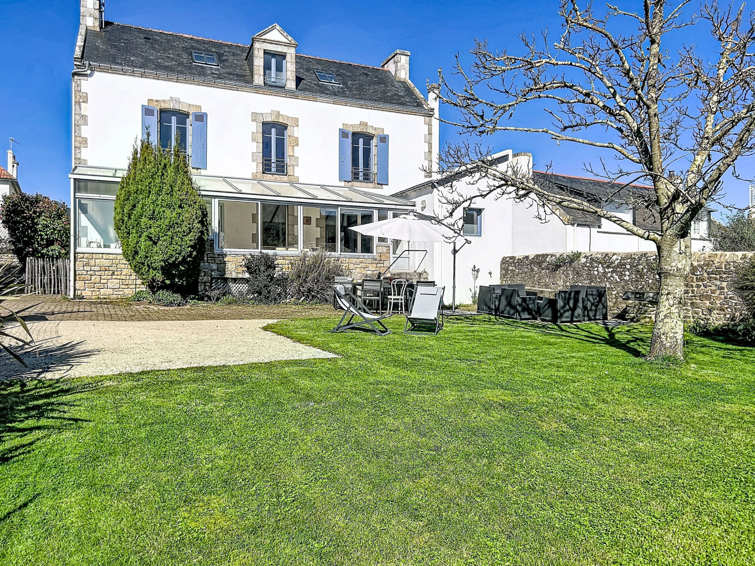 Carnac: Einfamilienhaus "Villa Ostréa", renoviert im Jahre 2020. Im Ortszentrum von Carnac bourg, exzellente Lage: Absolut zentral und dennoch ruhig, 1.5 km vom Meer, 1.5 km vom Strand, an einer Strasse. Zur Alleinbenutzung: gepflegter Garten 350 m2 (nicht eingezäunt), Parkplatz auf dem Grundstück. Supermarkt 1.1 km, Restaurant 300 m, Bäckerei 300 m, Zentrum zu Fuss in 2 Minuten erreichbar, Sandstrand "Grande Plage de Carnac" 1.5 km, Thermalbad "Thalassothérapie Thalazur Carnac". Golfplatz (18 Loch) 12 km, Surfschule 6 km, Segelschule 1.8 km. Nahe gelegene Sehenswürdigkeiten: Les alignements de Carnac 1 km, La Trinité sur Mer 4 km, La Presqu'ile de Quiberon 15 km, Vannes 35 km, Lorient 55 km, Belle Ile en Mer, Houat, Hoedic. Wandergebiete: Le Golfe du Morbihan.