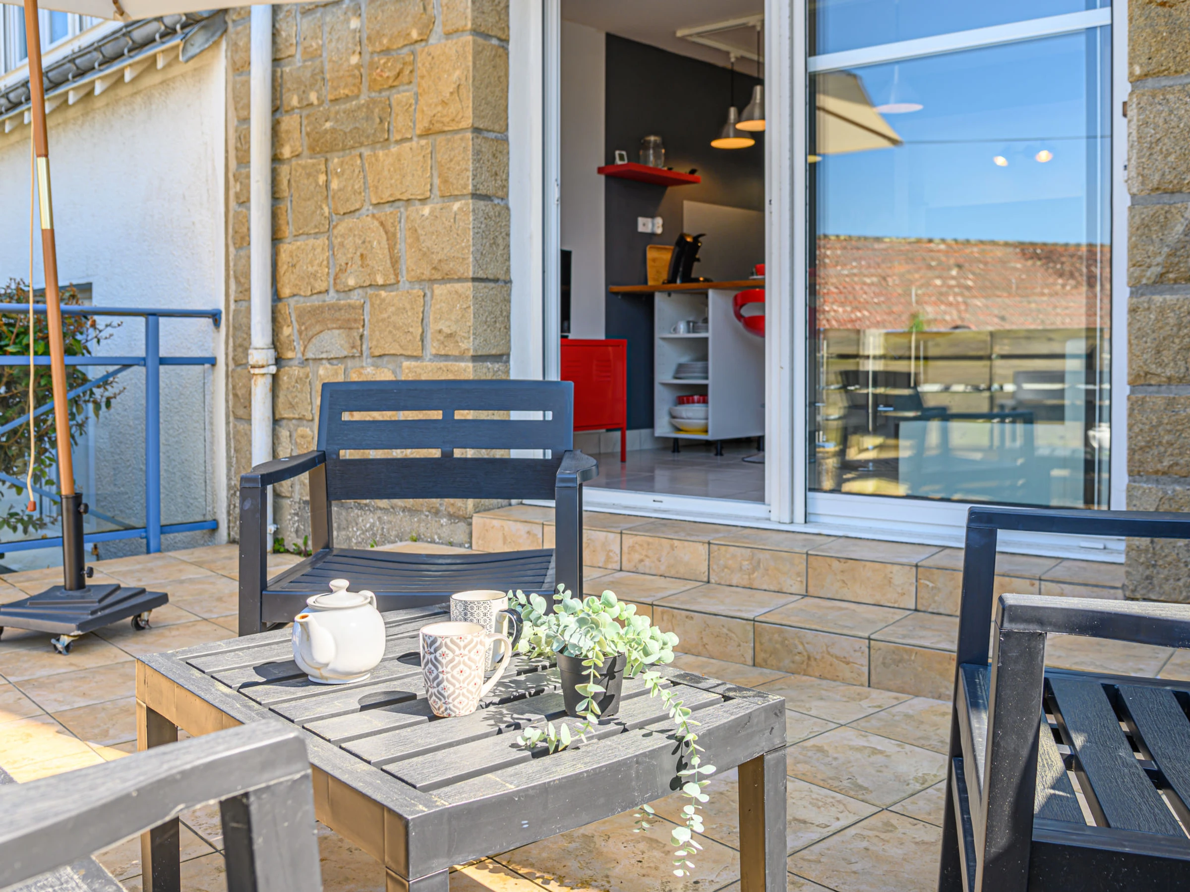 "Kermarine", 2-Zimmer-Wohnung 35 m2, im Erdgeschoss. Schön eingerichtet: Wohn-/Esszimmer mit TV (Flachbildschirm). 1 Zimmer mit 1 Doppelbett (1 x 160 cm, Länge 200 cm). Küche (Backofen, 2 Glaskeramikplatten, Toaster, Wasserkocher, Mikrowelle, elektrische Kaffeemaschine, Kapseln für die Kaffeemaschine (SENSEO) extra). Dusche, sep. WC. E-Heizung. Terrasse 12 m2. Zur Verfügung: Waschmaschine, Babybett (extra). Internet (WLAN, gratis). Parkplatz Nr. 1. Bitte beachten: Nichtraucher-Unterkunft, Parkplatz nur für kleine Wagen. Rauchmelder, kein Fahrstuhl. Inserat einer Privatperson nach Artikel 155, IV, CGI. [hidden]