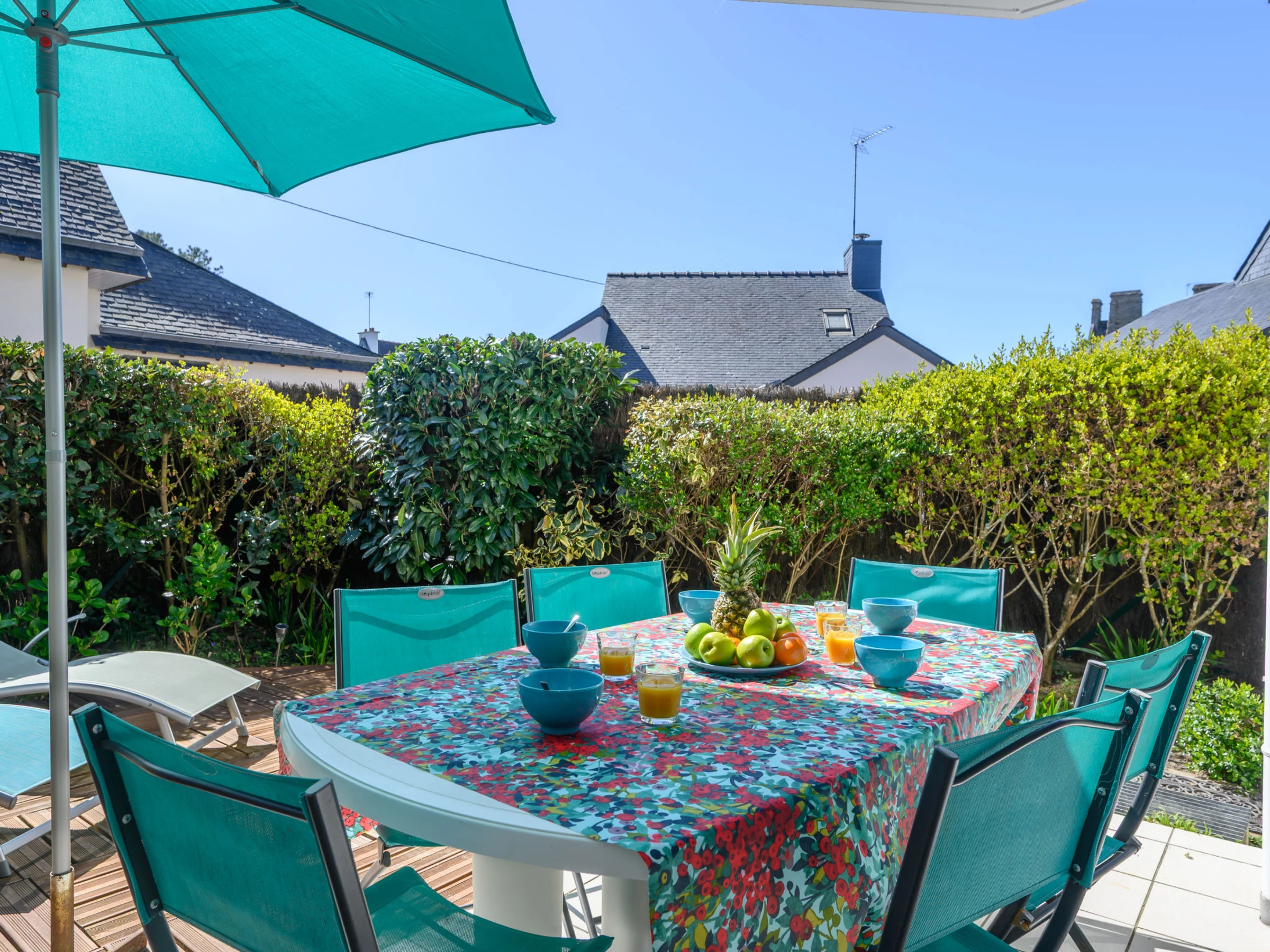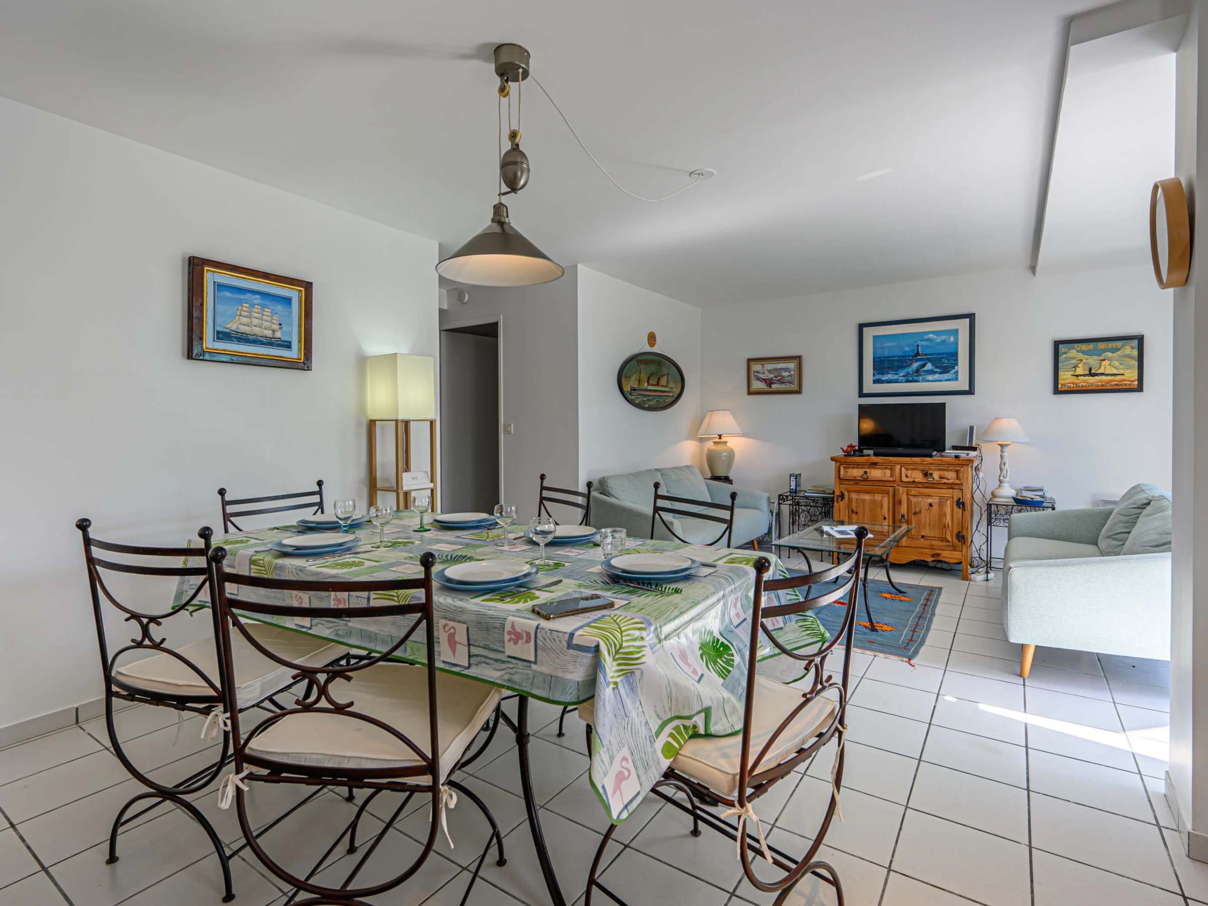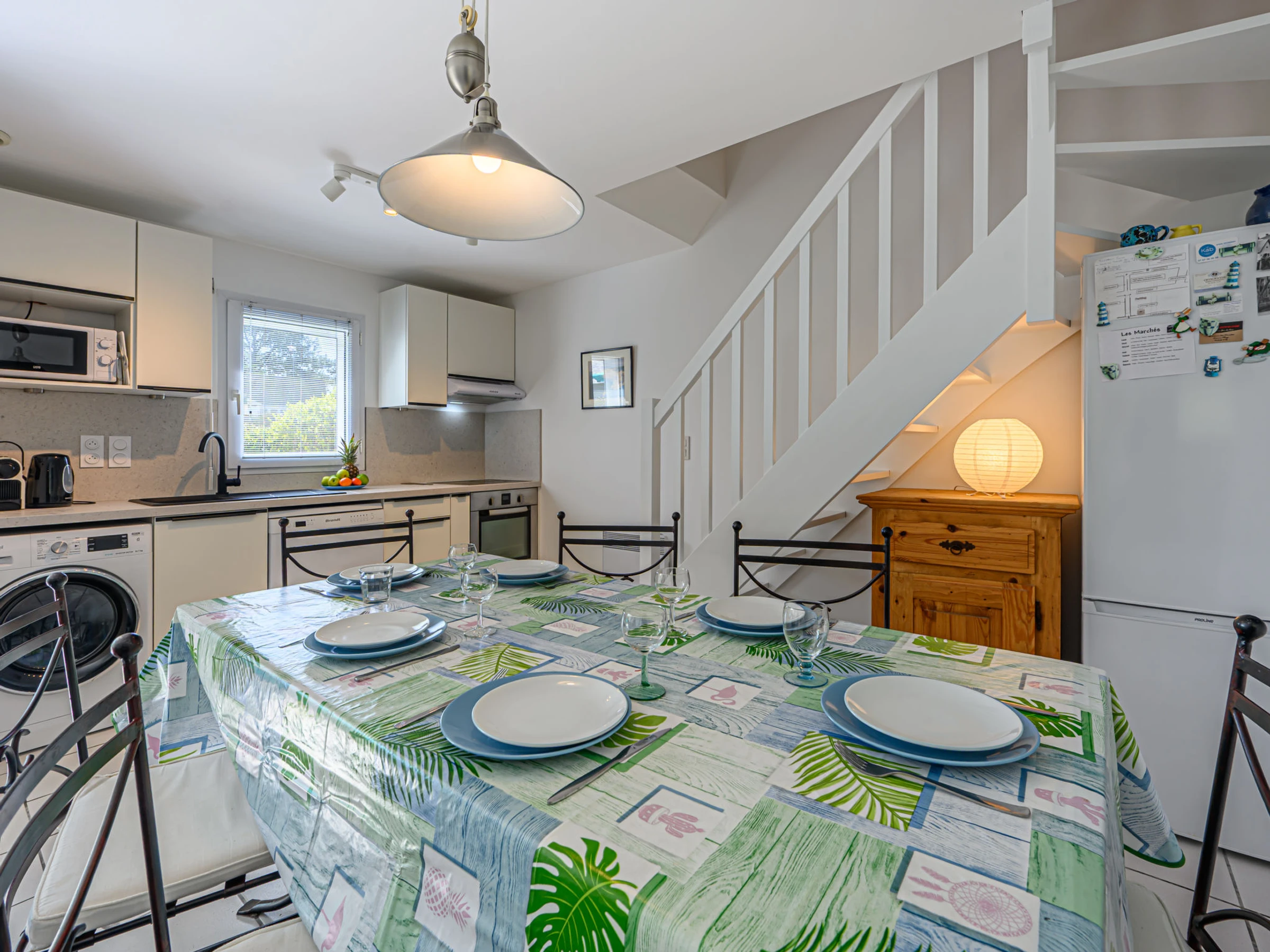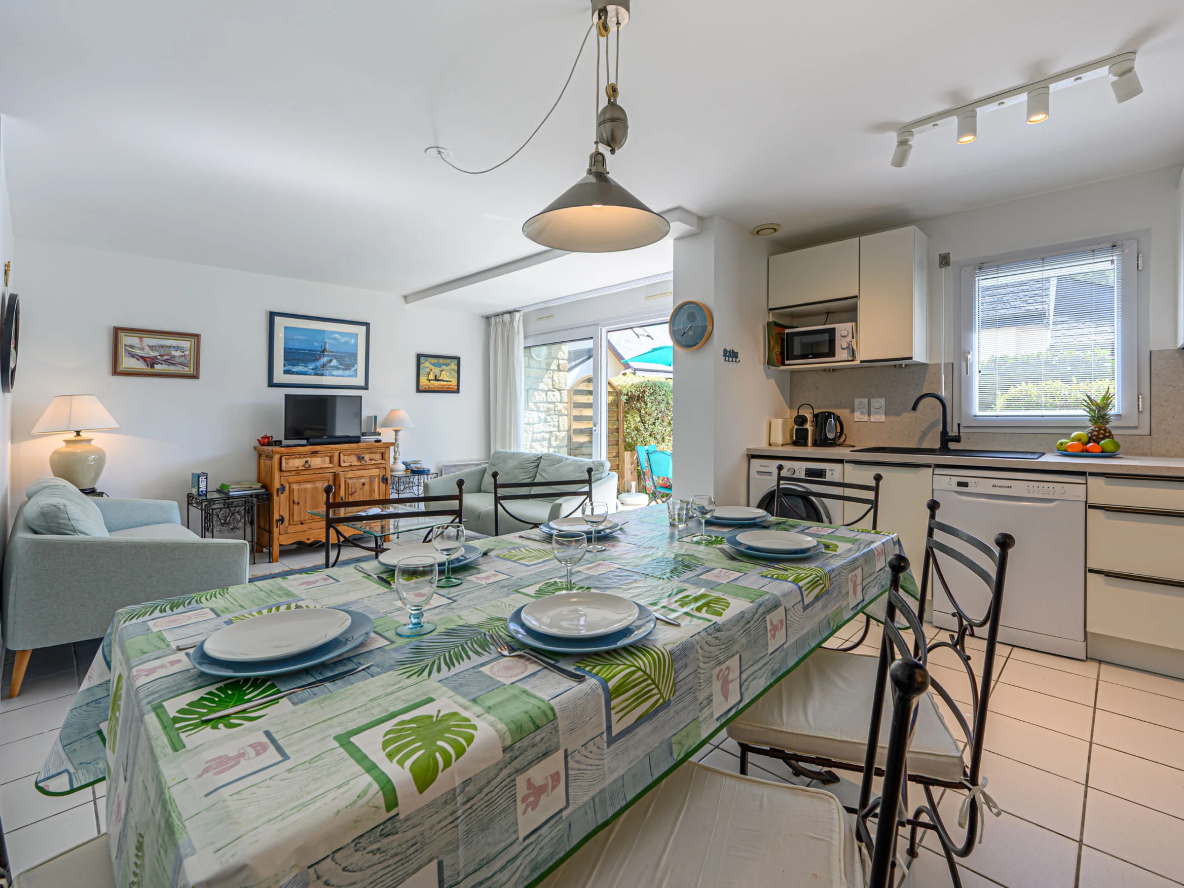 Appartementhaus "Le Parc des Druides", auf 2 Stockwerken. Im Ort, ruhige Lage in einem Wohnquartier, 250 m vom Meer, 250 m vom Strand. Einkaufsgeschäft 900 m, Supermarkt 200 m, Restaurant 500 m, Bäckerei 500 m, Fahrradverleih 300 m, Bahnstation 15 km, Sandstrand "Grande Plage" 250 m, Thermalbad "Thalazur Carnac" 1.2 km. Golfplatz (18 Loch) 12 km, Segelschule 1.4 km, Tennis 900 m, Reitstall 4 km. Nahe gelegene Sehenswürdigkeiten: Alignements de Carnac 3.5 km, La Trinité sur Mer 4 km, Presqu'ile de Quiberon 15 km, Vannes 35 km, Lorient 52 km. Wandergebiete: Golfe du Morbihan.