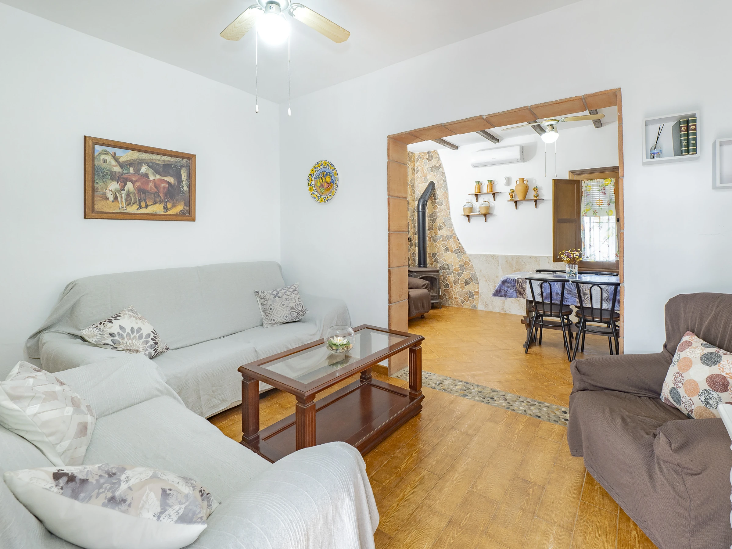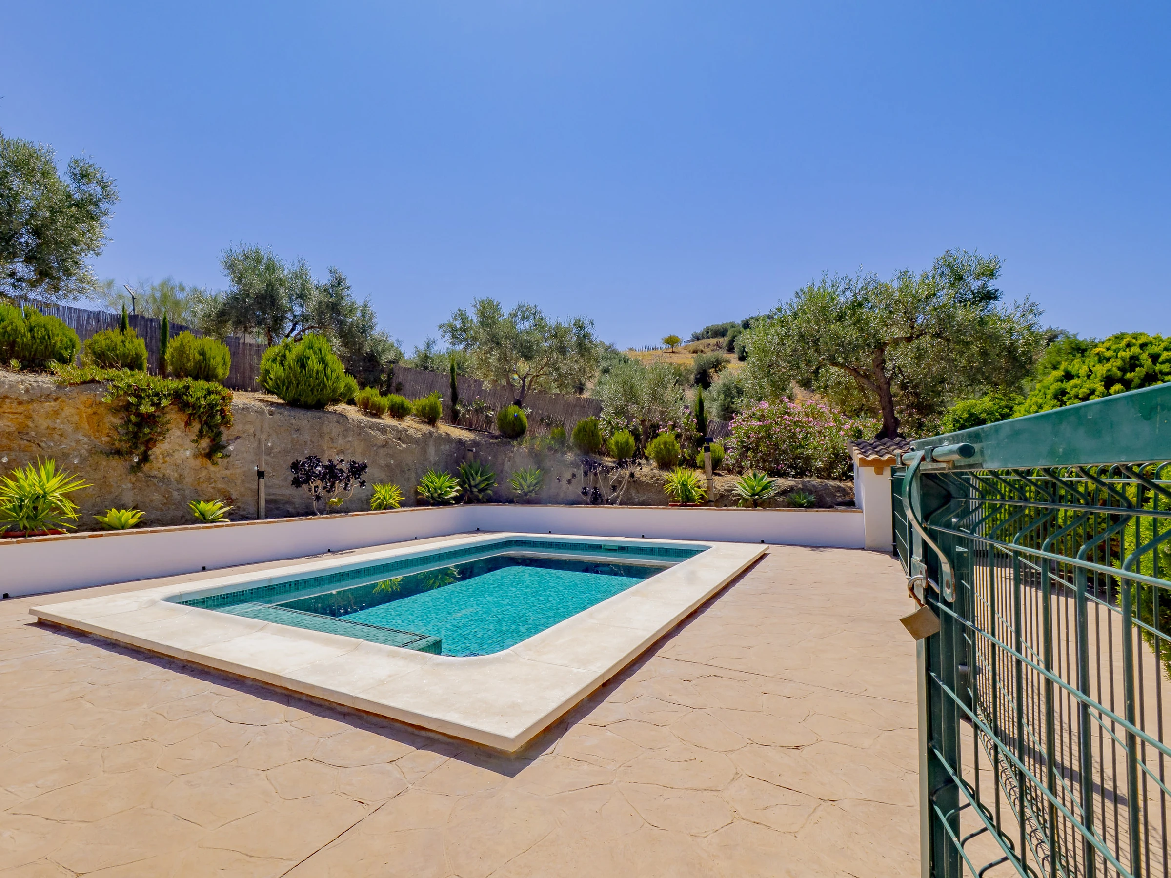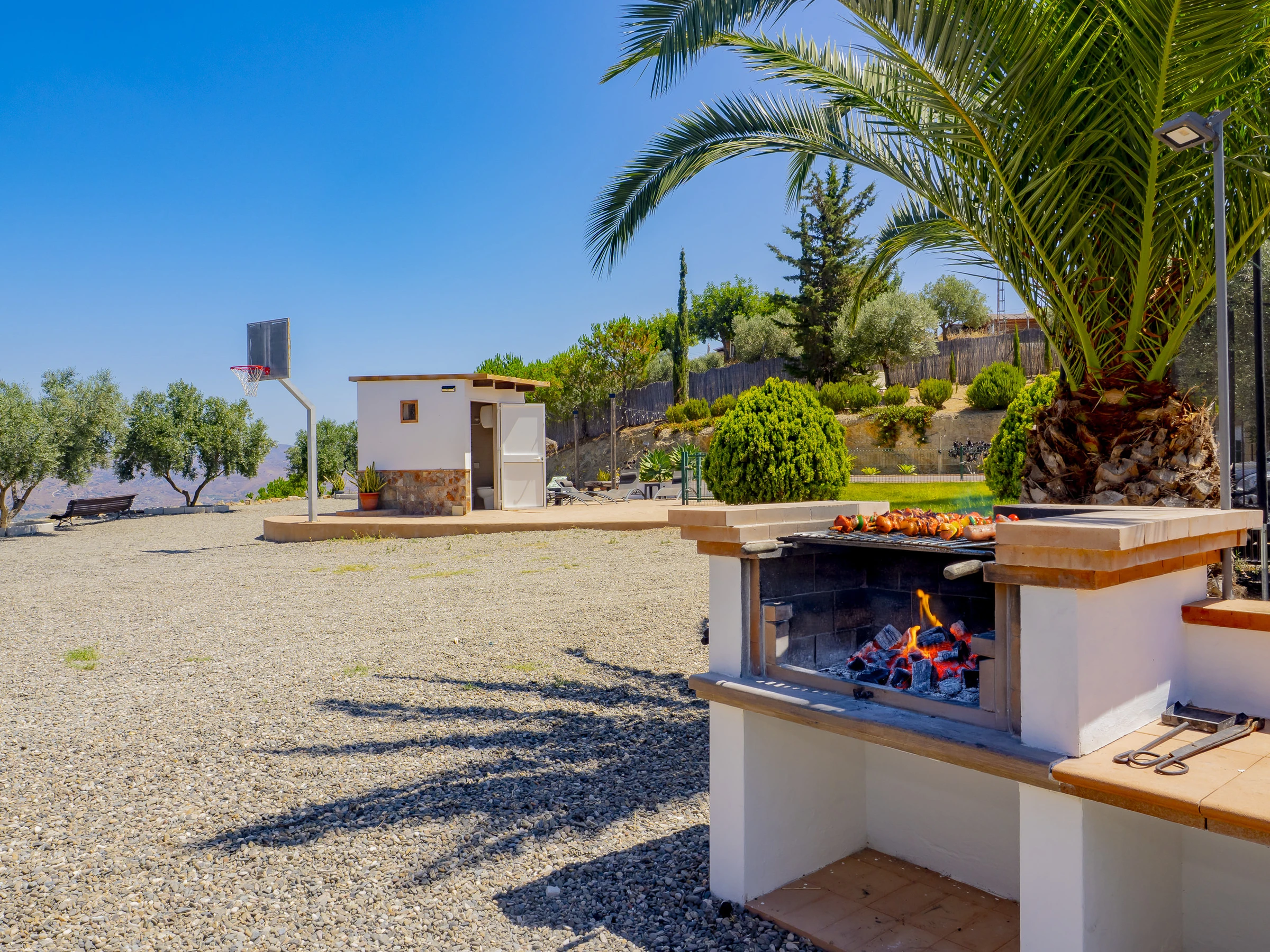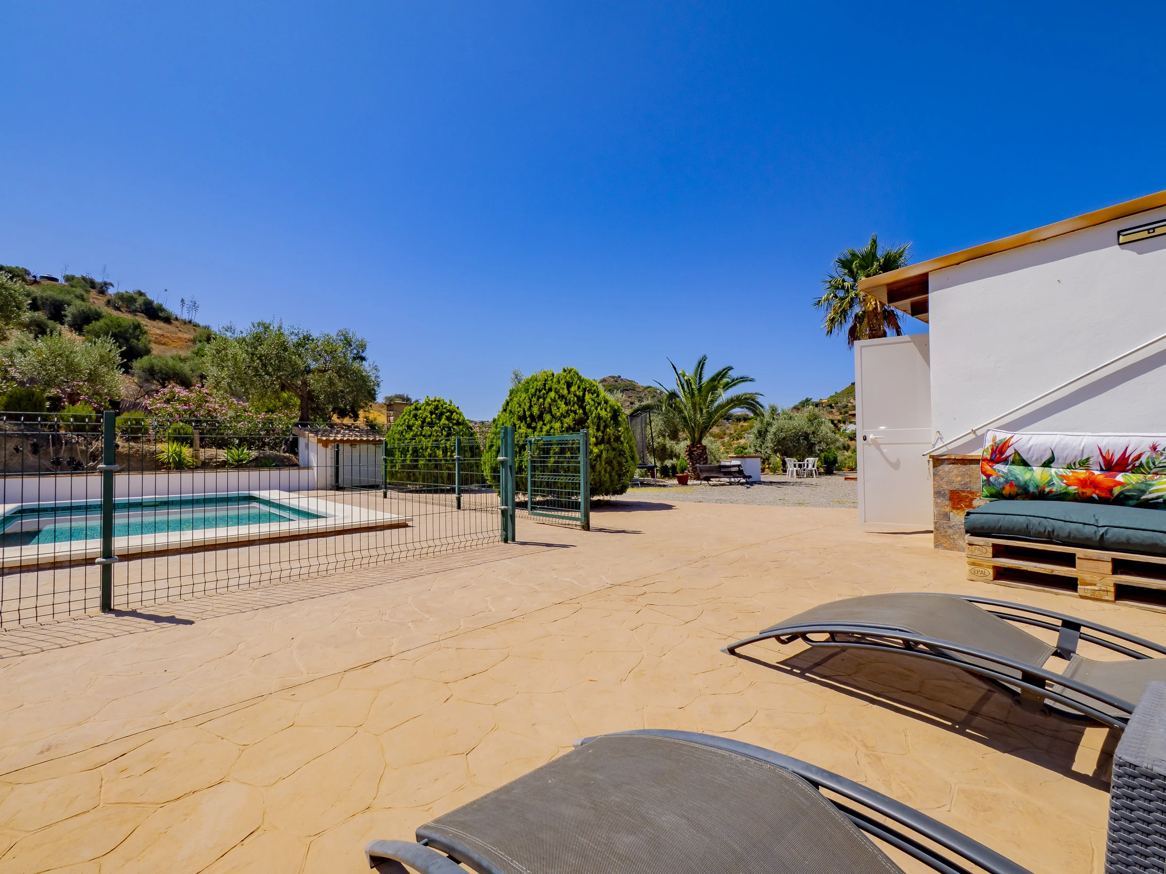 Zu den Annehmlichkeiten gehören: Garten mit Mobiliar, eingezäuntes Grundstück, Terrasse, Waschmaschine, Grill, Kamin, Bügeleisen, WLAN, Haartrockner, Kinderbereich, Heizung mit Wärmepumpe, Klimaanlage im Wohnzimmer und in mehreren Schlafzimmern, privates Schwimmbad und Außenparkplatz. Außerdem verfügt es über 4 Ventilatoren und Moskitonetze in allen Räumen für mehr Komfort.