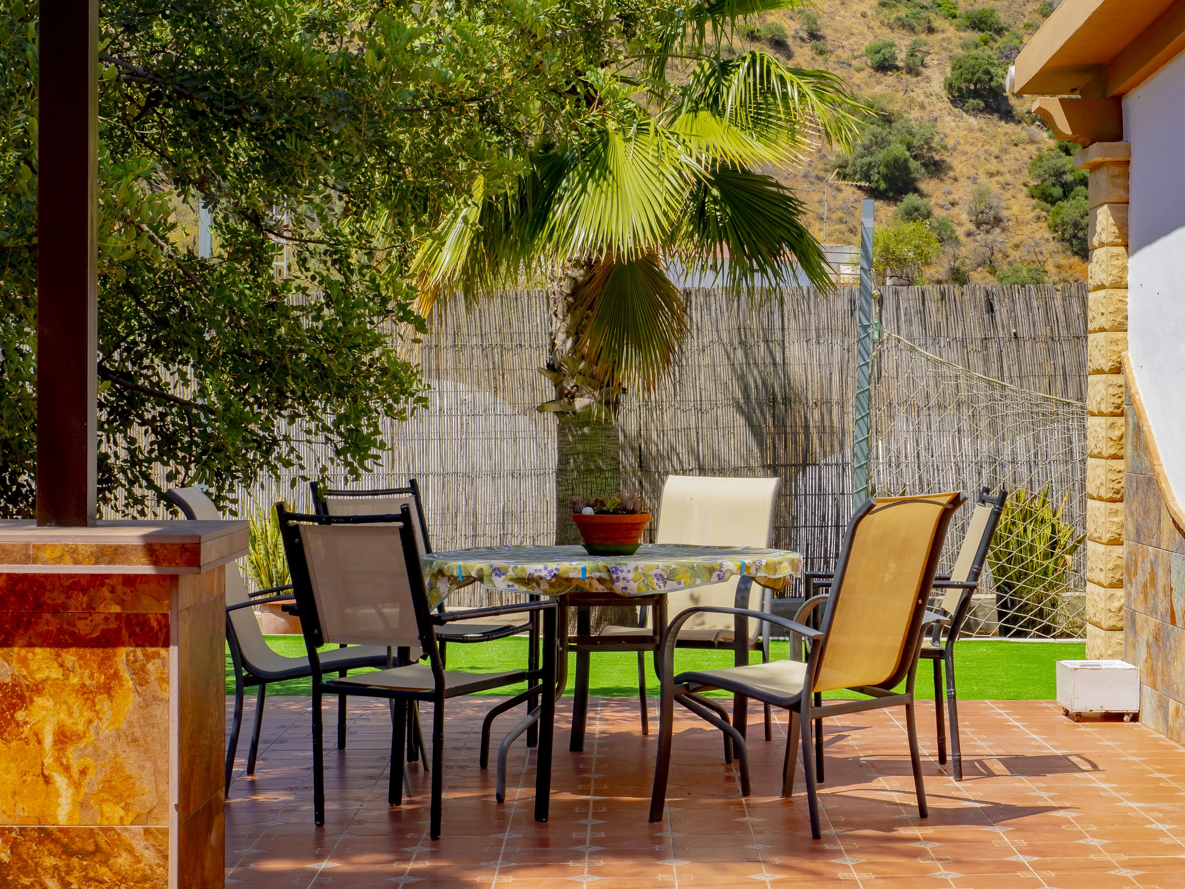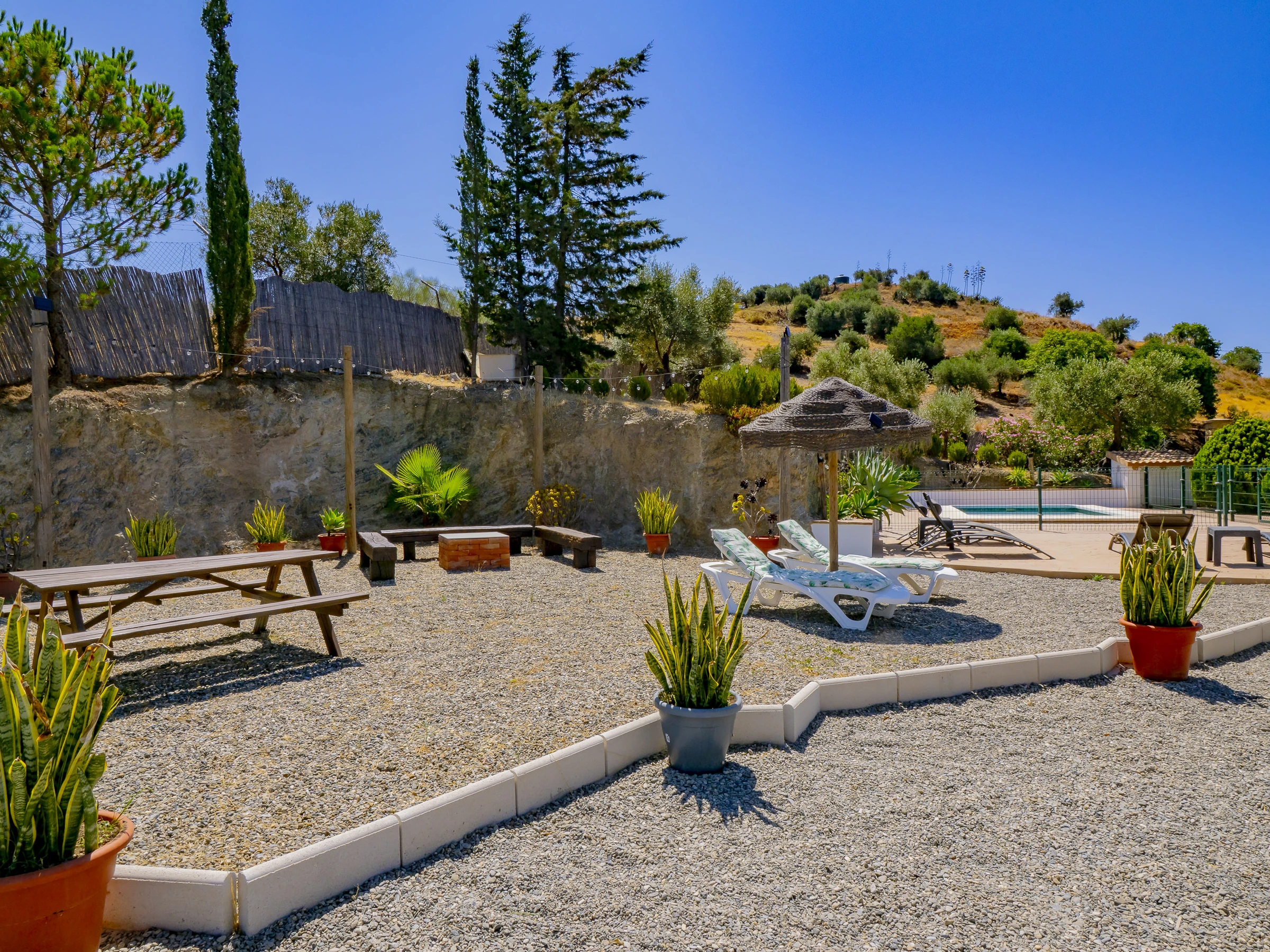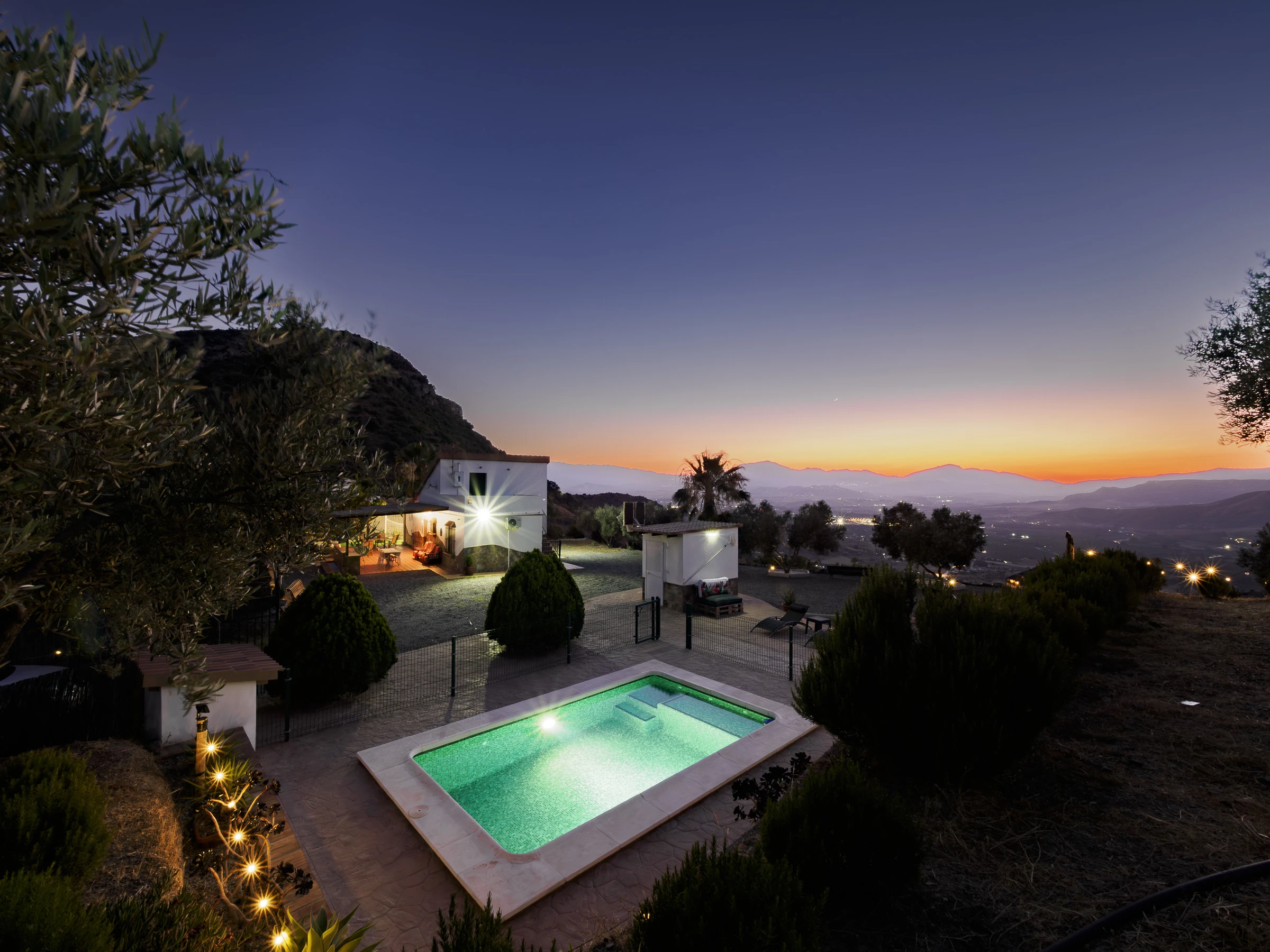 Zu den Annehmlichkeiten gehören: Garten mit Mobiliar, eingezäuntes Grundstück, Terrasse, Waschmaschine, Grill, Kamin, Bügeleisen, WLAN, Haartrockner, Kinderbereich, Heizung mit Wärmepumpe, Klimaanlage im Wohnzimmer und in mehreren Schlafzimmern, privates Schwimmbad und Außenparkplatz. Außerdem verfügt es über 4 Ventilatoren und Moskitonetze in allen Räumen für mehr Komfort.