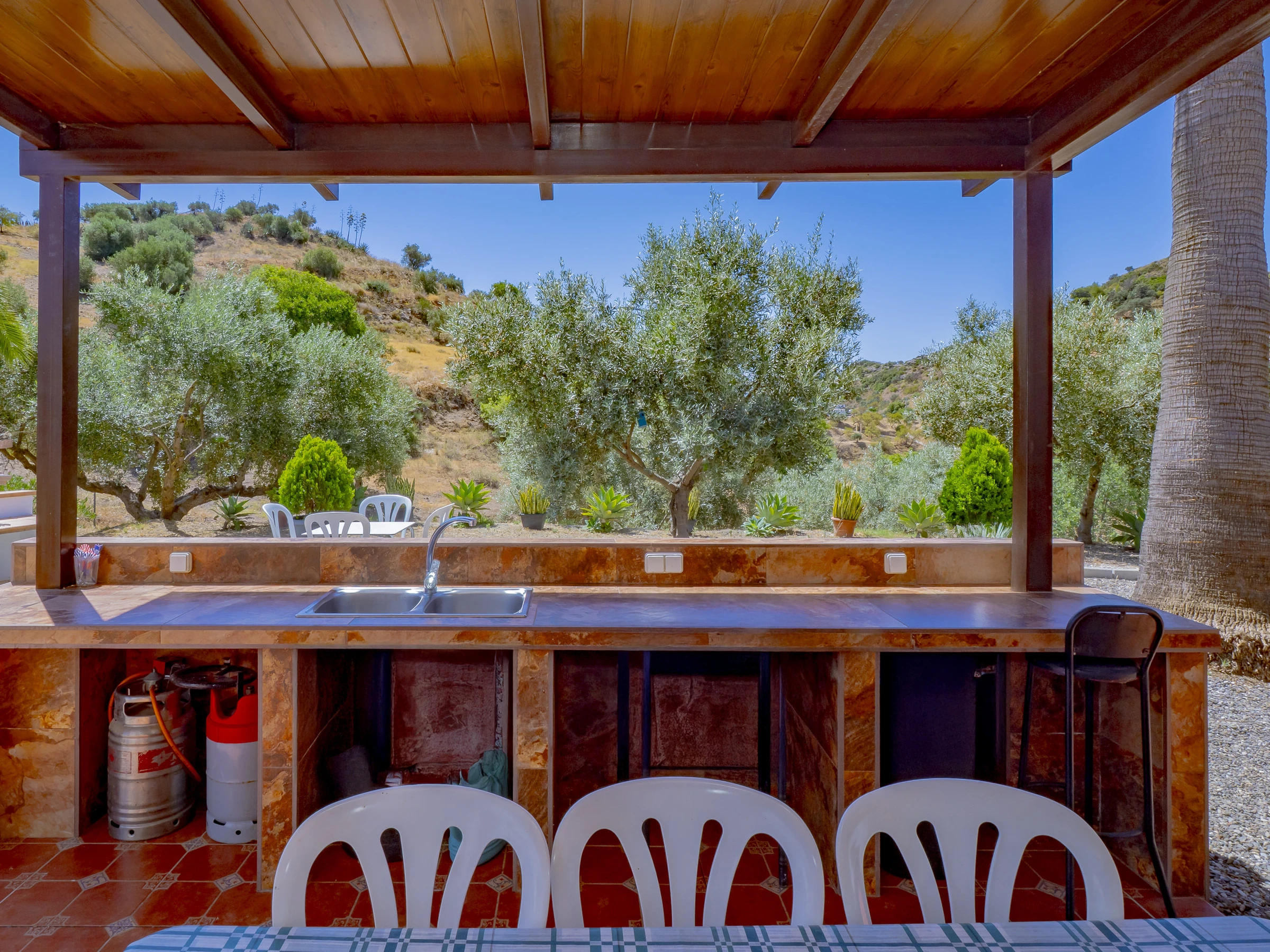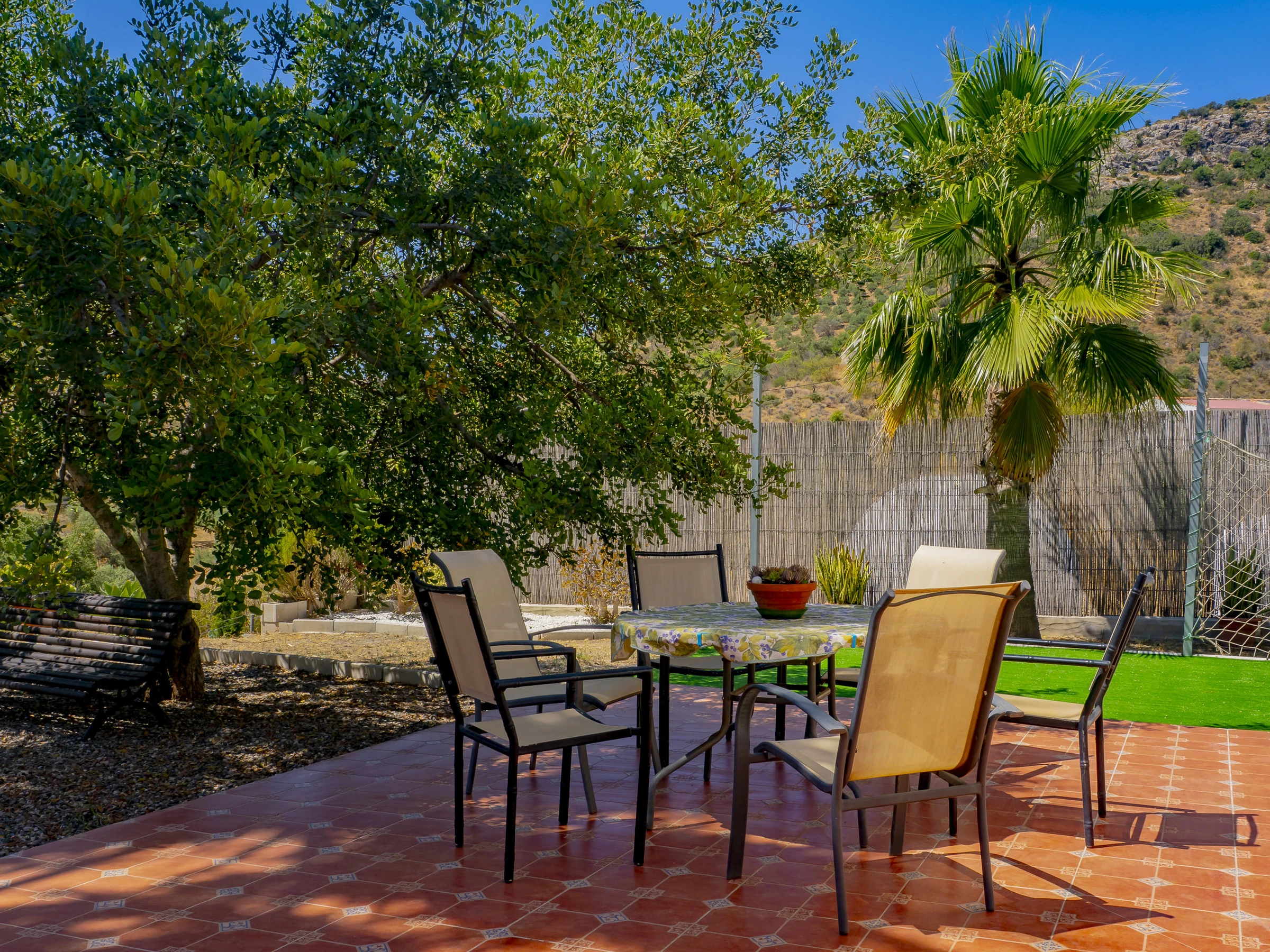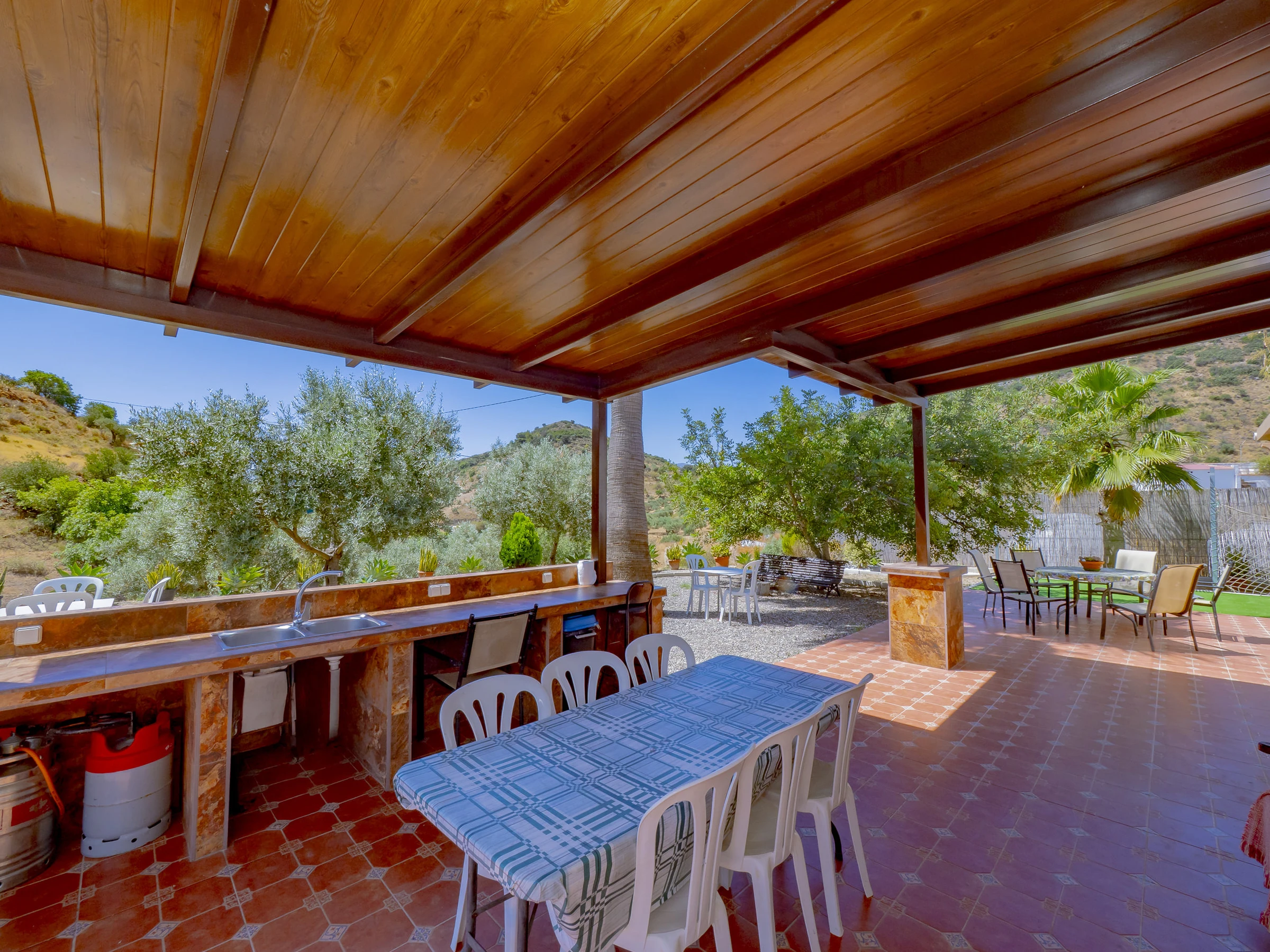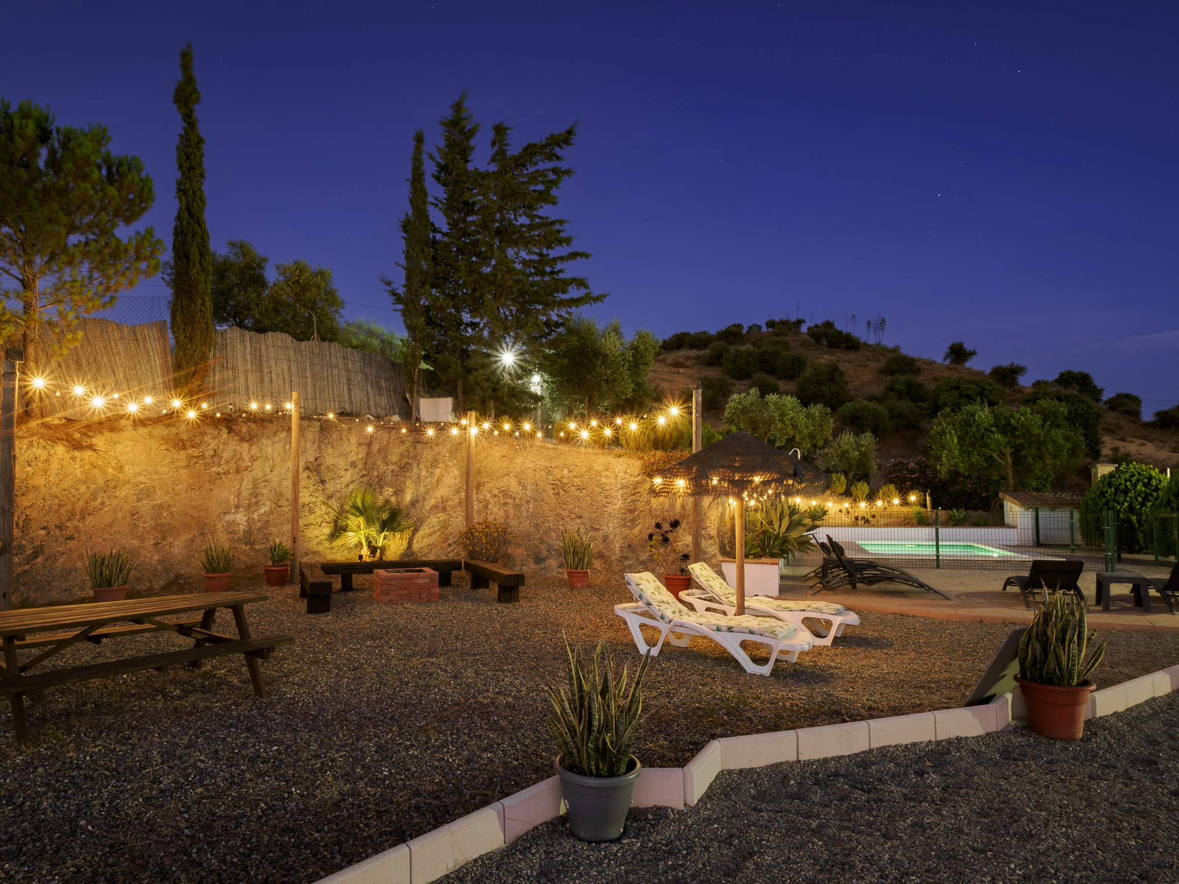 Zu den Annehmlichkeiten gehören: Garten mit Mobiliar, eingezäuntes Grundstück, Terrasse, Waschmaschine, Grill, Kamin, Bügeleisen, WLAN, Haartrockner, Kinderbereich, Heizung mit Wärmepumpe, Klimaanlage im Wohnzimmer und in mehreren Schlafzimmern, privates Schwimmbad und Außenparkplatz. Außerdem verfügt es über 4 Ventilatoren und Moskitonetze in allen Räumen für mehr Komfort.