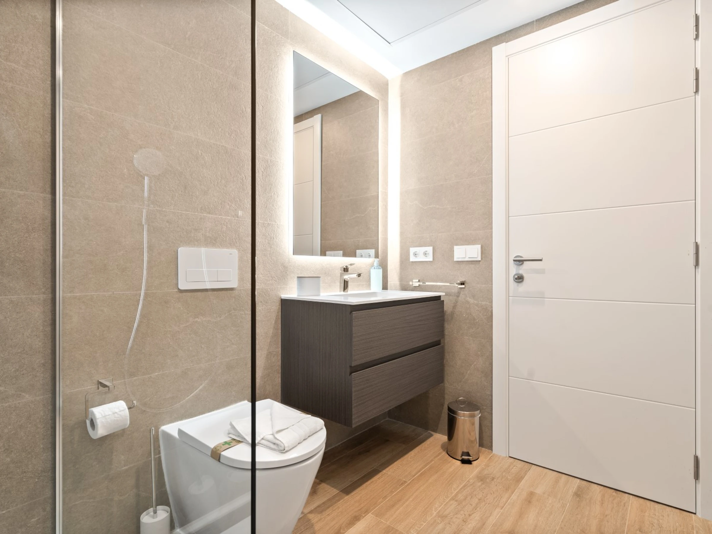 Die Wohnung liegt ideal nur 100 Meter von der Crystal Lagoon und ihrem privaten Sandstrand entfernt. In der gleichen kurzen Gehdistanz finden Sie das Restaurant Alcazaba Lagoon, perfekt für entspannte mediterrane Küche.