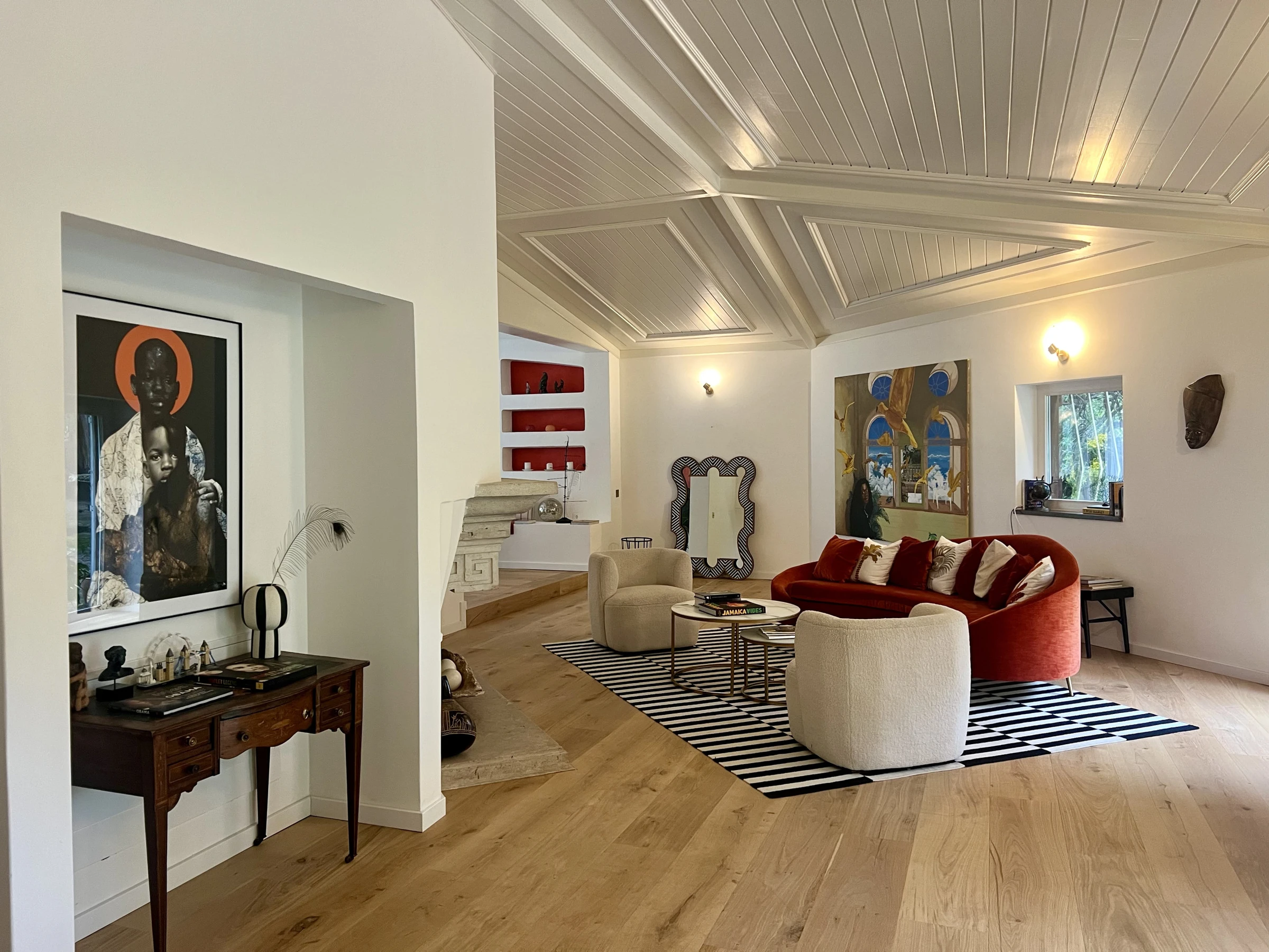 It is surrounded by some of the best hiking trails and beaches in Portugal, like Praia do Guincho and Praia da Ursa. Also, located at a 5-minute walk to the charming Malveira town. Originally a rock quarry, the property was designed in a mid century, open plan style by an artistic family who chose to keep the prominent rock formations that embellished the land, as well as fruit trees and natural landscapes.