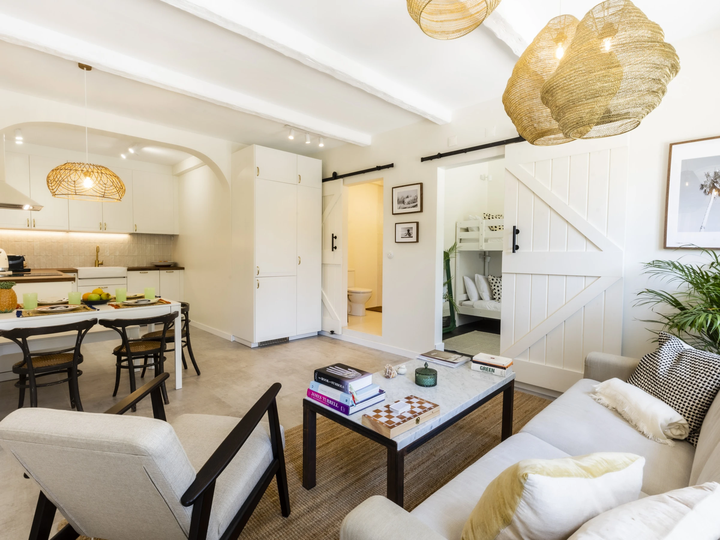 The property also has a separate guest house bungalow with an open plan living-dining area, fully equipped kitchen with dishwasher and laundry machine, 2 bedrooms (1 queen bed, 1 bunk bed) and 1 bathroom with walk-in shower.