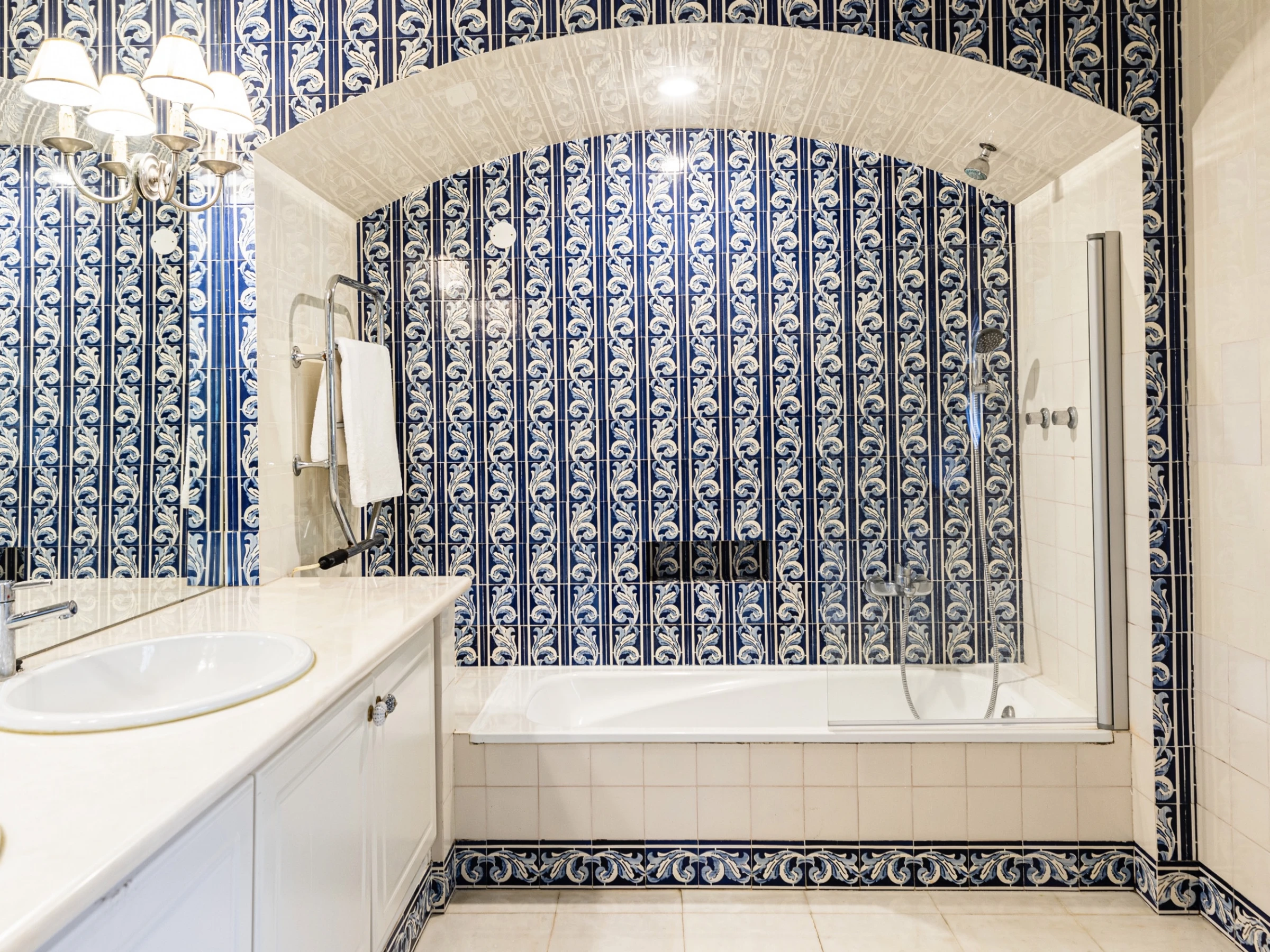 This two-story property consists of a living room, a full equipped kitchen with dishwasher, 4 bedrooms with ensuites (all with bathtub and showers), a library, and a cinema room.