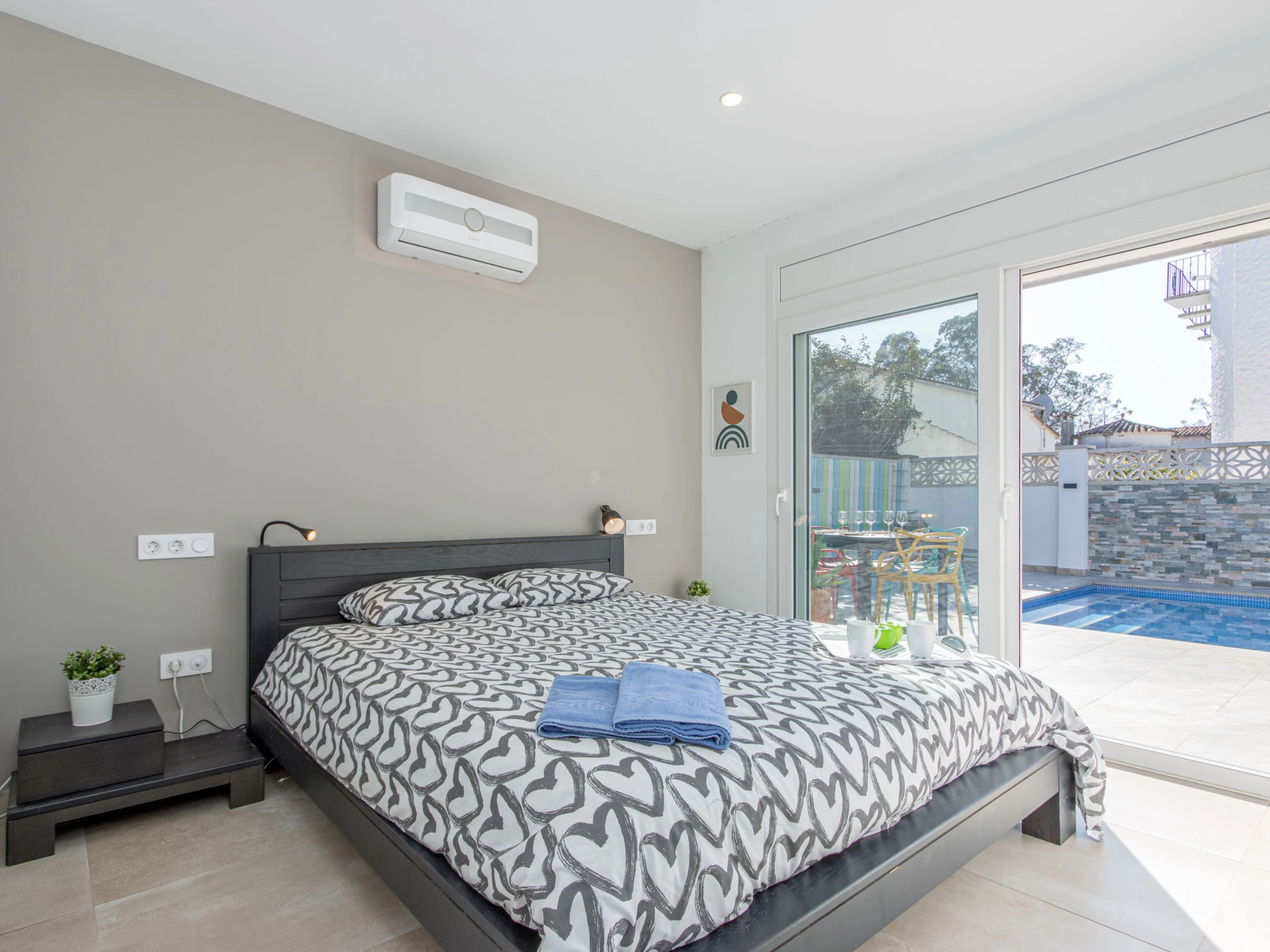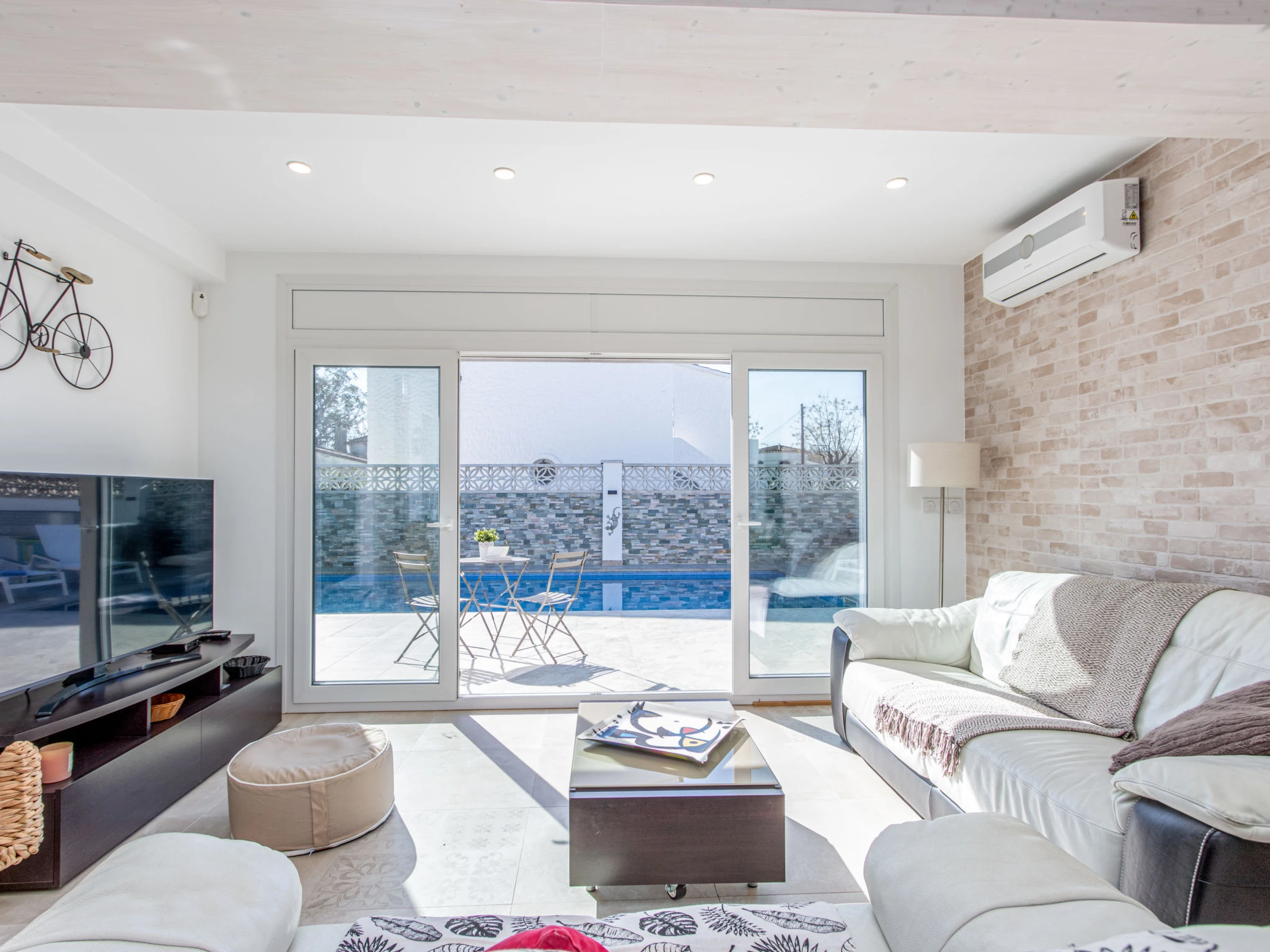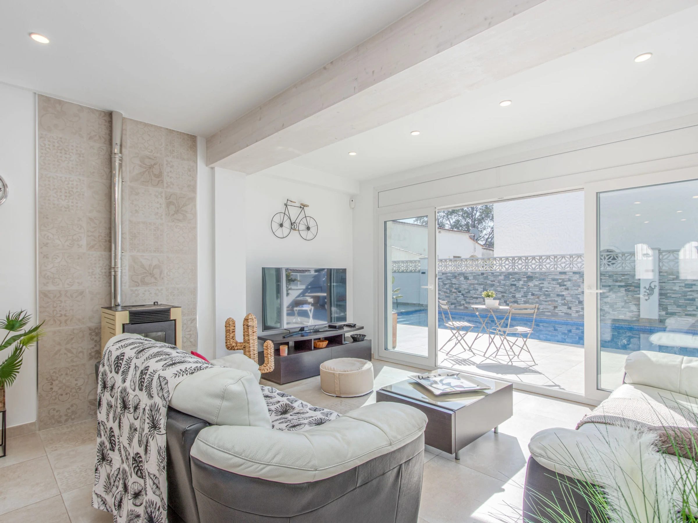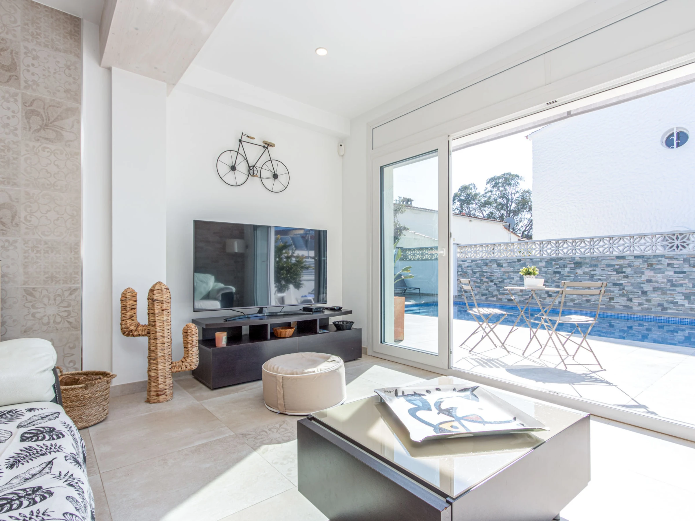 Modernes, gemütliches, komfortables Haus "Filisa", renoviert im Jahre 2021. Im Ortsteil Montgri, 800 m vom Zentrum von Empuriabrava, ruhige, sonnige Lage im Villenviertel, verkehrsberuhigte Zone, 1 km vom Meer, 1 km vom Strand, 220 m vom Fluss, in einer Sackgasse. Zur Alleinbenutzung: Grundstück (eingezäunt), schöner, gepflegter Garten mit Pflanzen, Schwimmbad eckig (4 x 10 m, 100 - 200 cm tief, saisonale Verfügbarkeit: [hidden] - [hidden] mit Innentreppe. Aussendusche, Pergola, Terrasse, Gartenmöbel. Im Hause: Waschmaschine, Wäschetrockner. Parkplatz auf dem Grundstück. Einkaufsgeschäft 300 m, Lebensmittelgeschäft, Supermarkt 1 km, Einkaufszentrum 800 m, Restaurant, Bar, Bäckerei, Café 300 m, Bushaltestelle, Sandstrand "Empuriabrava" 1.2 km. Sporthafen 3 km, Golfplatz (18 Loch) 5 km, Surfschule 1.5 km, Segelschule 1.5 km, Tennis 2 km, Minigolf 800 m, Wanderwege ab Haus 50 m, Radweg. Nahe gelegene Sehenswürdigkeiten: Túnel del viento y skydive Empuriabrava 2 km, Parque Acuático Roses 6 km, Casino y festival de Peralada 12 km, Museo Dalí Figueres 15 km, Ruïnes de Empuries 21 km, Monasterio de Sant Pere de Rodes 23 km. Wandergebiete: Cadaqués / Cap de Creus 20 km. Der Besitzer akzeptiert keine Gruppen. Die Schlüsselübergabe findet bei der Agentur in Empuriabrava statt.