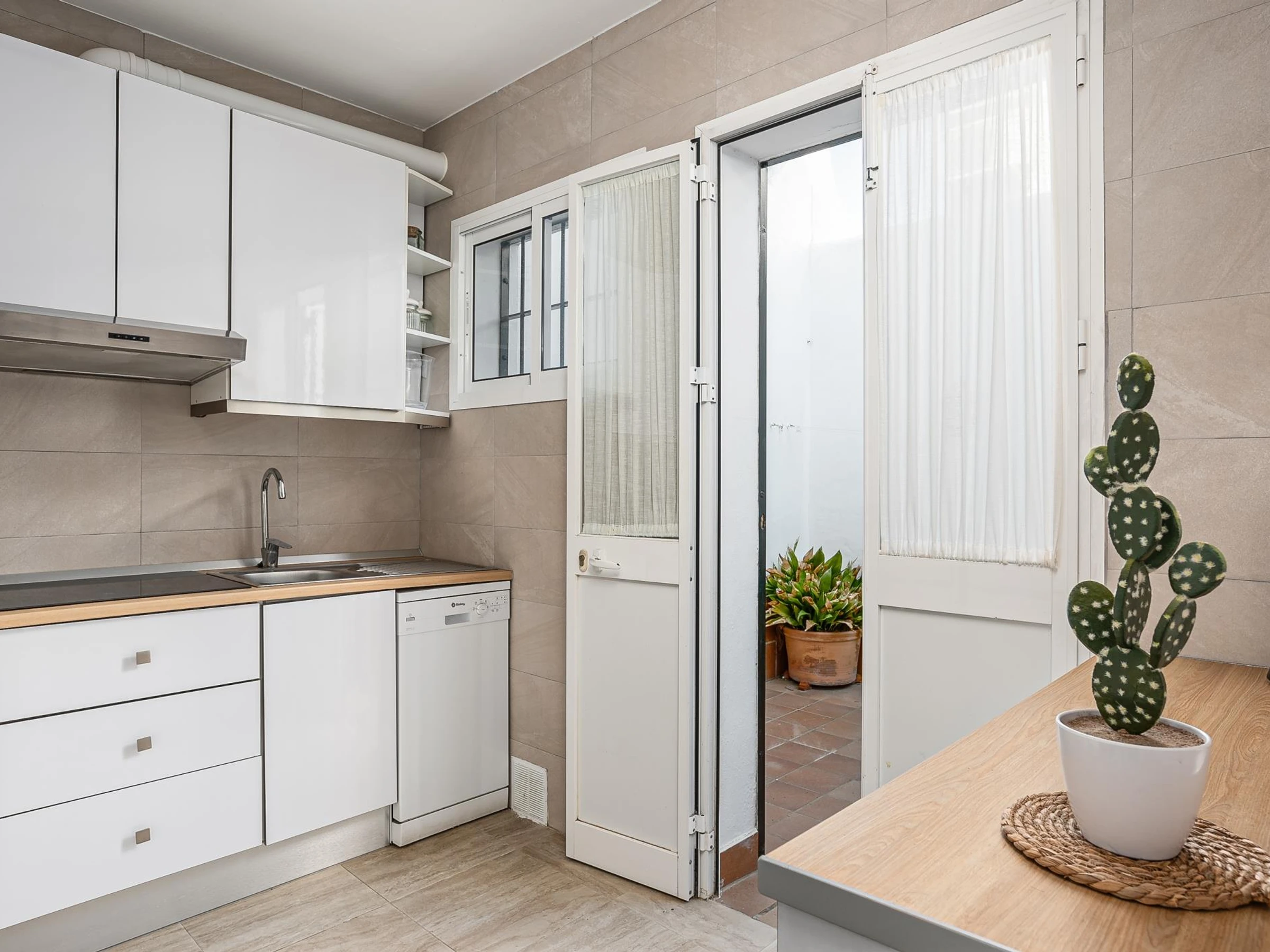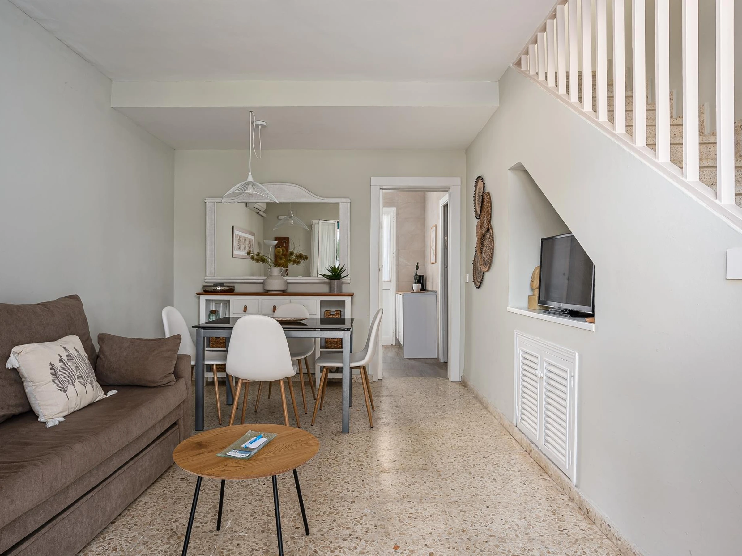 Dieses Reihenhaus zur Miete bietet eine ideale Aufteilung, die Komfort und Funktionalität garantiert. Das Wohn-Esszimmer führt direkt auf eine geräumige, möblierte Veranda, die dank der Nähe zum Meer der perfekte Ort für Mahlzeiten, Abendessen oder einen Drink ist. Die separate, voll ausgestattete Küche verfügt über einen Geschirrspüler und verbindet sich mit einem großen Innenhof.