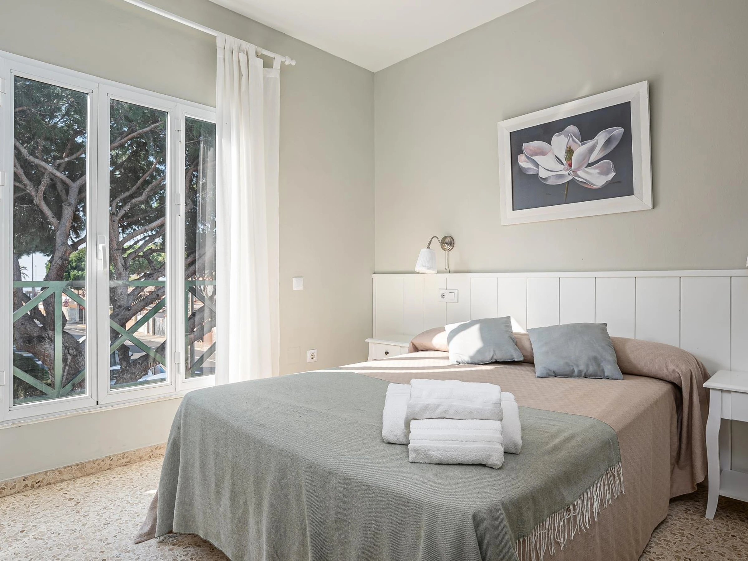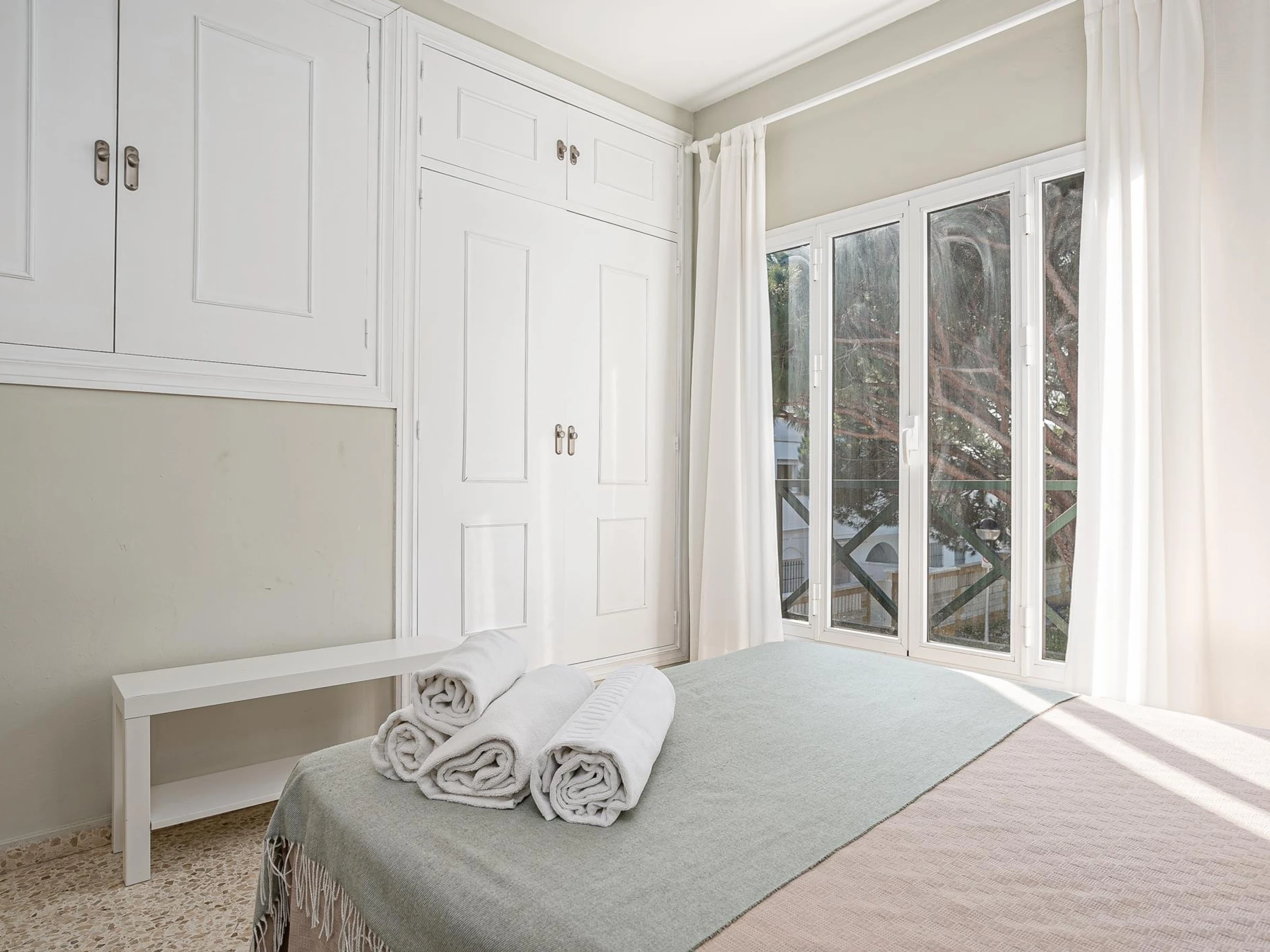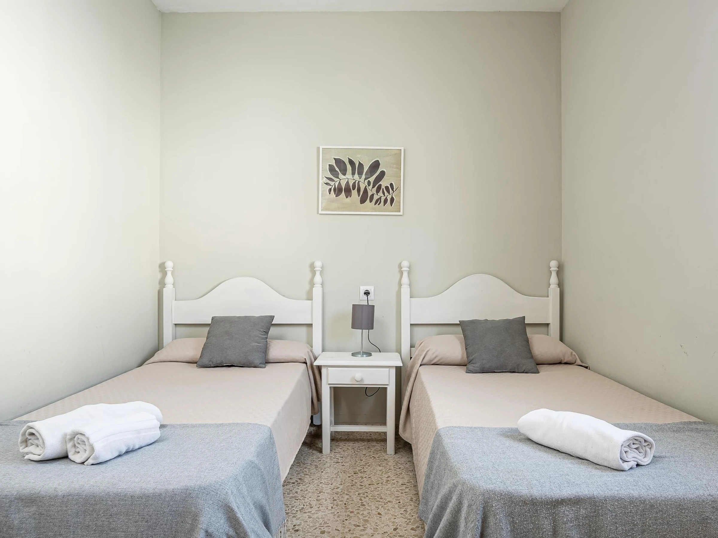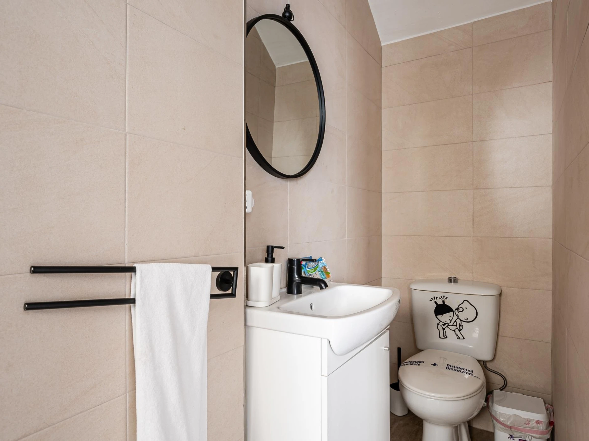Im ersten Stock befinden sich zwei Schlafzimmer: das Hauptschlafzimmer mit einem 150 cm breiten Doppelbett, Klimaanlage und eigener Terrasse; und das zweite Schlafzimmer mit zwei Einzelbetten und einem großen Kleiderschrank. Zudem gibt es auf dieser Etage ein Badezimmer mit Dusche. Im Erdgeschoss gibt es eine Gästetoilette mit Waschbecken, was zusätzlichen Komfort für die Gäste bietet. Es ist der perfekte Ort, um einen entspannten Aufenthalt in der Nähe des Meeres zu genießen.