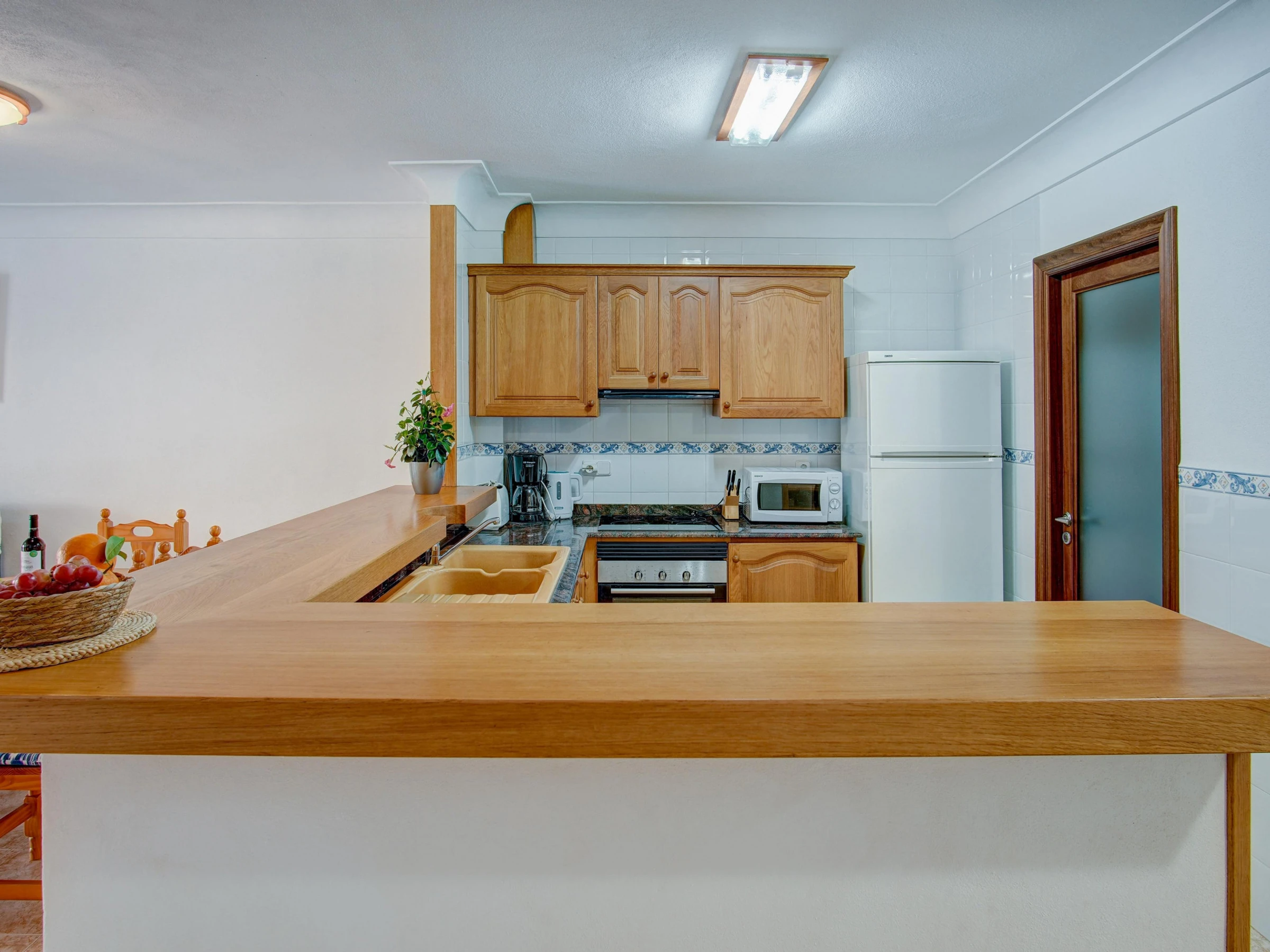 Dieses küche, ist ausgestattet in kühlschrank, mikrowelle, backofen, gefrierschrank, spülmaschine, kaffeemaschine und toaster.