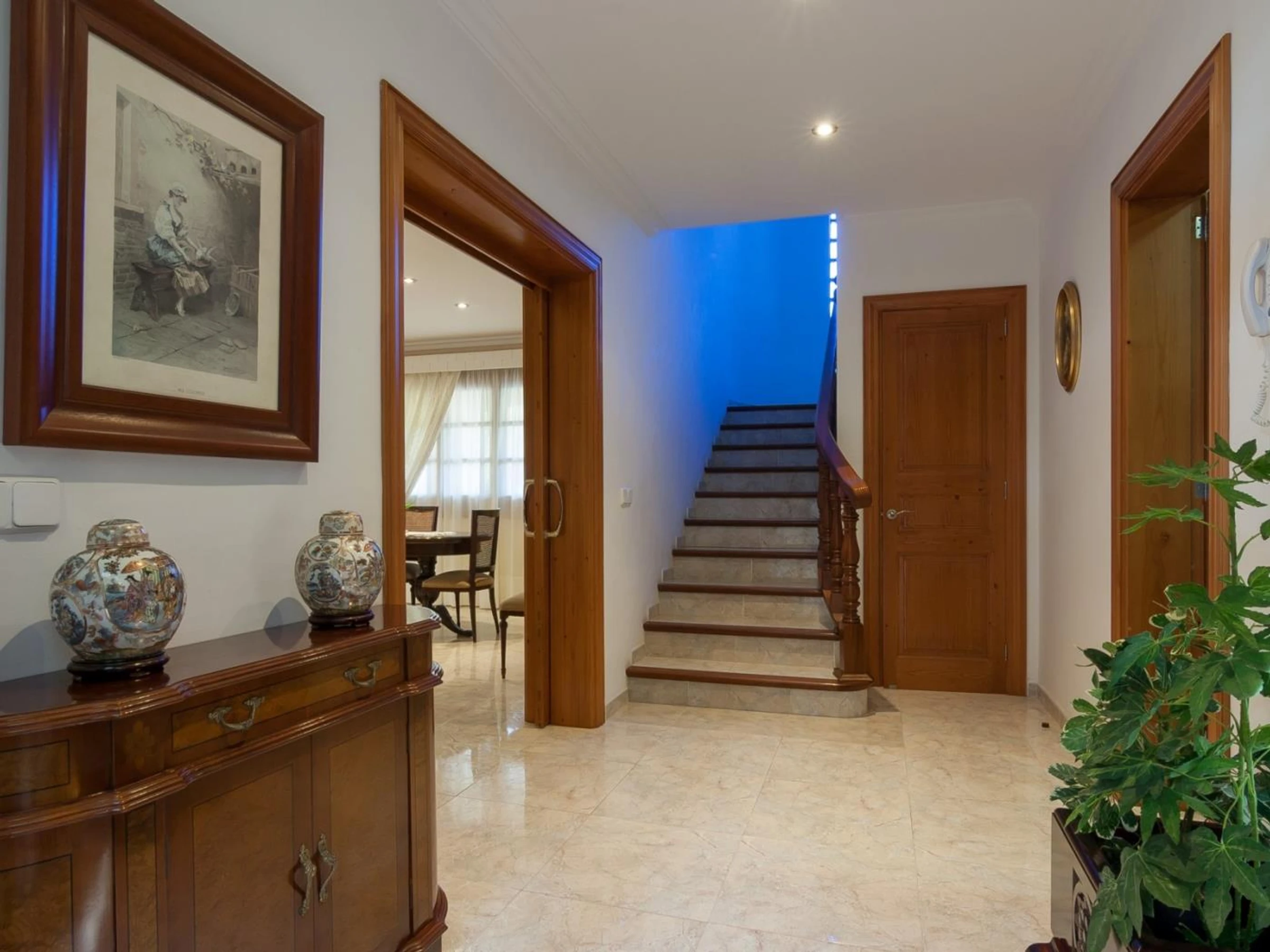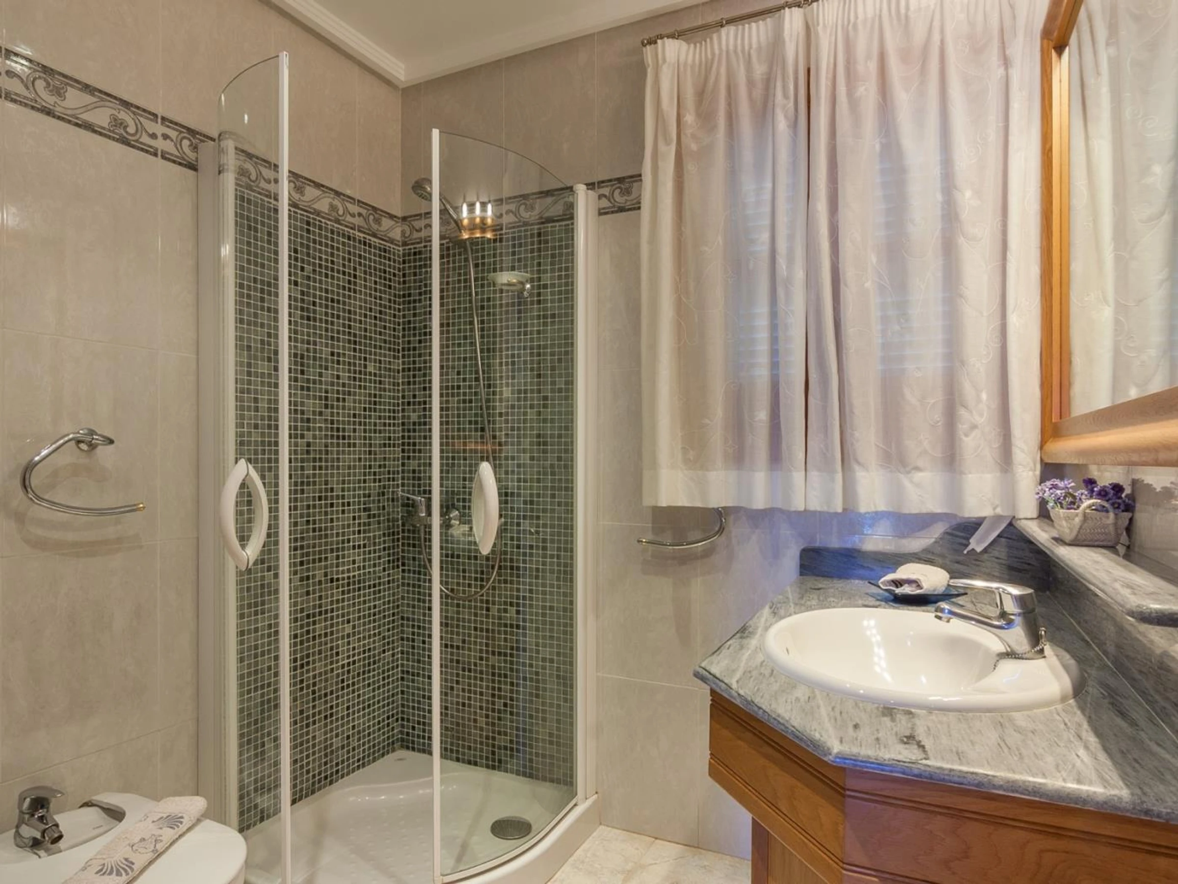 Das Haus ist in zwei Etagen aufgeteilt. Im Erdgeschoss finden wir das große Wohn-Esszimmer, die voll ausgestattete Küche und eine Toilette. Auf der oberen Etage befinden sich drei Schlafzimmer, eines davon mit eigenem Badezimmer und ein komplettes Badezimmer. Eines der Zimmer hat einen Balkon mit Blick auf den Pool, die anderen beiden Schlafzimmer haben einen weiteren Balkon mit schönem Blick nach draußen.