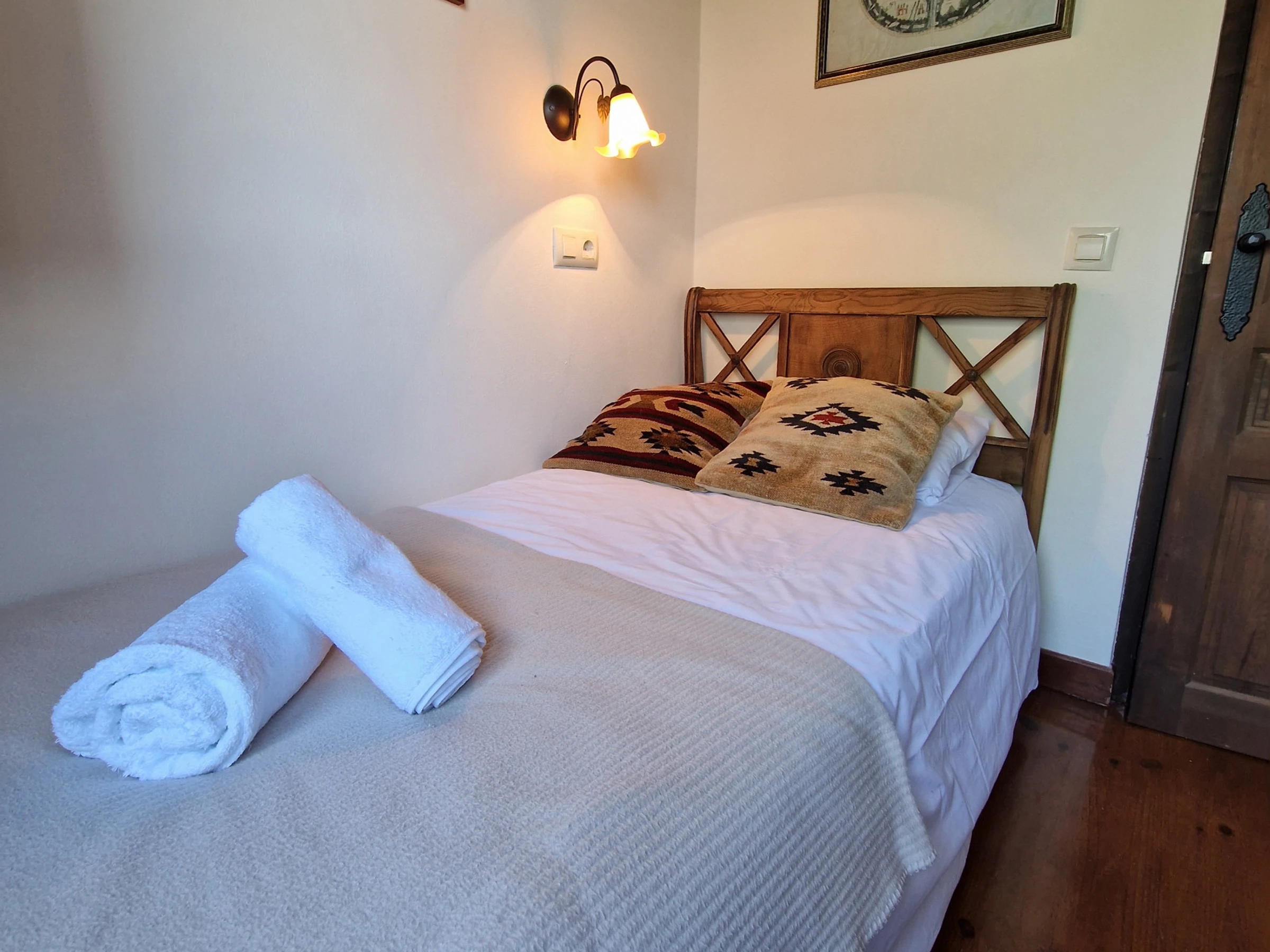 Auf der ersten Etage befinden sich ein Schlafzimmer mit einem Doppelbett, ein weiteres mit einem Einzelbett und ein Gemeinschaftsbad.