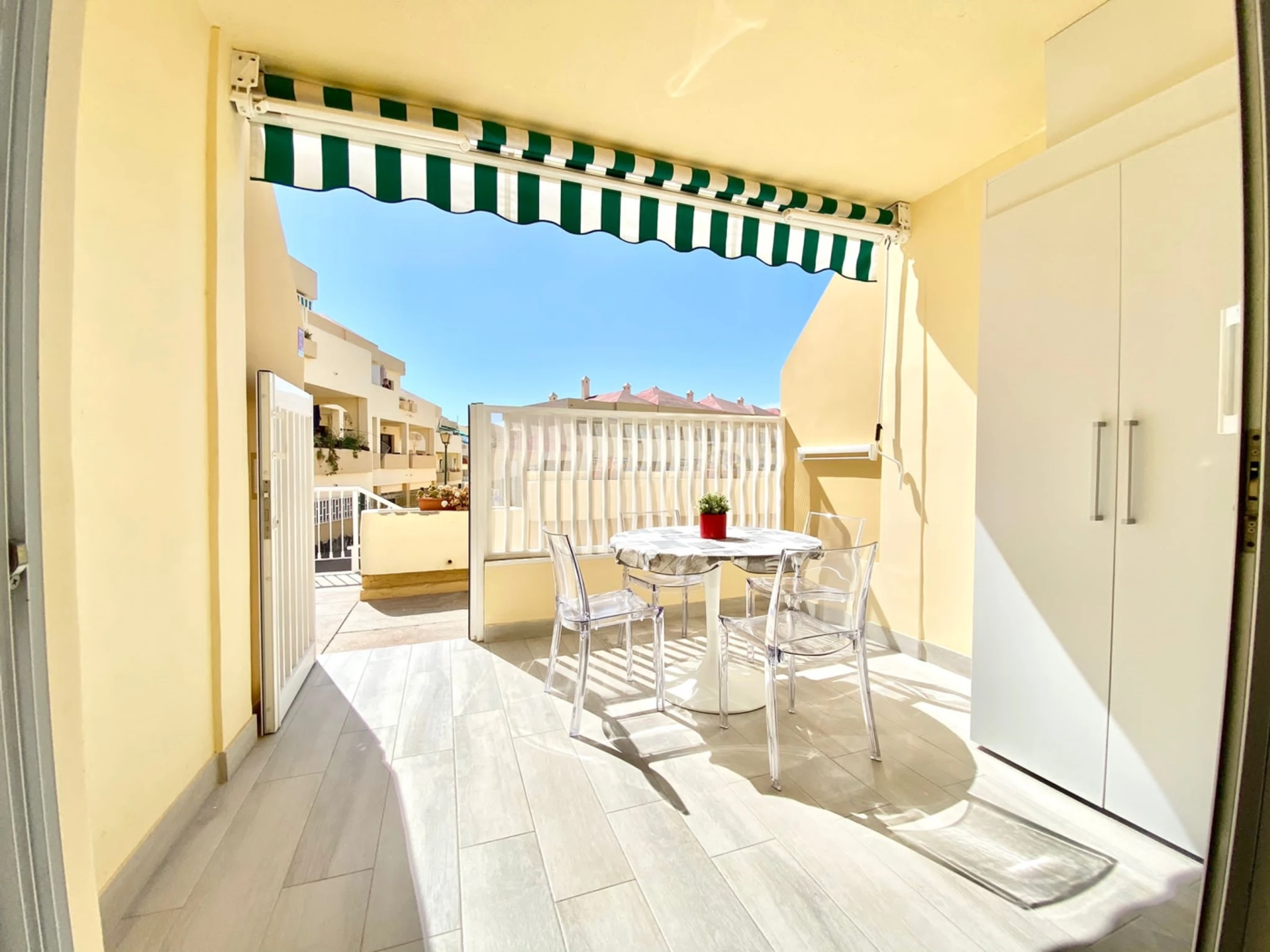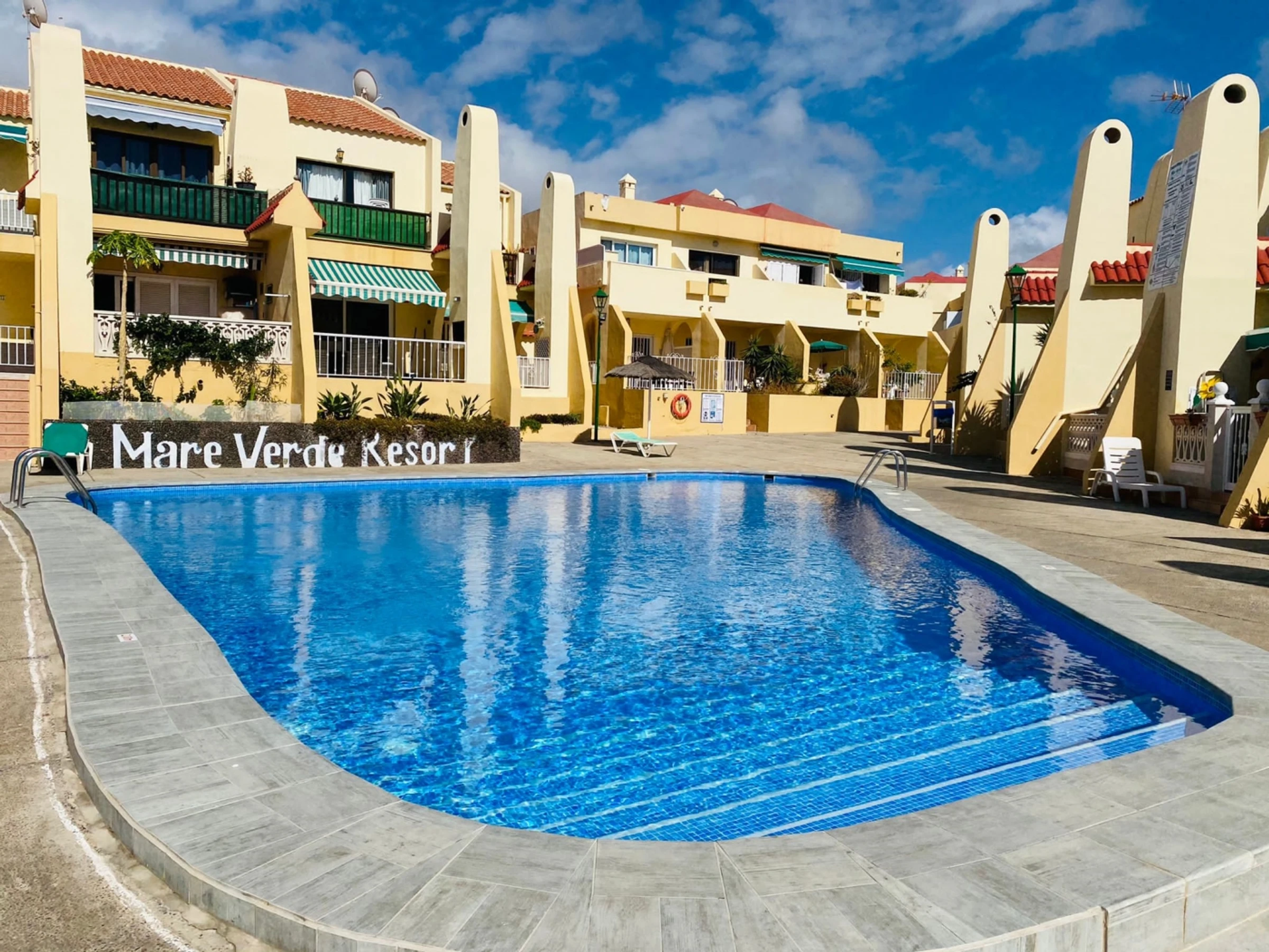 Mareverde bietet mehrere Gemeinschaftspools und eine entspannte Atmosphäre. Die Lage ist hervorragend: Supermärkte, Cafés, Restaurants und Bars befinden sich in unmittelbarer Nähe, und auch die Strände von Torviscas und Fañabé sind schnell zu erreichen. Beliebte Attraktionen wie Aqualand, Siam Park und die Einkaufsstraßen von Costa Adeje sind ebenfalls in der Nähe. Ein praktisches und gut gelegenes Apartment – perfekt für Paare oder Familien, die einen komfortablen Ausgangspunkt für ihren Urlaub suchen.