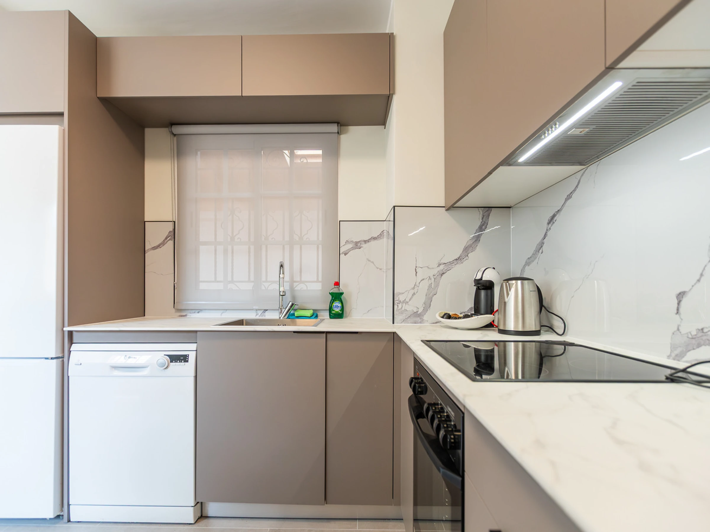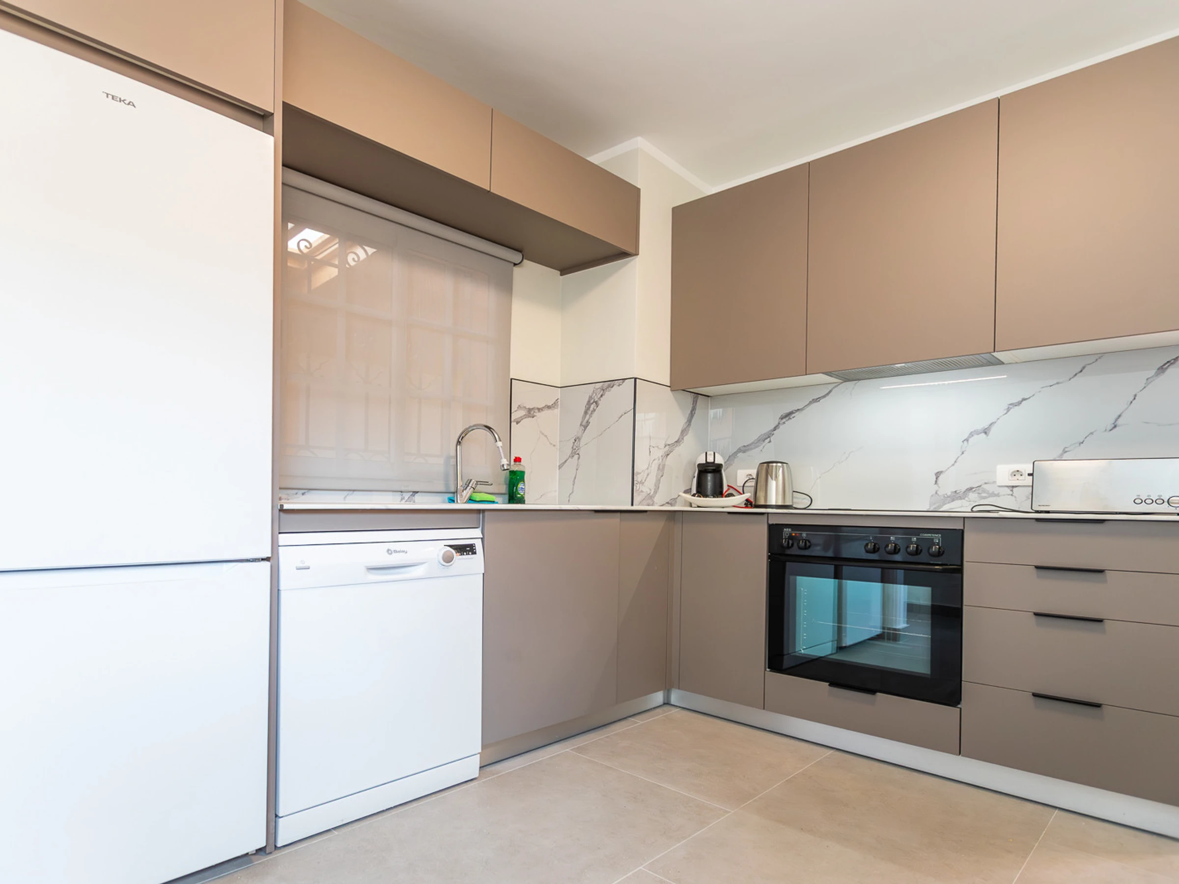 Dieses separate küche, mit ceranfeld, ist ausgestattet in kühlschrank, mikrowelle, backofen, spülmaschine, geschirr/besteck, kochutensilien, kaffeemaschine, toaster und wasserkocher.