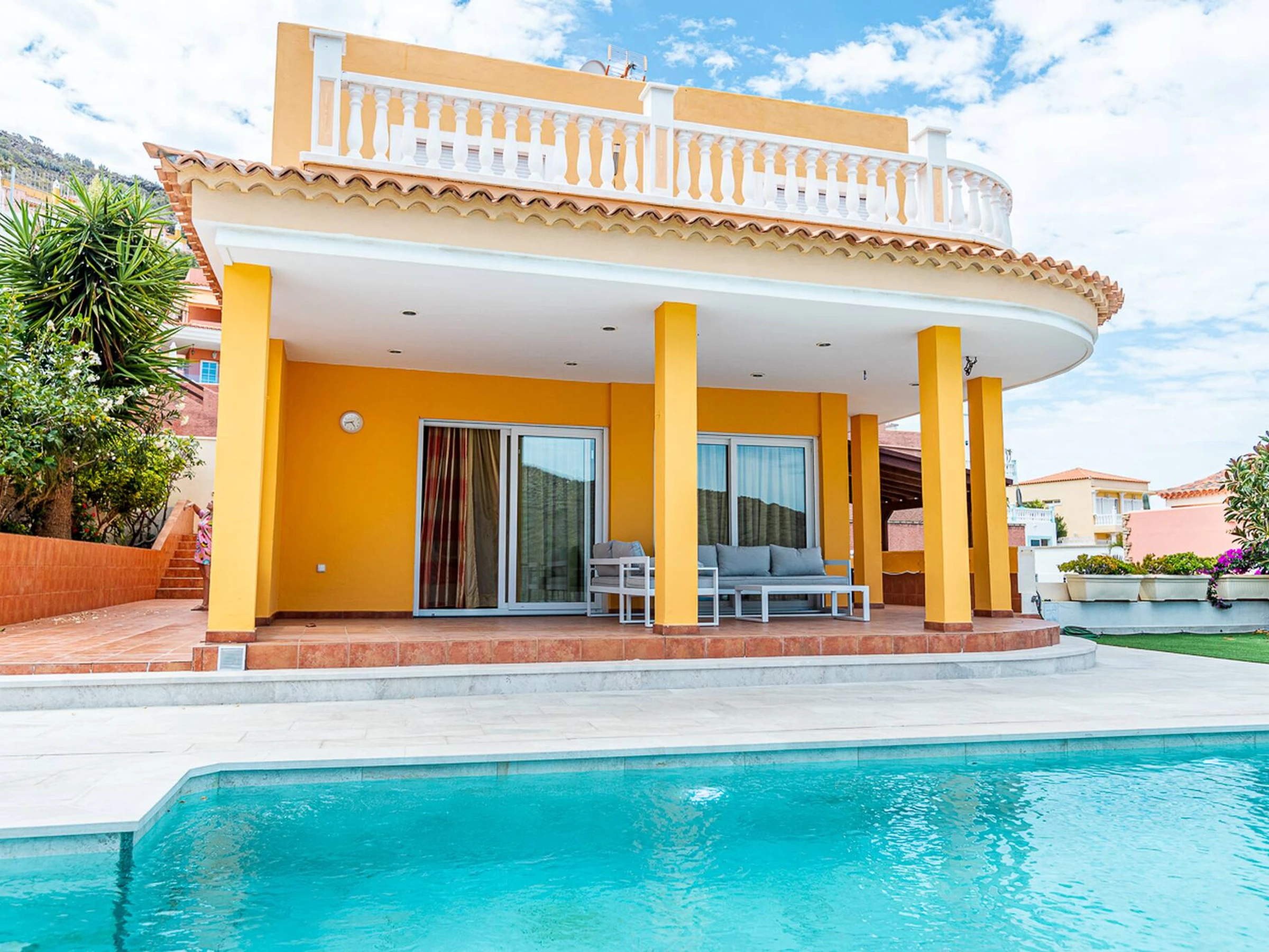Die Unterkunft verfügt über garten, gartenmöbel, 15 m² terrasse, waschmaschine, grill, bügeleisen/-brett, internet (WLAN), haartrockner, alarm, klimaanlage, swimming-pool privater pool, klimatisierter pool privater pool, parkplatz im freien, 1 Fernseher.