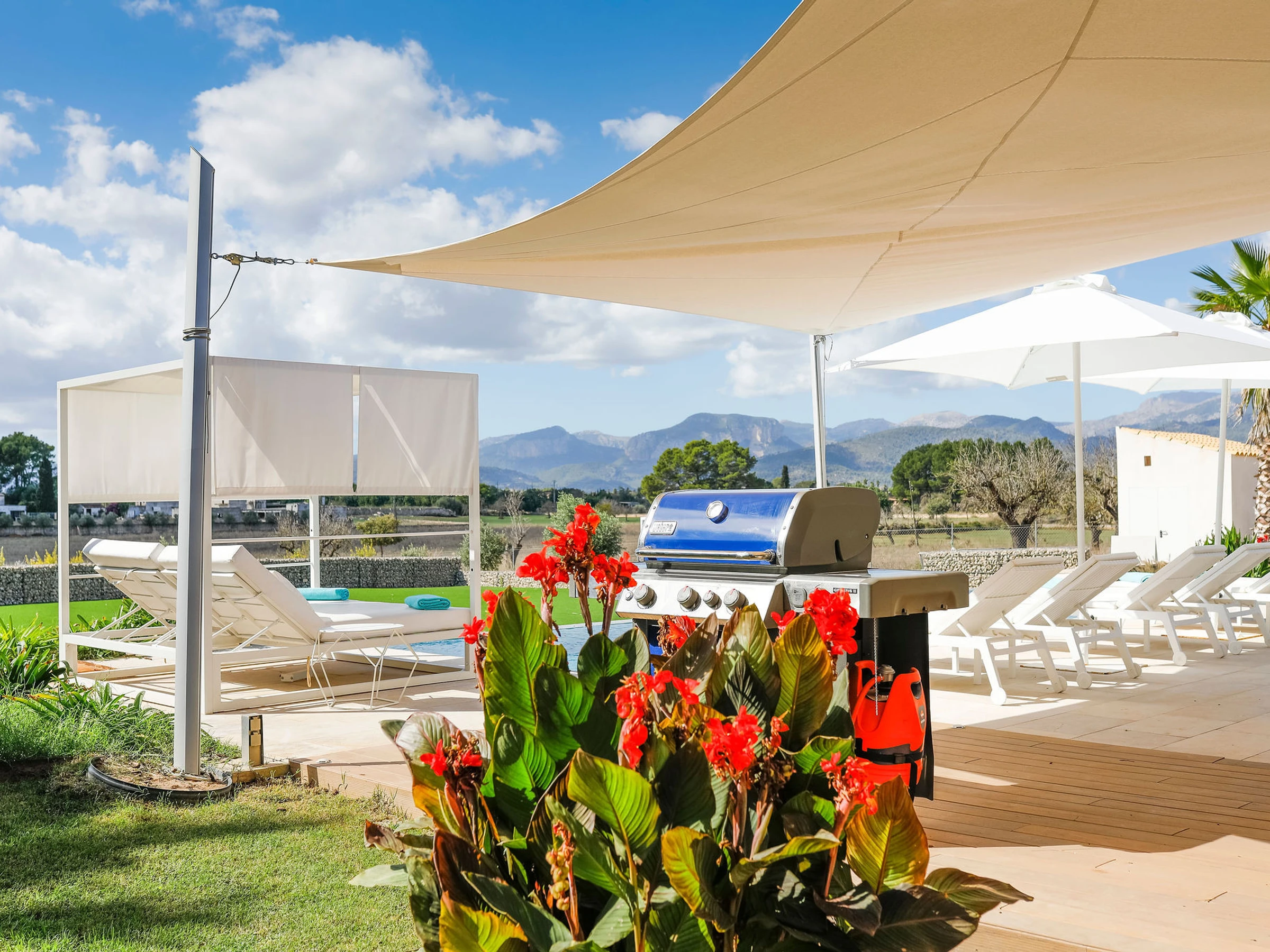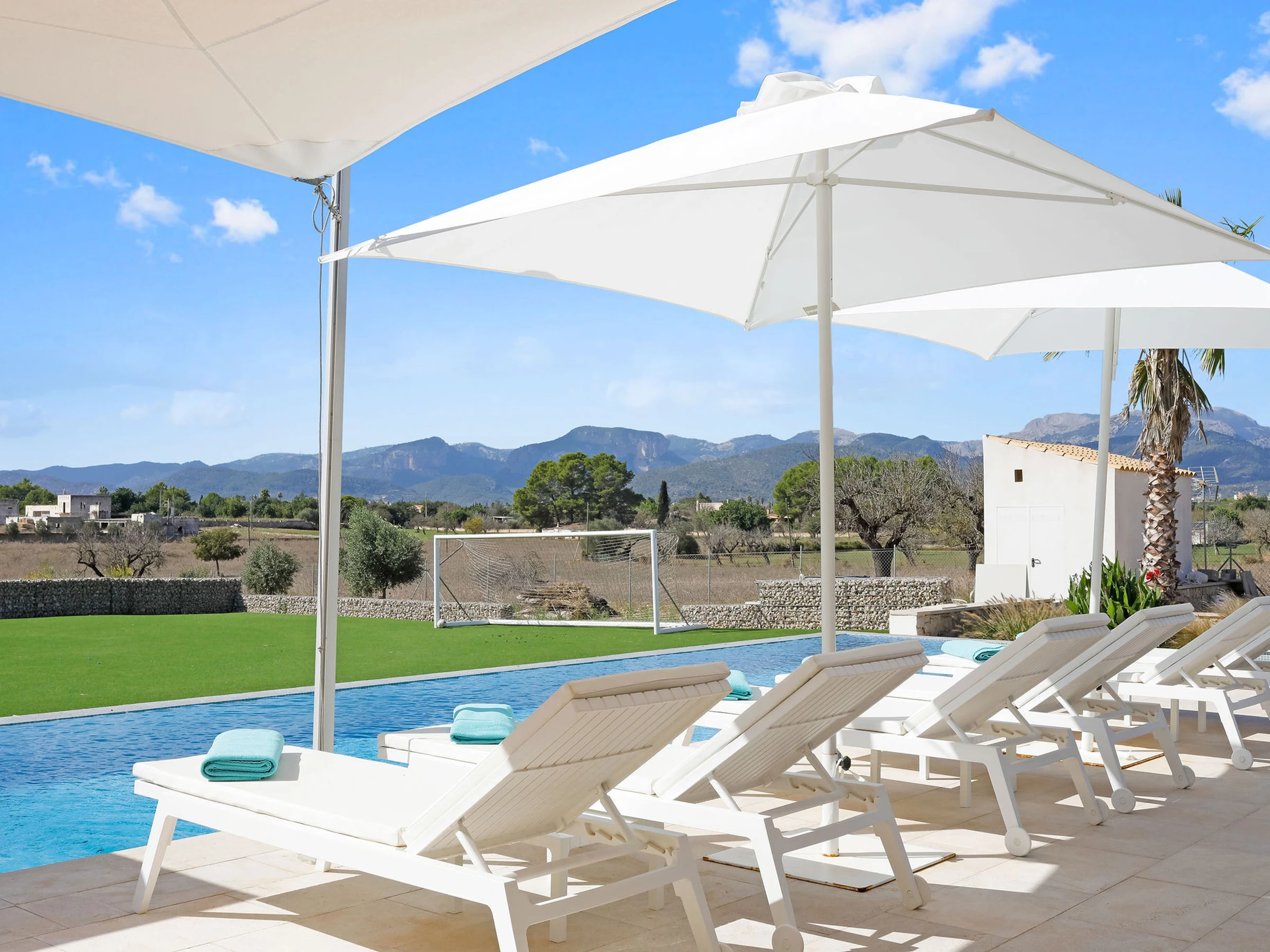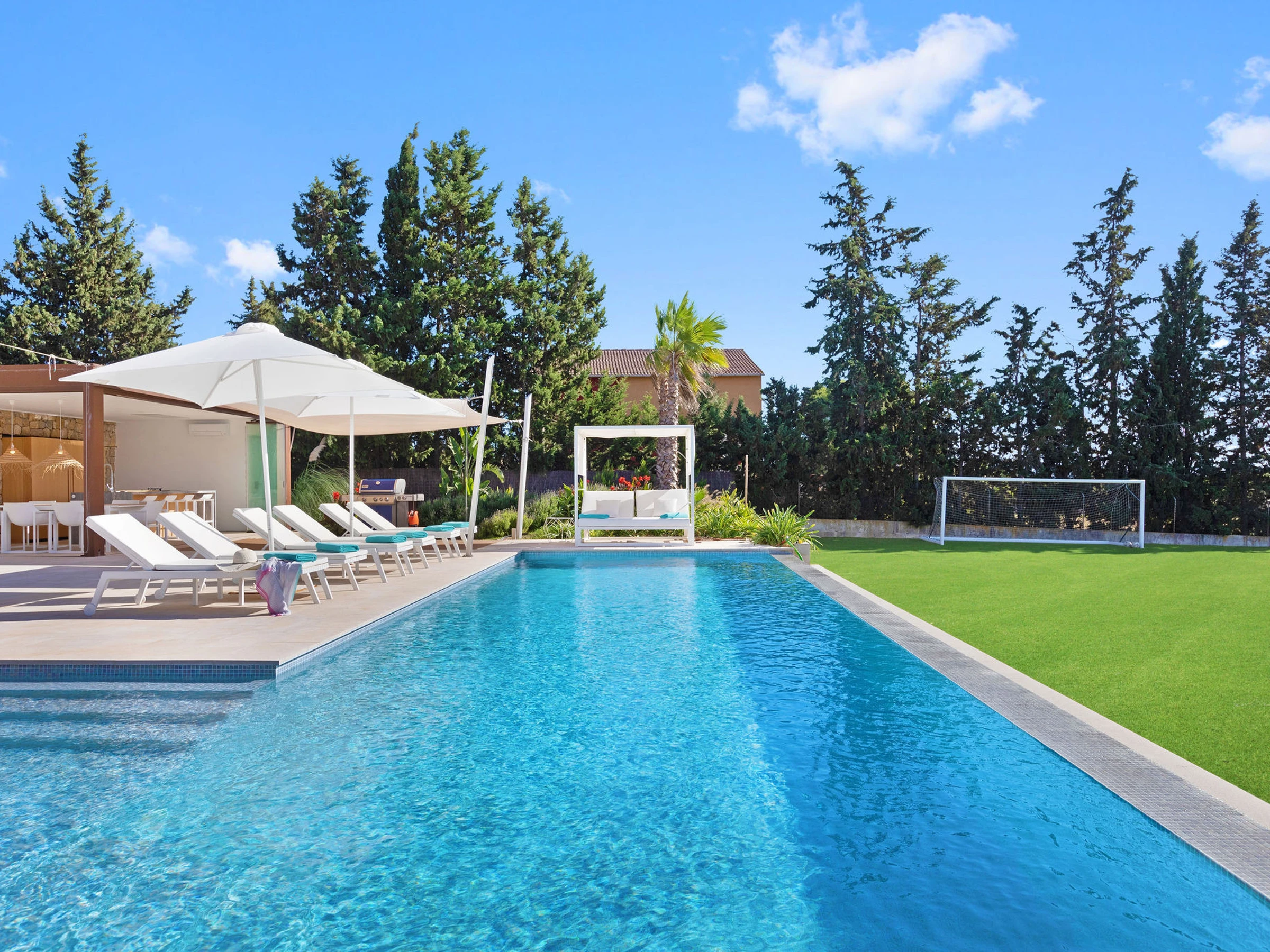 Die Unterkunft verfügt über garten, gartenmöbel, umzäuntes grundstück, terrasse, waschmaschine, trockner, grill, bügeleisen/-brett, safe, internet (WLAN), haartrockner, balkon, kinderbereich, fitnessraum, alarm, zentralheizung, klimaanlage, swimming-pool privater pool, klimatisierter pool privater pool, parkplatz im freien in auf dem grundstück, 5 Fernsehgeräte, sat-tv (Sprachen: Spanisch, Englisch, Deutsch).