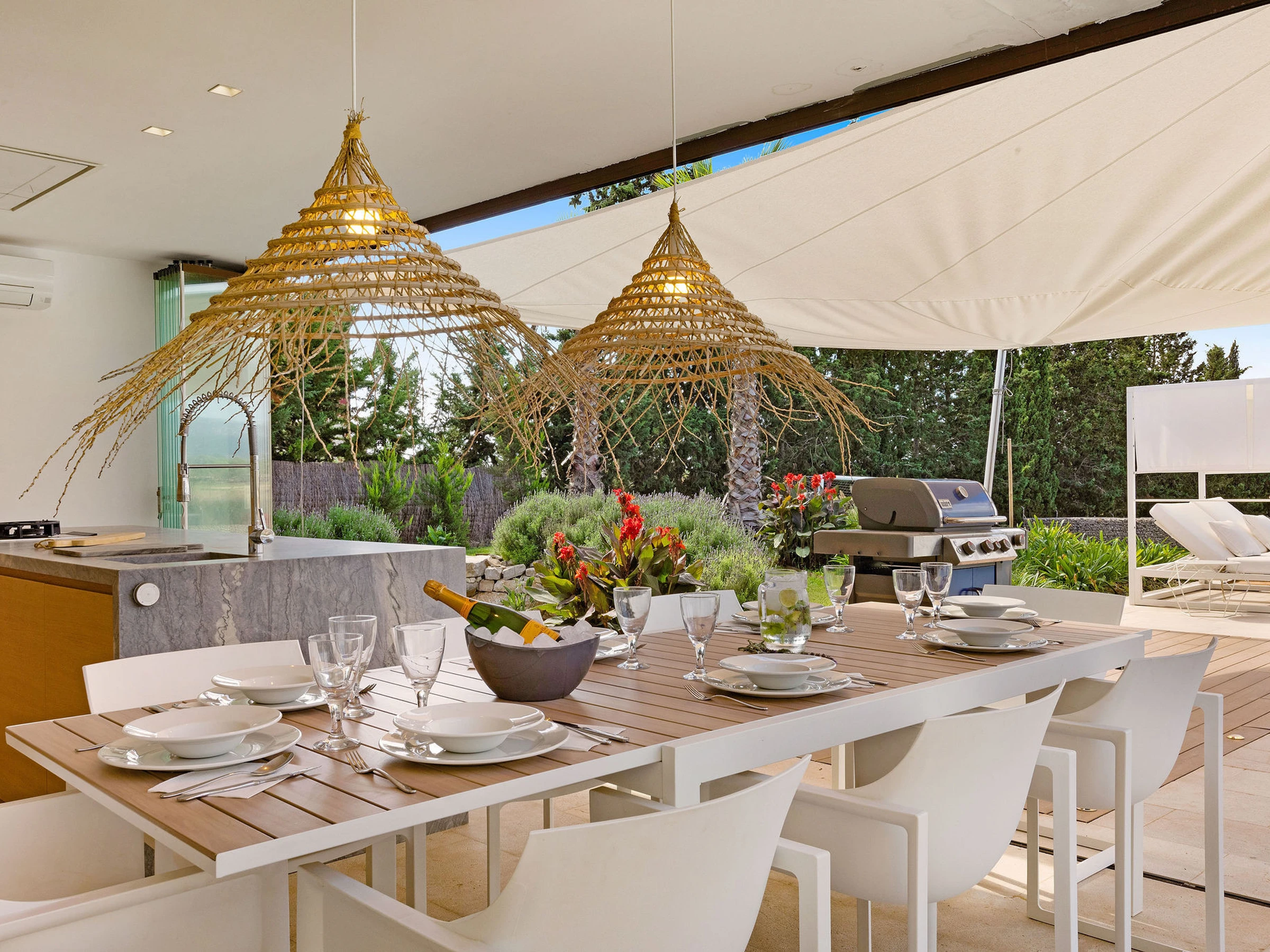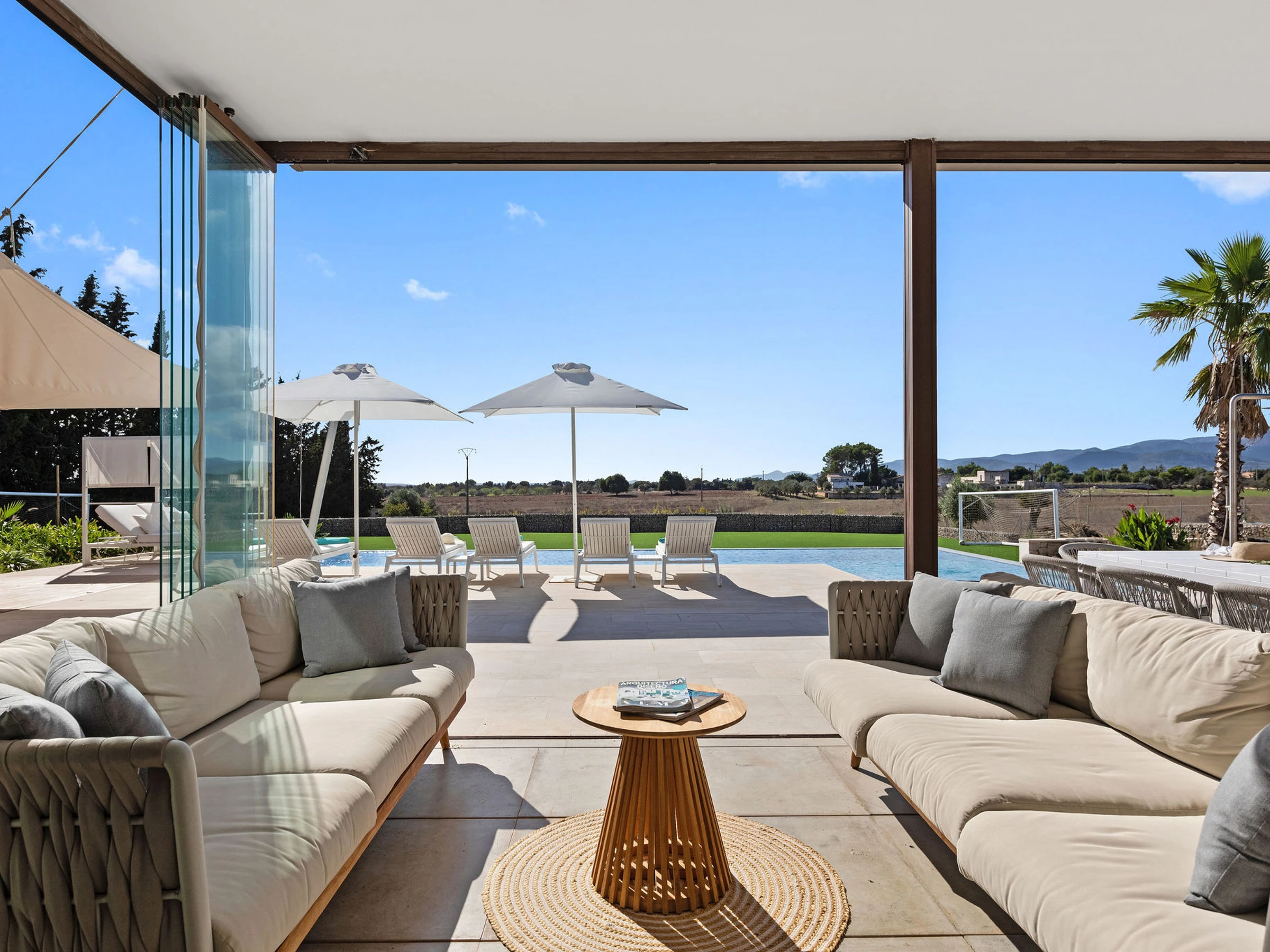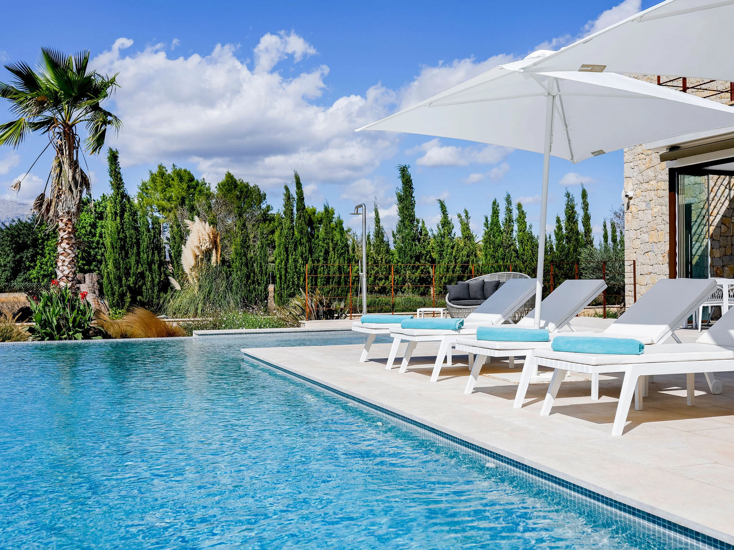 Die Unterkunft verfügt über garten, gartenmöbel, umzäuntes grundstück, terrasse, waschmaschine, trockner, grill, bügeleisen/-brett, safe, internet (WLAN), haartrockner, balkon, kinderbereich, fitnessraum, alarm, zentralheizung, klimaanlage, swimming-pool privater pool, klimatisierter pool privater pool, parkplatz im freien in auf dem grundstück, 5 Fernsehgeräte, sat-tv (Sprachen: Spanisch, Englisch, Deutsch).