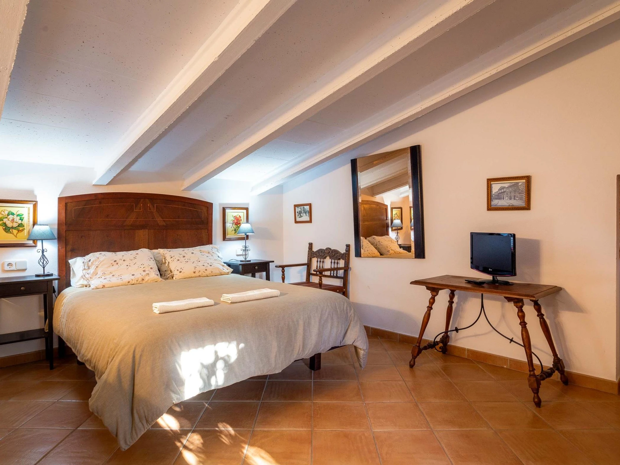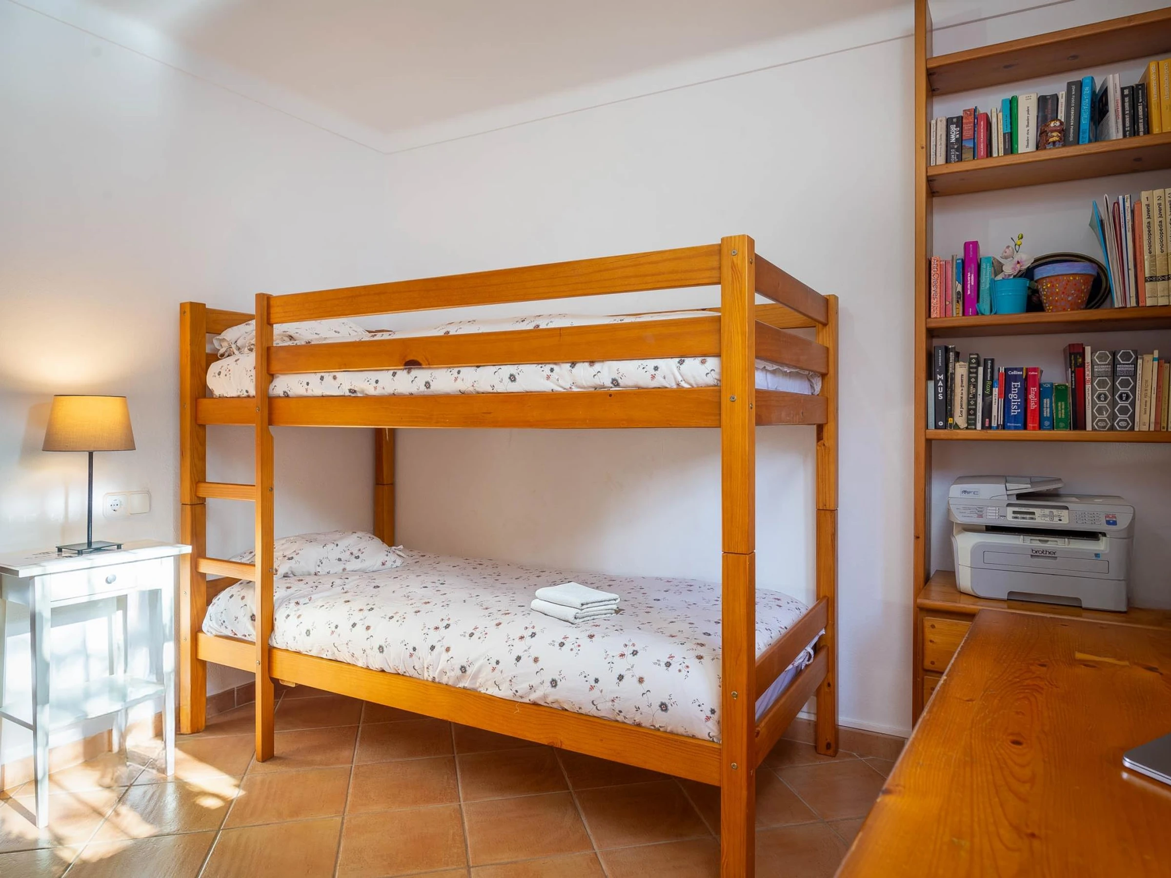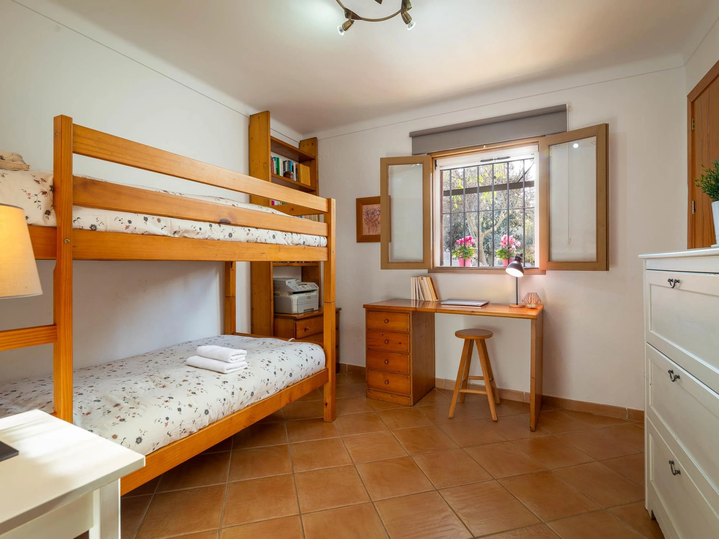 Das Haus befindet sich im Erdgeschoss, wo sich drei Schlafzimmer, die Küche und das Wohnzimmer befinden. Von dort haben wir Zugang zum Dachboden, wo wir das letzte Zimmer haben.