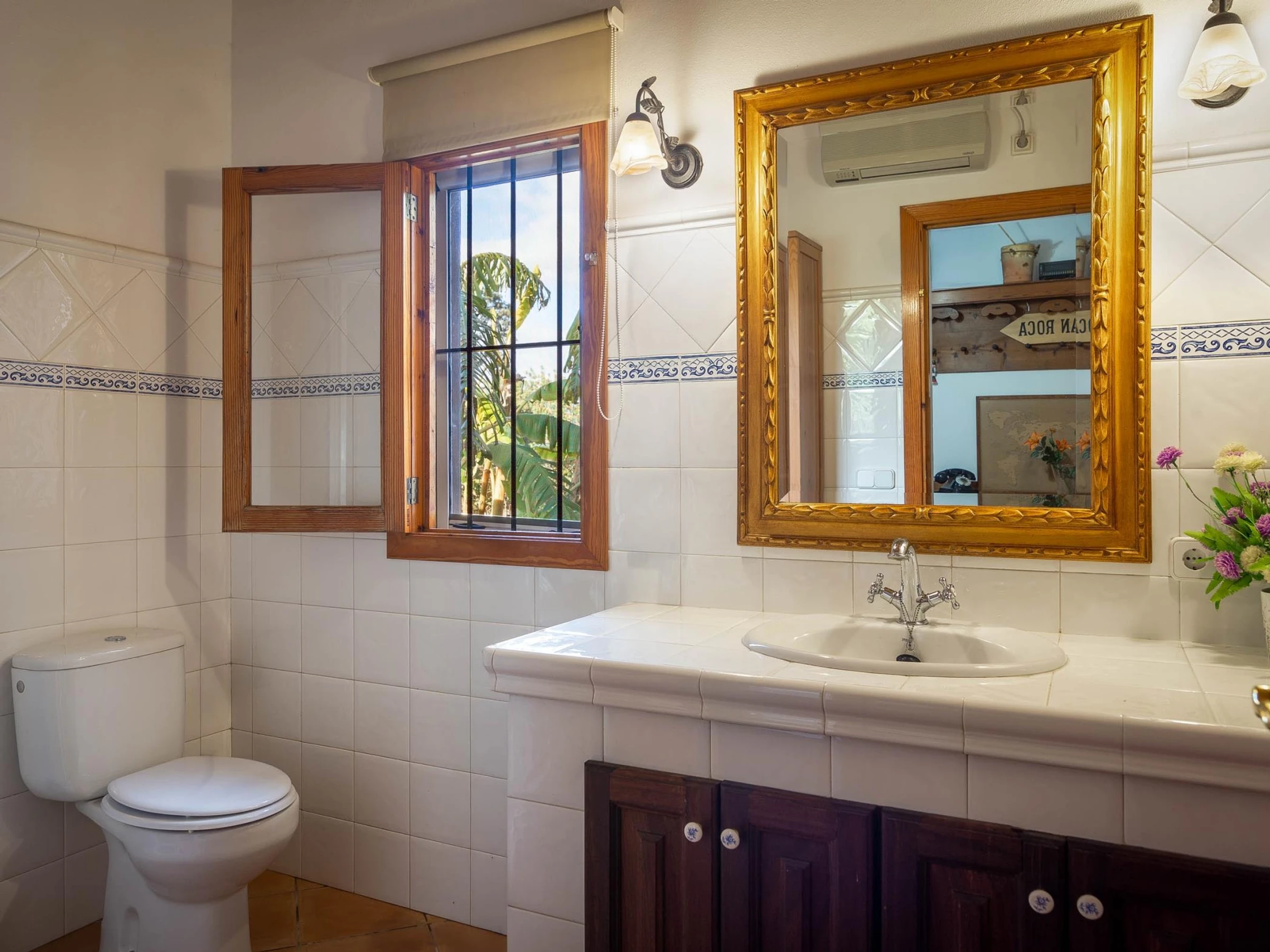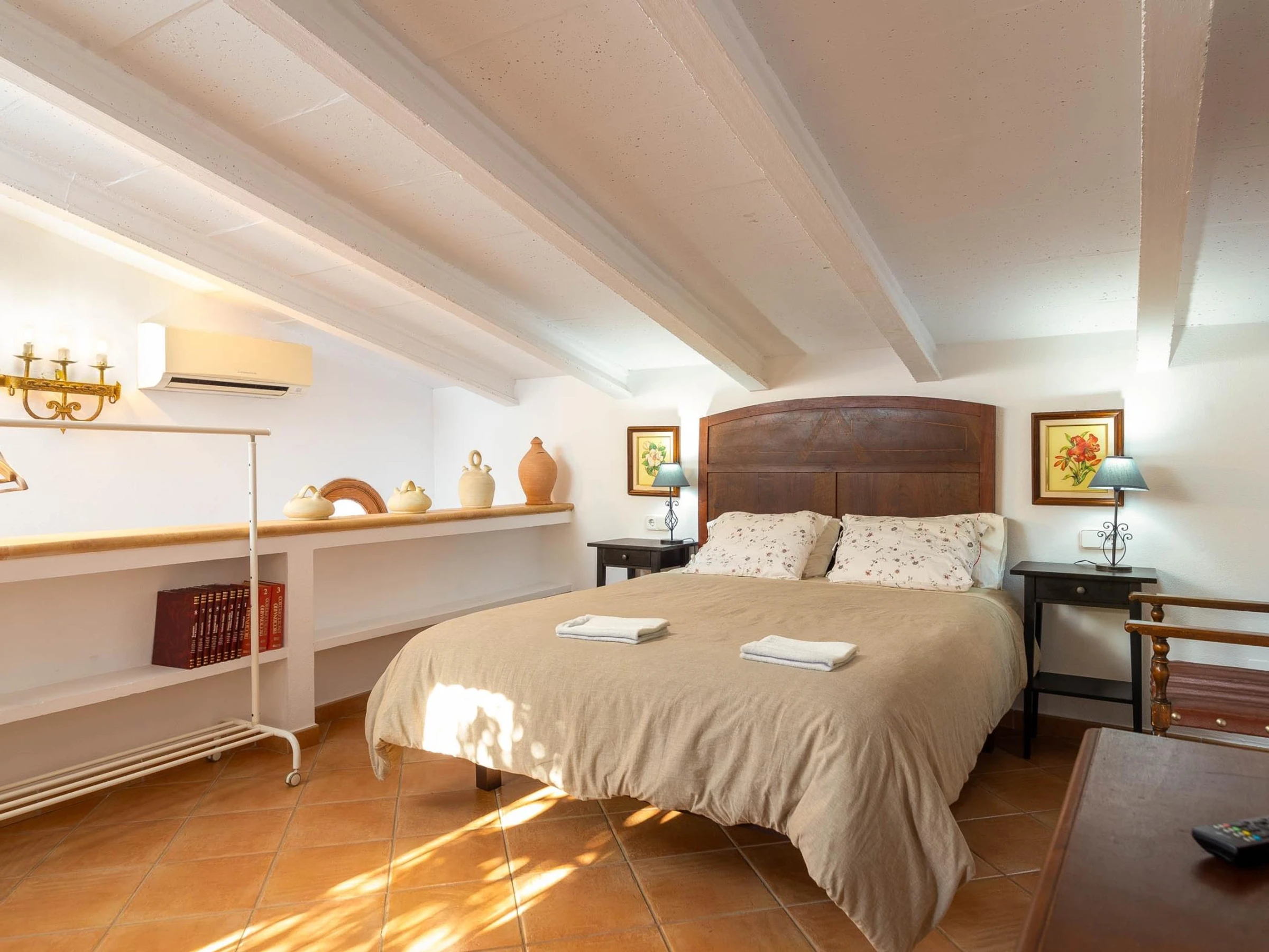 - Was die Klimaanlage betrifft, verfügt die Unterkunft in drei der Schlafzimmer und im Wohnzimmer im Obergeschoss über Warm-/Kaltklimaanlagen. Im anderen Raum steht Ihnen ein Ventilator zur Verfügung.