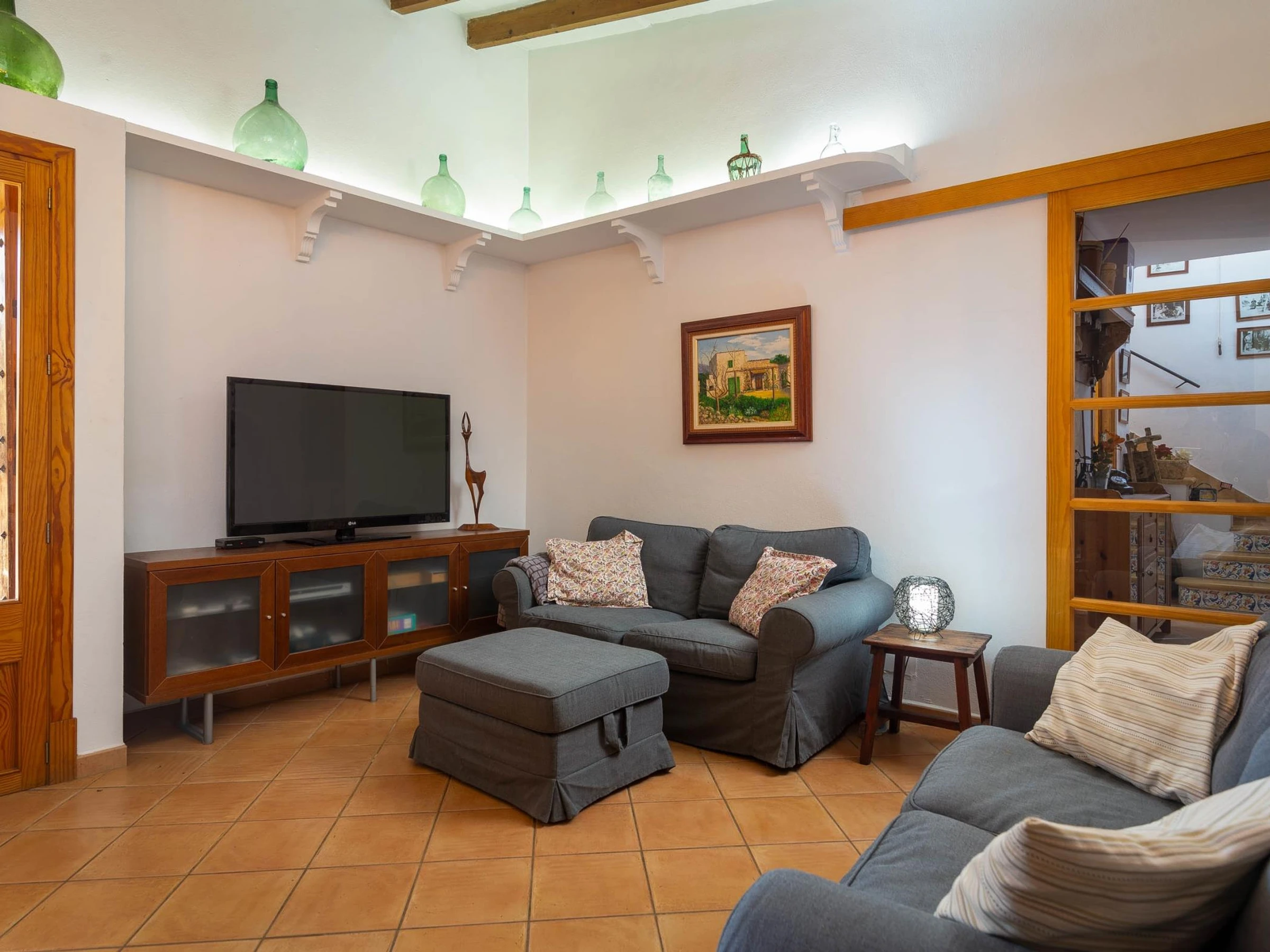 Das Haus selbst liegt in einer ruhigen Gegend, ideal zum Wandern, Radfahren oder Laufen auf den verschiedenen nahe gelegenen Wegen. Das Haus liegt nur 2 km von Costitx entfernt, einem kleinen Dorf, in dem es einige Restaurants, Cafés, Konditoreien, eine Bank und einen kleinen Supermarkt gibt. Einer der Reize von Costitx sind seine archäologischen Überreste; Tatsächlich ist sie die mallorquinische Stadt mit der höchsten Anzahl an Grundstücken pro Quadratmeter. Dort können Sie Attraktionen wie Son Corró, eine talayotische archäologische Stätte, genießen. Auch das astronomische Observatorium von Costitx, das erste auf Mallorca, ist ein Muss. Die nächstgrößere Stadt, Inca, ist eine 15-minütige Fahrt entfernt und verfügt über alle möglichen Annehmlichkeiten. Das Haus ist außerdem nur 30 Autominuten von der Bucht von Alcúdia, 35 Autominuten von Palma und 45 Autominuten vom Gebirge Serra de Tramuntana entfernt, das zum Weltkulturerbe erklärt wurde. Kurz gesagt, die Lage der Farm ist ein toller Ausgangspunkt, um die Insel zu erkunden.
