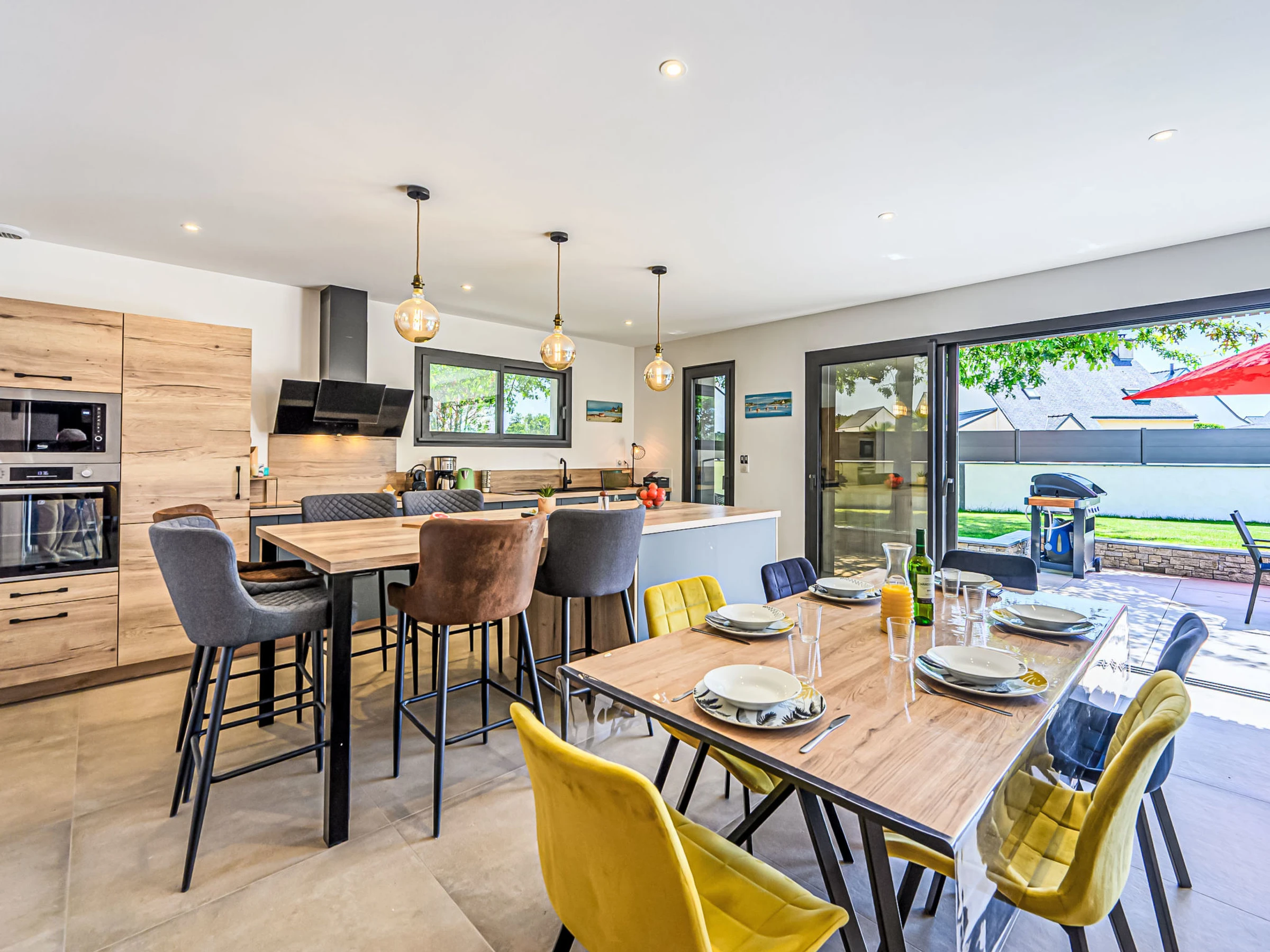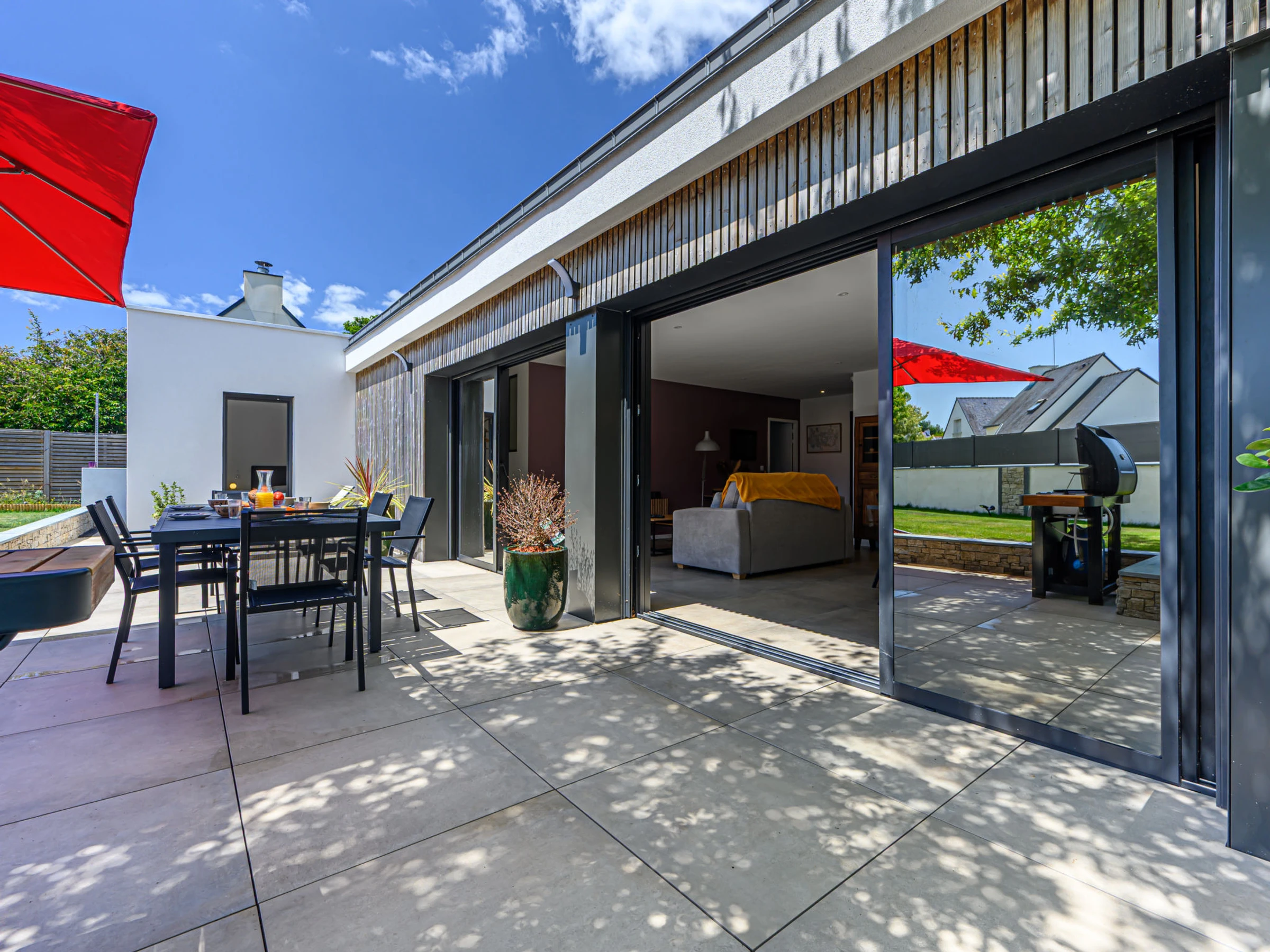 Crac'h 9 km von Carnac: Schönes Haus "Villa du Fort Espagnol", Baujahr 2024. Im Ortszentrum von Crac'h, 3 km vom Meer, 6 km vom Strand. Zur Alleinbenutzung: Sprudelbad, Parkplatz. Supermarkt 4 km, Restaurant 500 m, Bar 300 m, Bäckerei 500 m, Café 300 m, Bushaltestelle "Centre de Crac'h" 400 m, Sandstrand "Plage de Saint-Phillibert" 6 km, Freibad 10 km. Tennis 6 km. Nahe gelegene Sehenswürdigkeiten: Grande plage de Carnac 10 km, La Trinité sur Mer 6 km, Auray et le Port de St Goustan 10 km, Quiberon 28 km, Belle Ile en Mer, Les iles du Golfe du Morbihan.