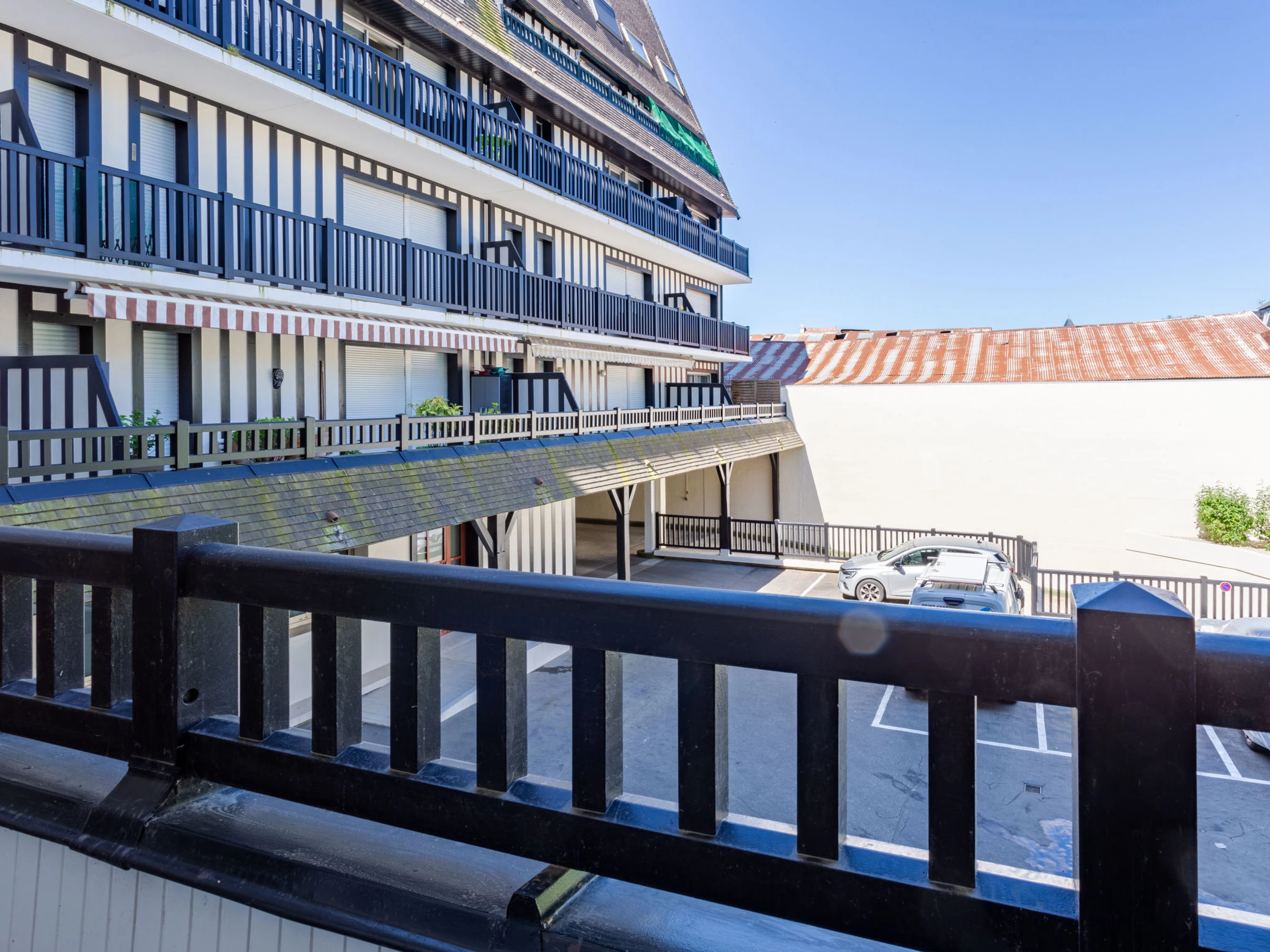 Deauville: Residenz "La Deauvillaise". Im Ortszentrum, 1.2 km vom Meer, 1.2 km vom Strand. In der Anlage: Fahrstuhl. (1 Stufe). Einkaufsgeschäft, Lebensmittelgeschäft 300 m, Supermarkt 600 m, Restaurant 50 m, Bushaltestelle "Gare routière" 100 m, Bahnstation "Deauville-Trouville" 100 m, Hallenbad 1.4 km, Thermalbad "Deauville" 1.4 km. Golfplatz (18 Loch) 3.8 km, Tennis 1.2 km, Reitstall 1.2 km. Nahe gelegene Sehenswürdigkeiten: Hippodrome Deauville-La Touques 1 km, Centre International Deauville - CID 1.2 km, Mémorial de Caen 54 km, Plage du débarquement d'Arromanches 85 km. Die Schlüsselübergabe findet bei der Agentur in Deauville statt.