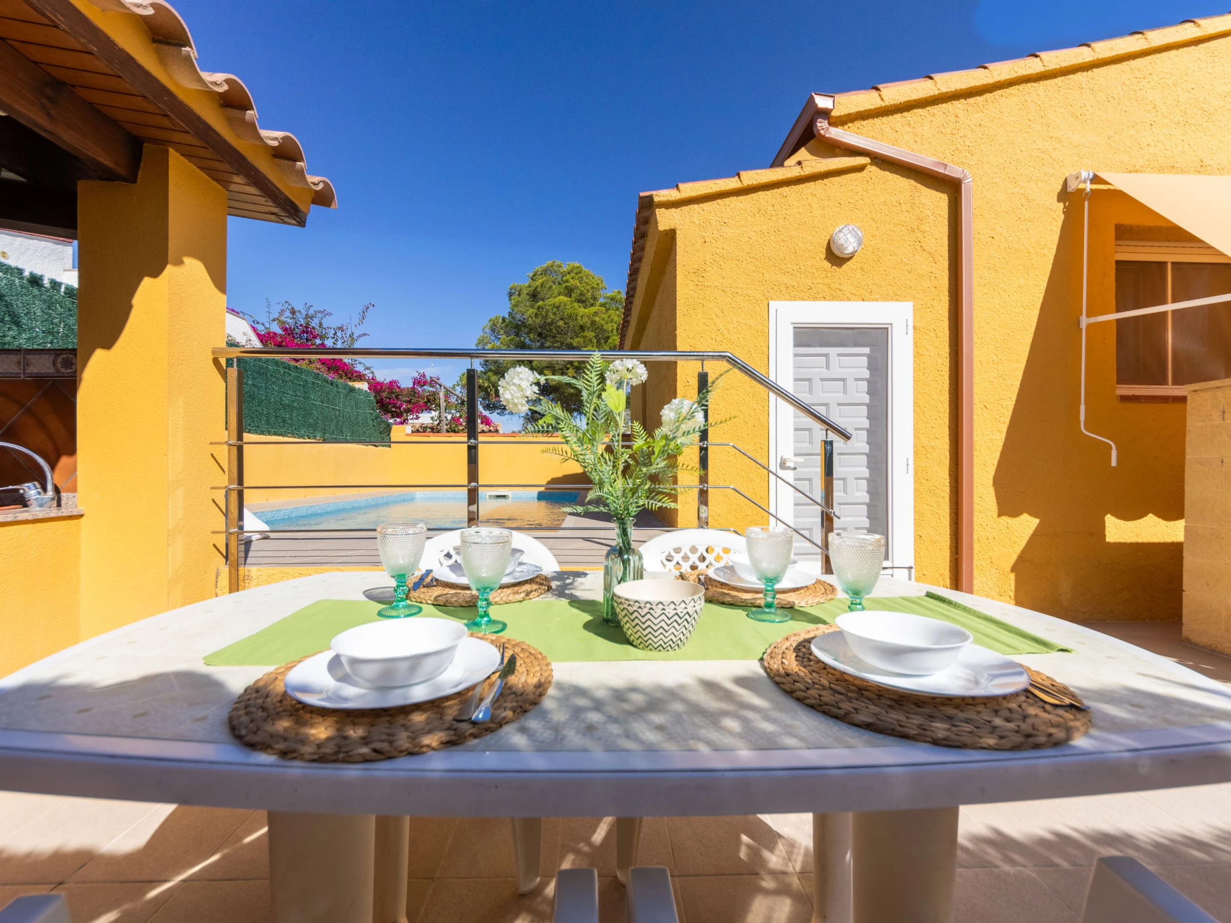 Riumar 10 km von Deltebre: Schönes, gemütliches Haus "Ernestina". Ruhige, sonnige Lage, 100 m vom Meer, 100 m vom Strand, Strasse zu überqueren. Zur Alleinbenutzung: Grundstück (eingezäunt), Schwimmbad eckig (5 x 3 m, 1 - 60 cm tief, saisonale Verfügbarkeit: [hidden] - [hidden] mit Innentreppe und Salzelektrolyse-Reinigungssystem. Aussendusche, Pergola, Terrasse, Gartenmöbel, Grill. Im Hause: Wireless LAN, Klimaanlage. Parkplatz beim Haus, öffentliche Parkplätze auf der Strasse. Supermarkt 700 m, Restaurant, Bar 300 m, Bäckerei 700 m, Bushaltestelle "Riumar" 650 m, Bahnstation "Aldea- Amposta" 25 km, Sandstrand "Riumar" 100 m. Sporthafen 1 km. Nahe gelegene Sehenswürdigkeiten: Parque natural Delta del Ebro 2 km, Tortosa 35 km, Playa el Trabucador 29 km, Barcelona 190 km, Port Aventura 70 km. Wandergebiete: Parque natural Puerto Tortosa Beseit 52 km, GR 92 15 km. Bitte beachten: Fahrzeug empfohlen. Geeignet für Familien. Jugendgruppen nur auf Anfrage.