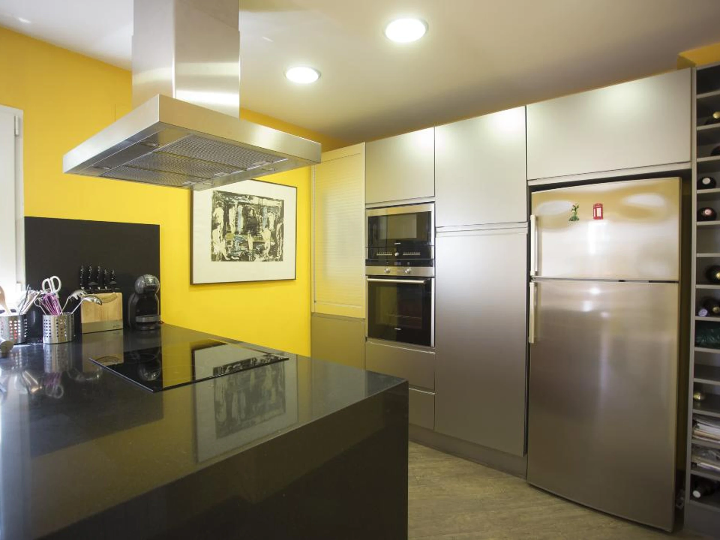 Kühlschrank, Gefrierschrank, Kaffeemaschine, Wasserkocher, Mixer, Toaster und