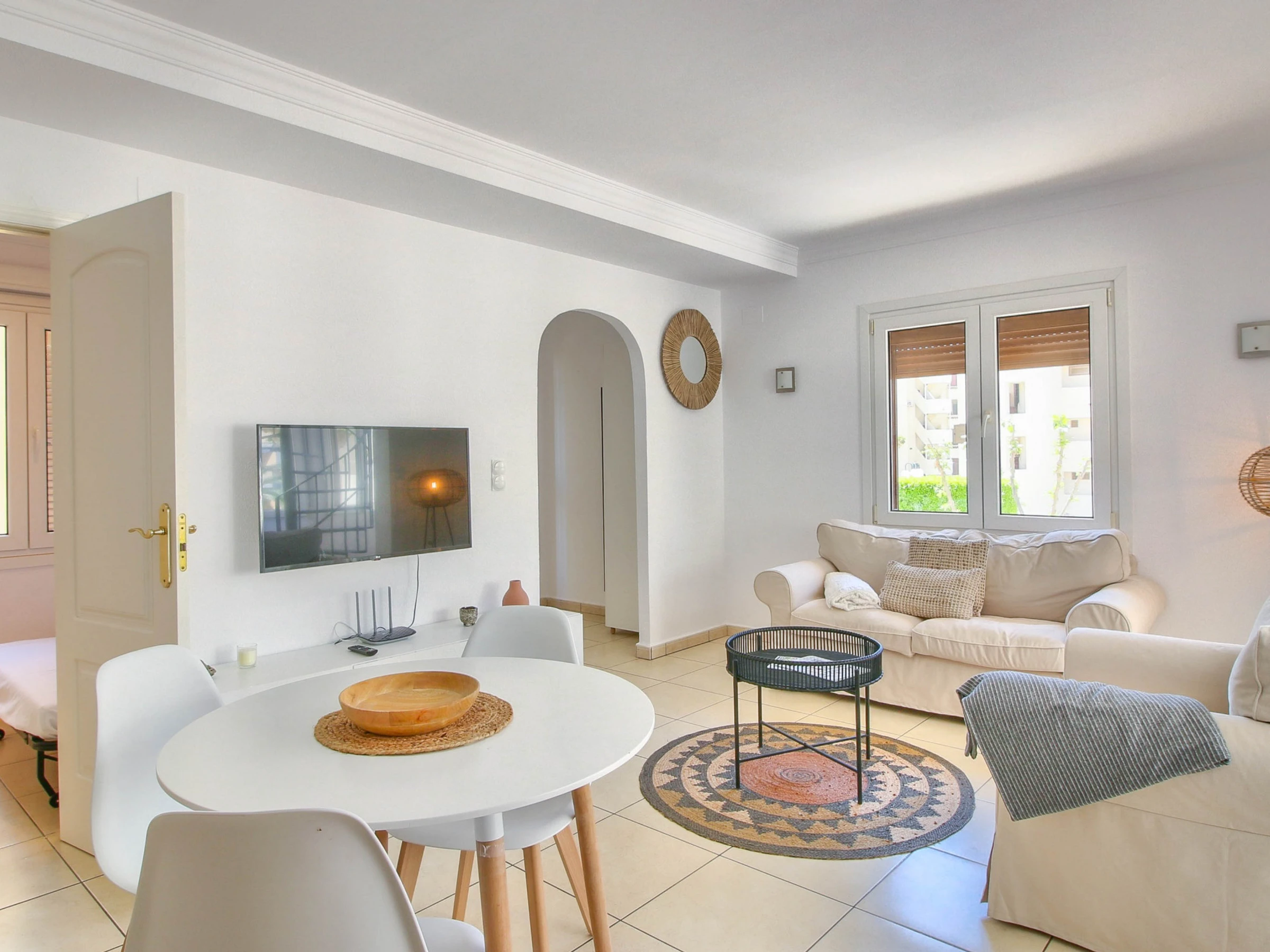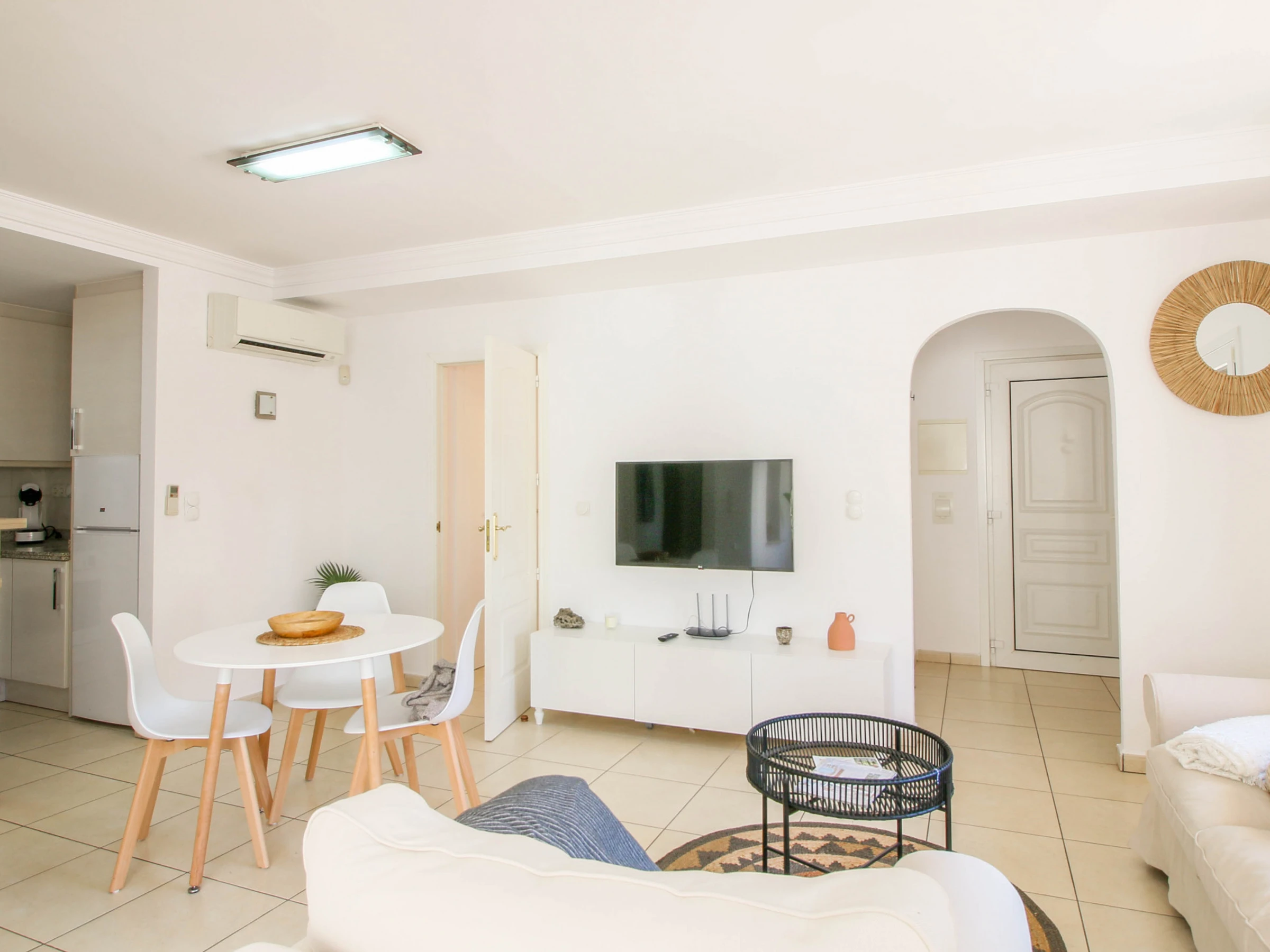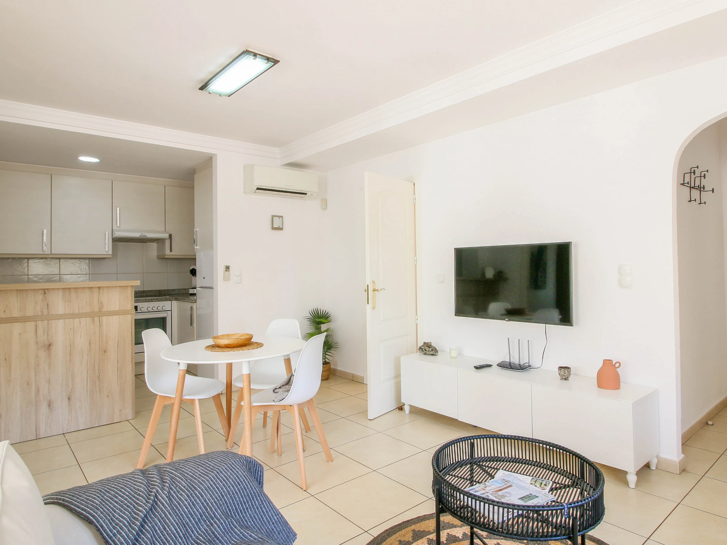 Beim Betreten finden wir den geräumigen Salon/Esszimmer/Küche, alles sehr geschmackvoll eingerichtet. Die Unterkunft verfügt über WLAN, TV und Klimaanlage/Wärmepumpe im Wohnzimmer und in einem der Schlafzimmer. Die Küche ist mit allem ausgestattet, was notwendig ist, um Ihren Aufenthalt angenehm zu gestalten, sie verfügt über: Glaskeramikkochfeld, Kühlschrank, Ofen, Gefrierschrank, Waschmaschine, Geschirr/Besteck, Küchenutensilien, Kaffeemaschine und Toaster.